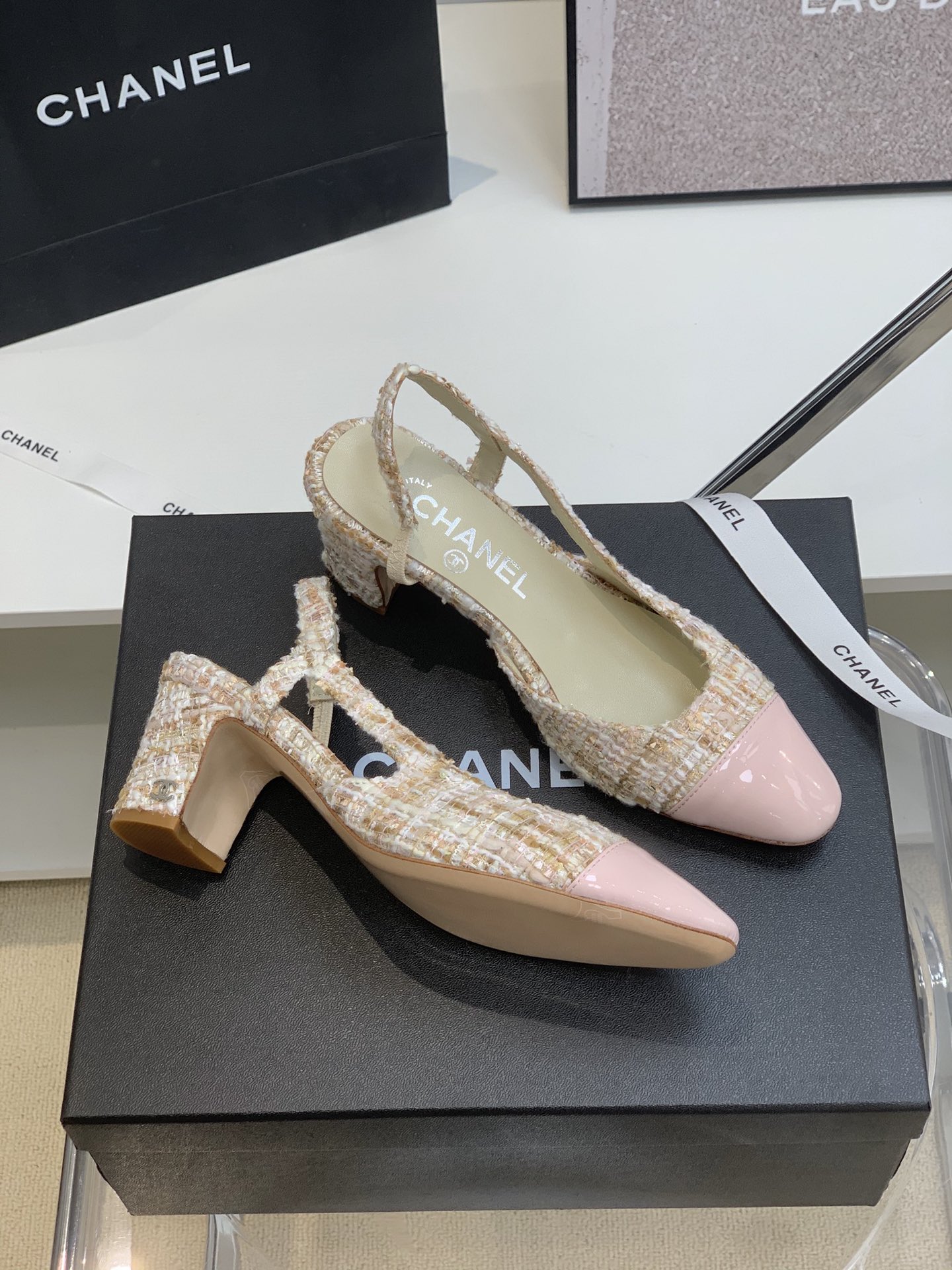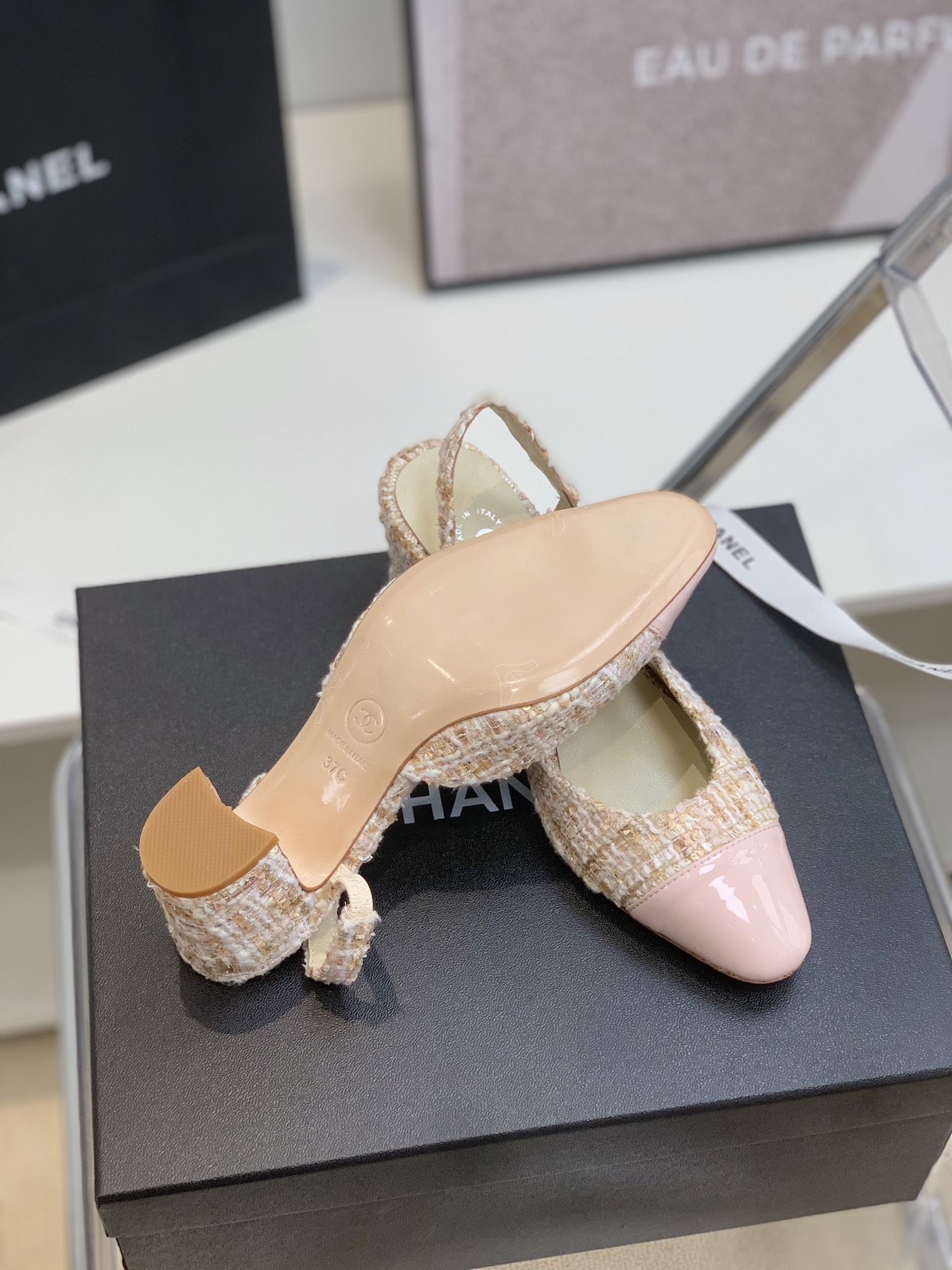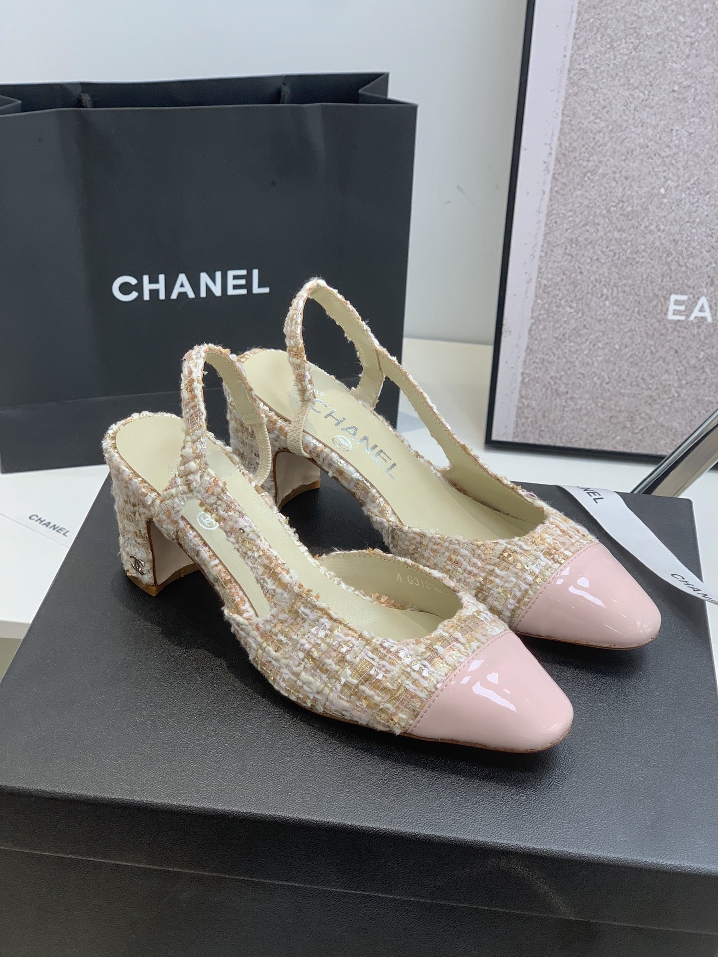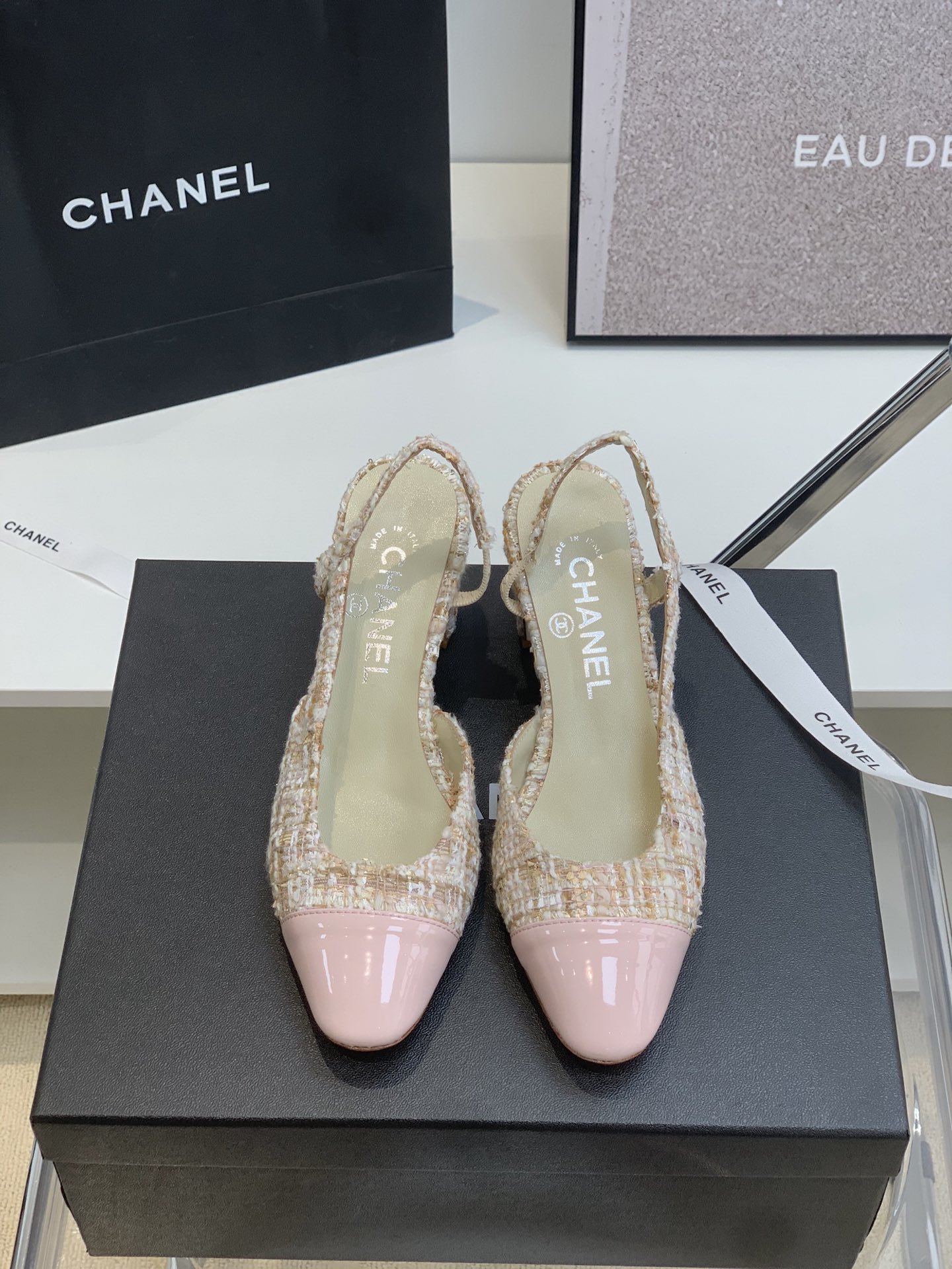 Chanel classic slingback shoes Imported mixed-breed sheepskin surface material. Imported Italian cowhide soles.High heel: 6.5cm Size: 35-40 (34.41.42.43.44.45 customized)