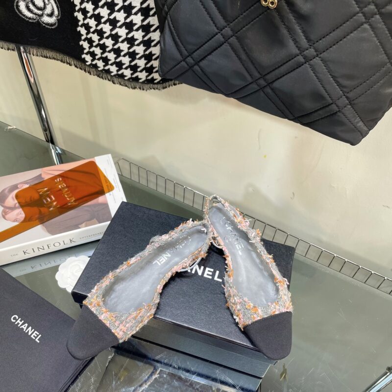 Chanel 𝟐𝟎𝟐𝟐/𝐒𝐒 𝐧𝐞𝐰 tweed slingback shoes ……………………………………………… Material: ❶Material: original tweed ❷Inner: imported sheepskin ❸Sole: Italian imported leather outsole ❹Packing: Full set of original box ❺Number of yards: 34/43 (34, 40, 41, 42, 43 customized non-refundable)