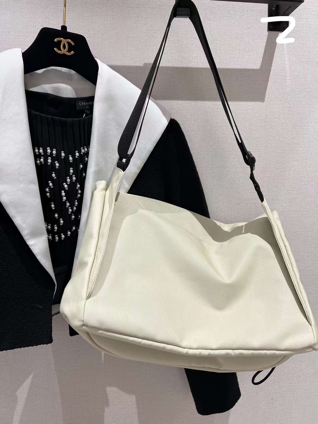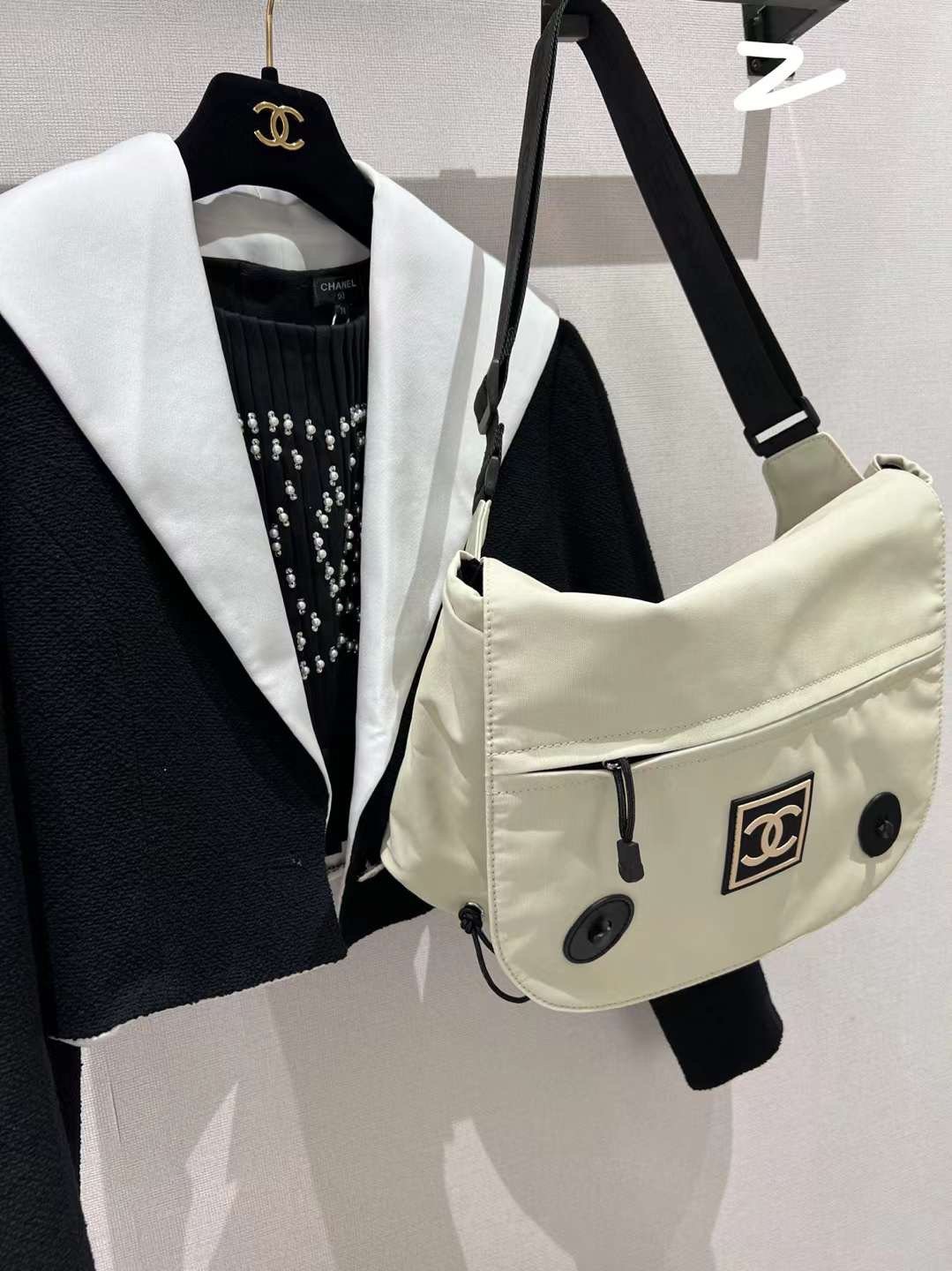 Off-white nylon material is full of casual sports style, with a sense of sunshine
