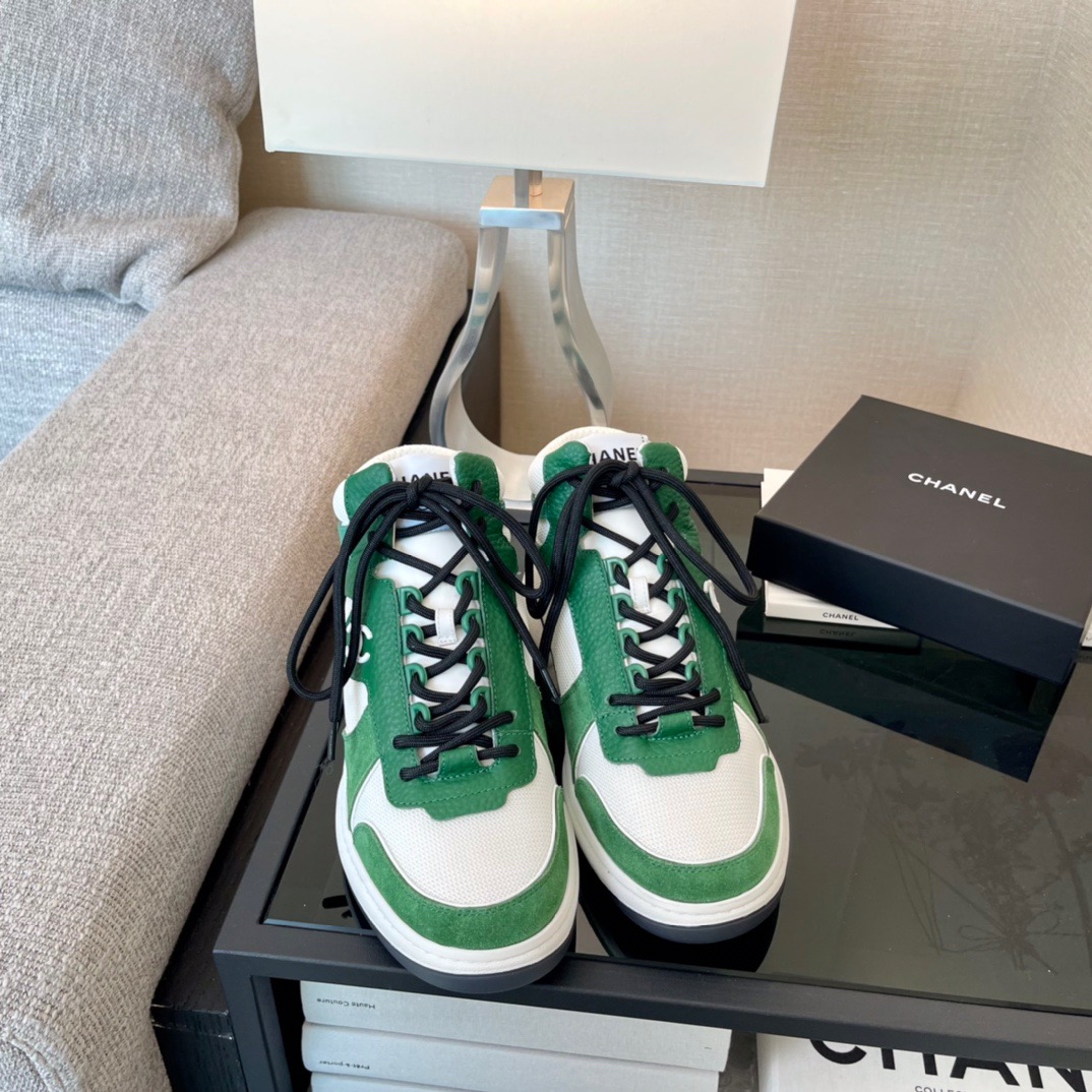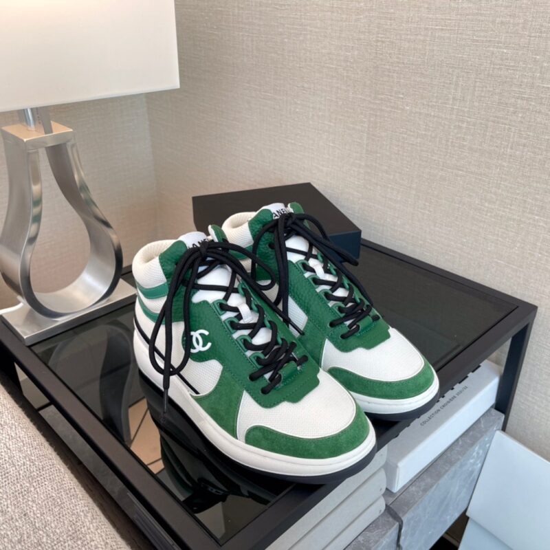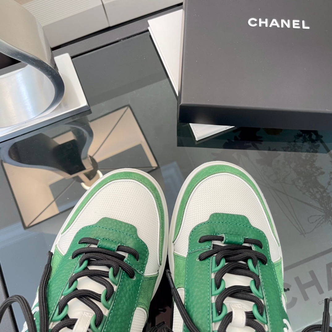 Chanel White Sneakers with Green Details