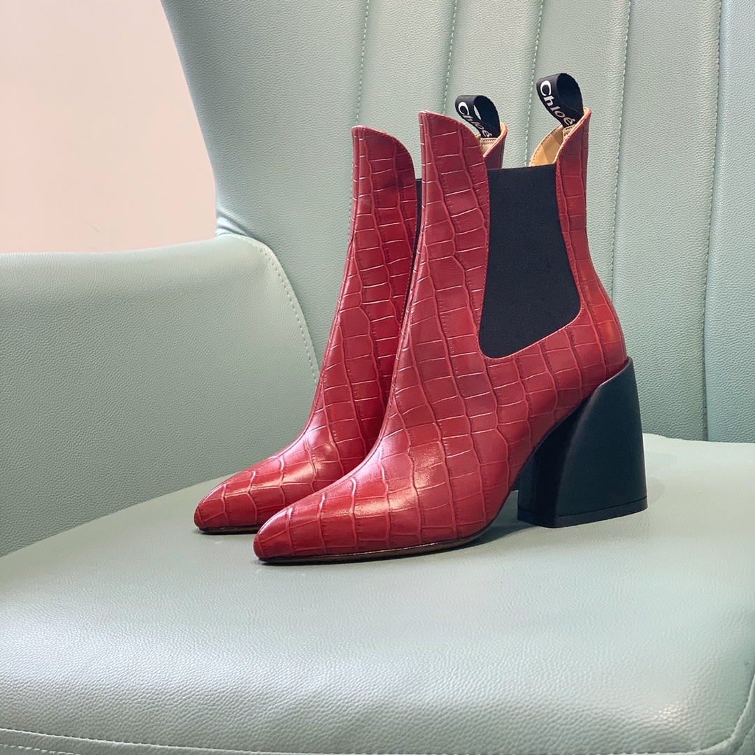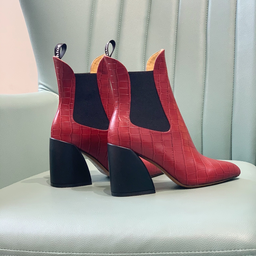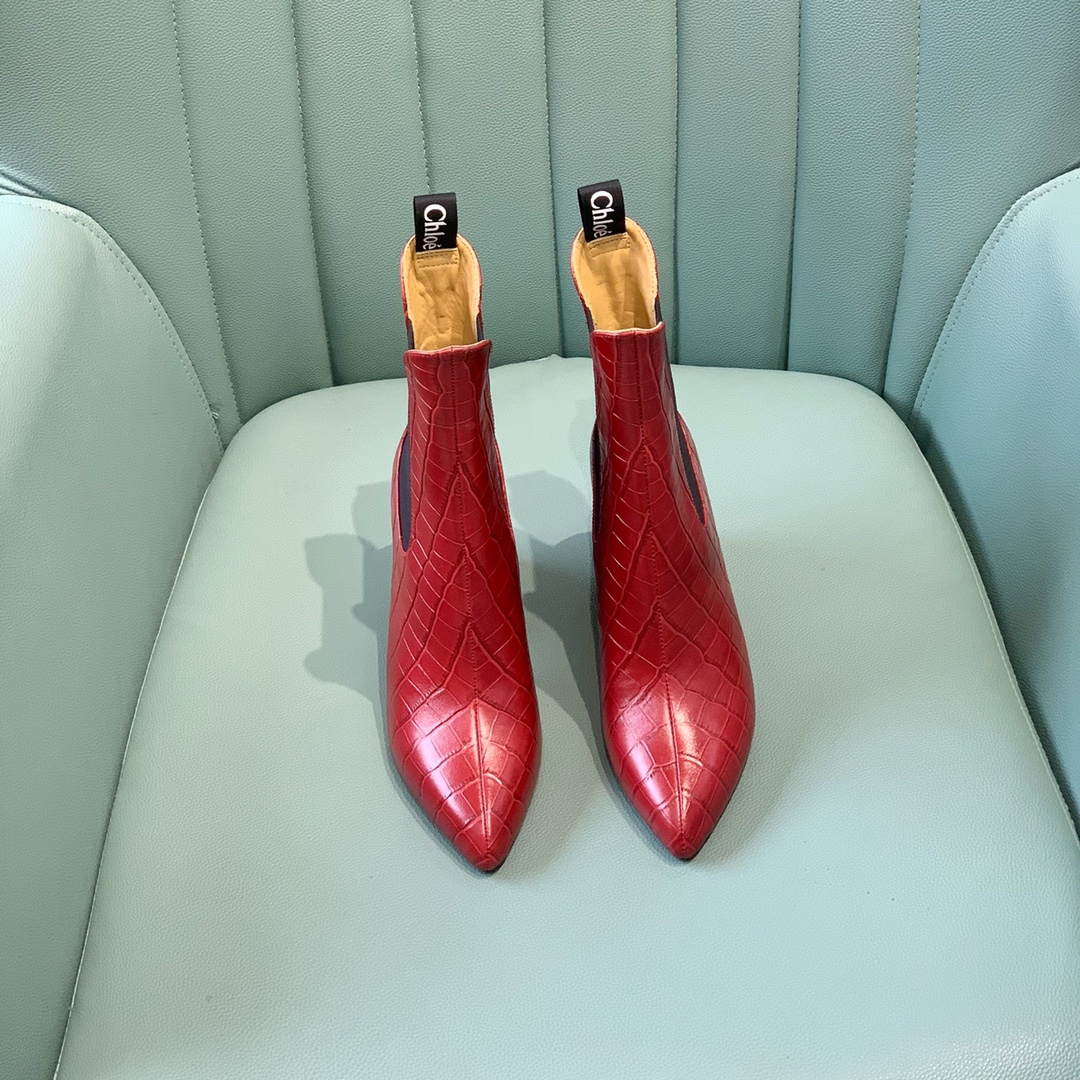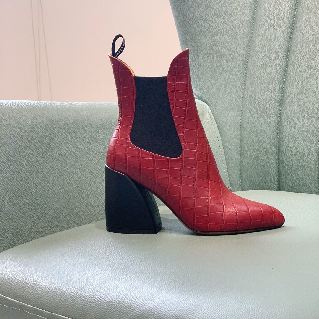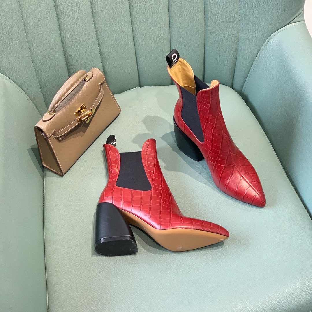 【Chl*e】Classic ankle boots. The overall boot shape is very unique, very leg-slimming, and the color matching is high-end and versatile Material: upper cowhide. Embossed cowhide. Sheepskin lining, leather outsole, heel height 9 cm. Number of yards: 35-39 (40, 41 can be customized) Lot: