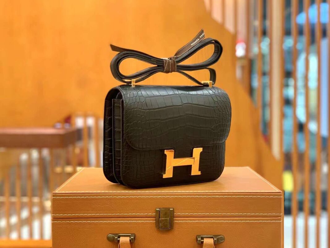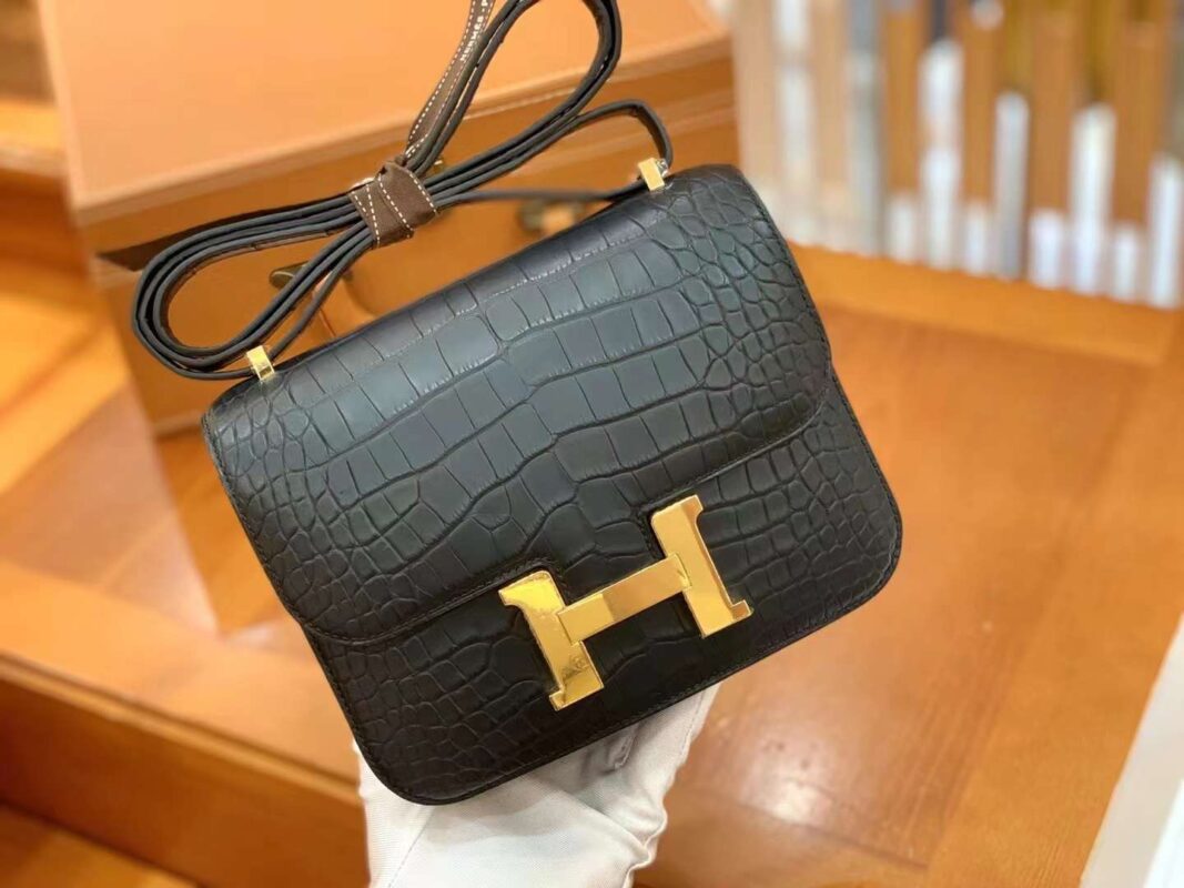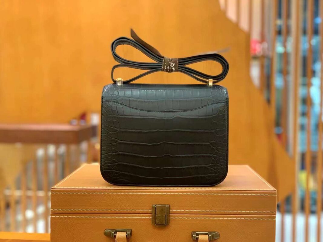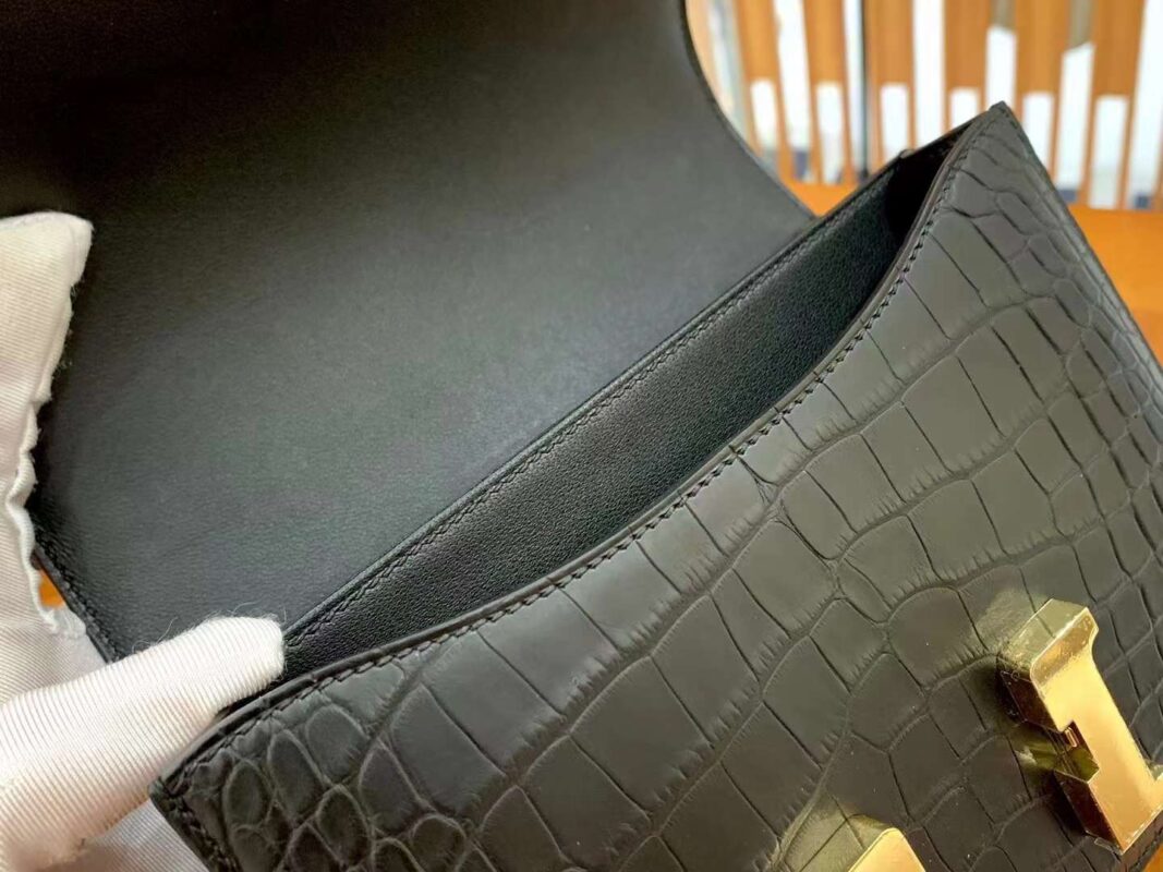Constance 18cm Black Gold Imported first-class American crocodile. French beeswax thread. 100% hand-sewn
