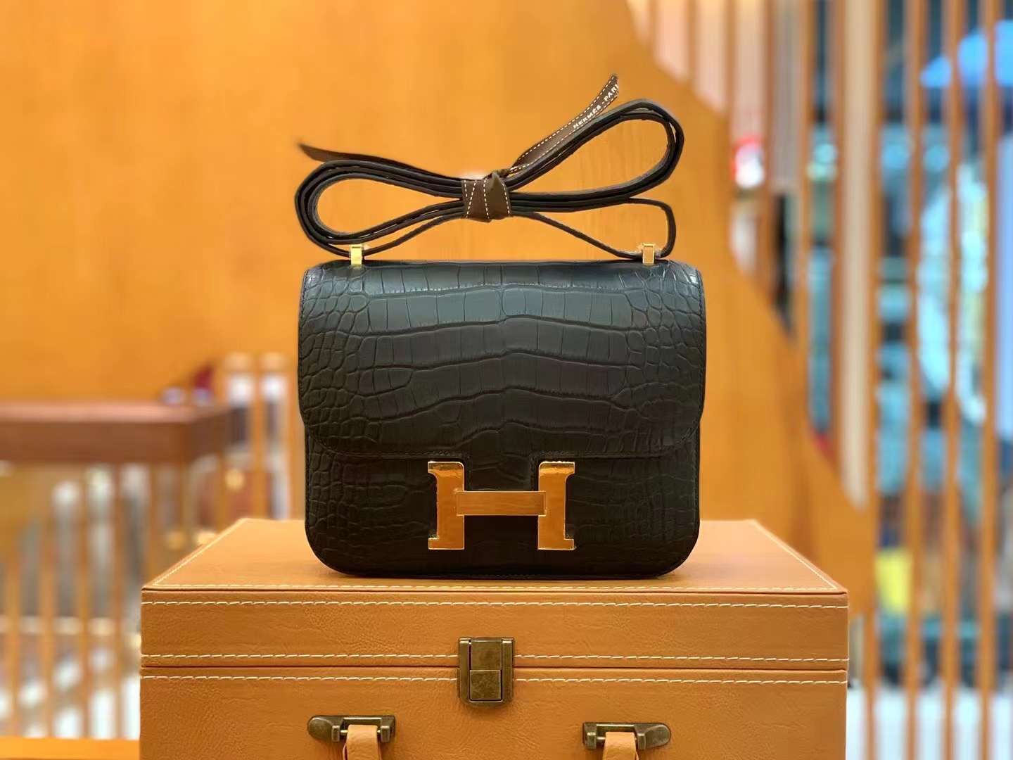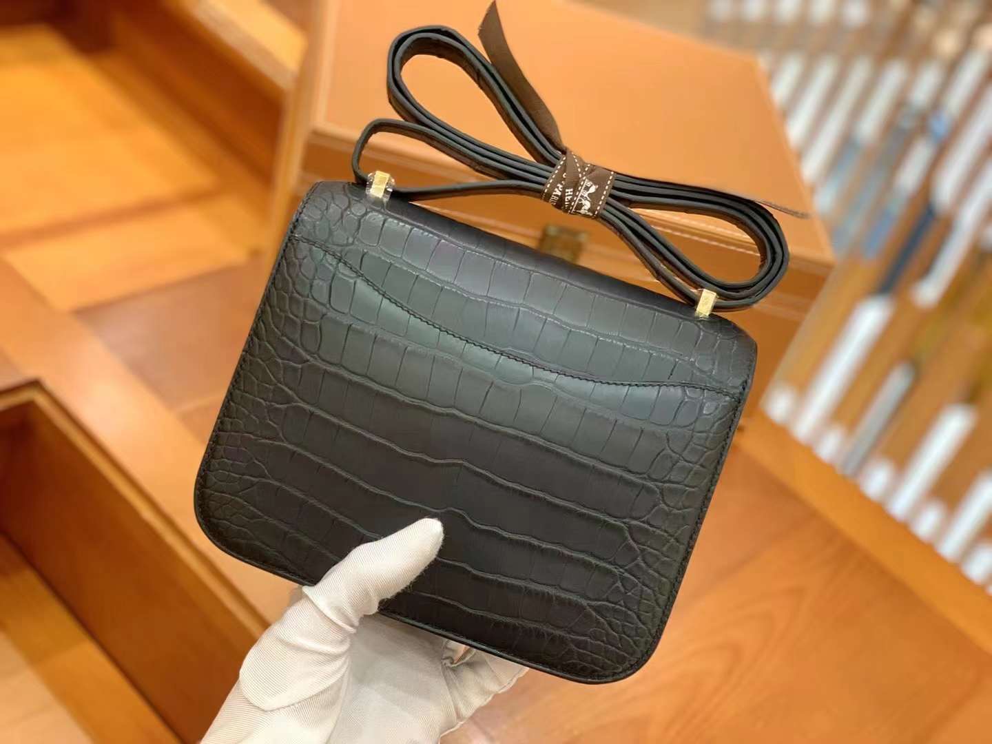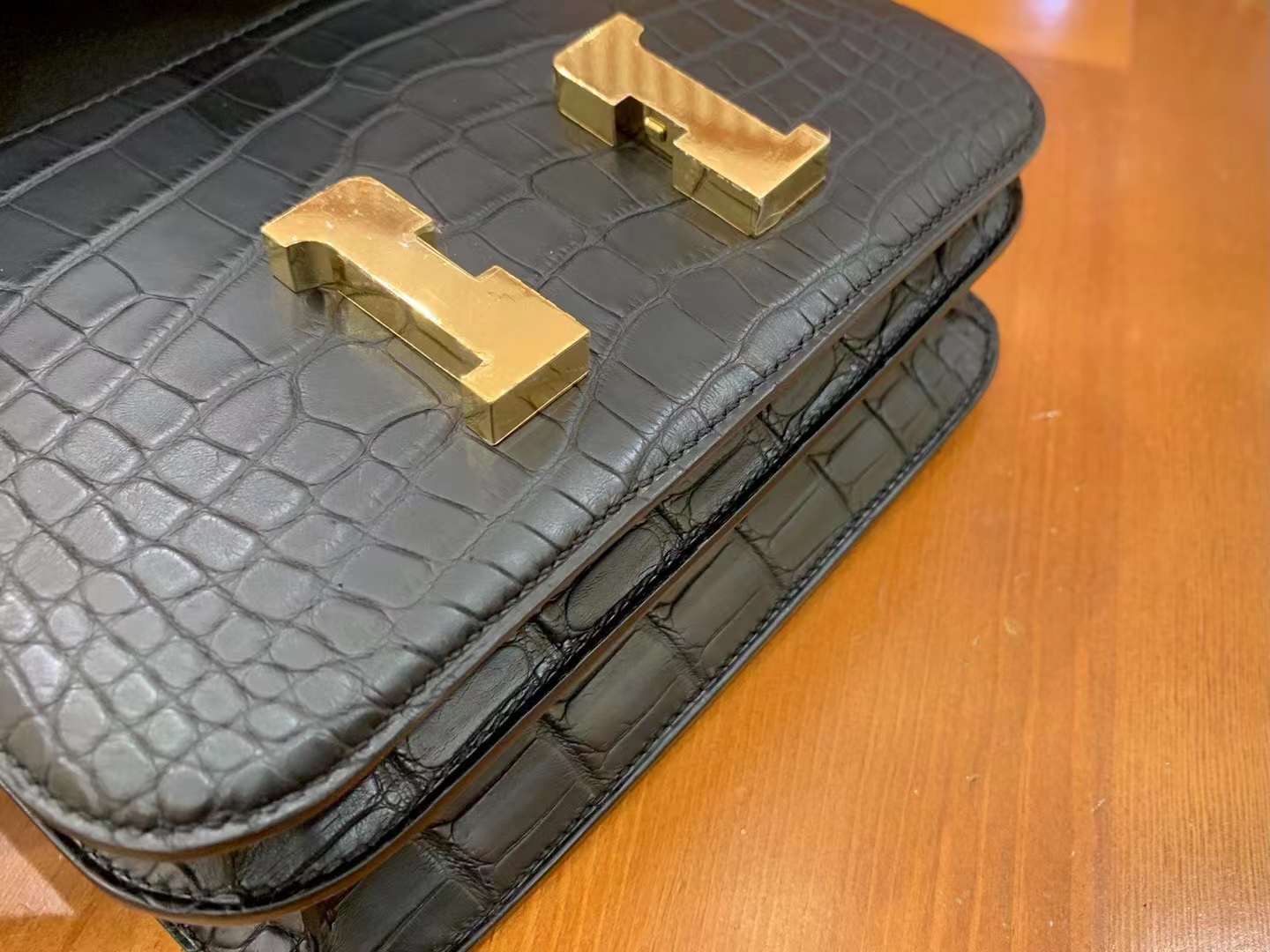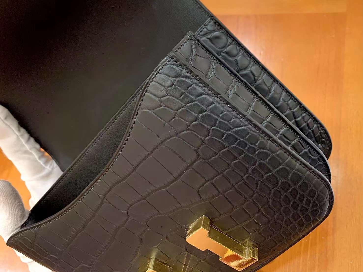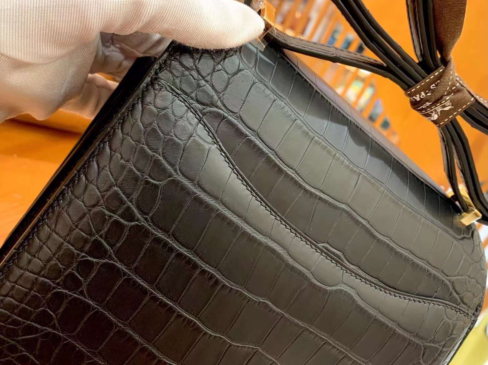 Constance 18cm Black Gold Imported first-class American crocodile. French beeswax thread. 100% hand-sewn