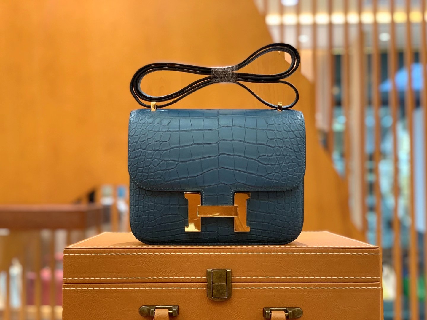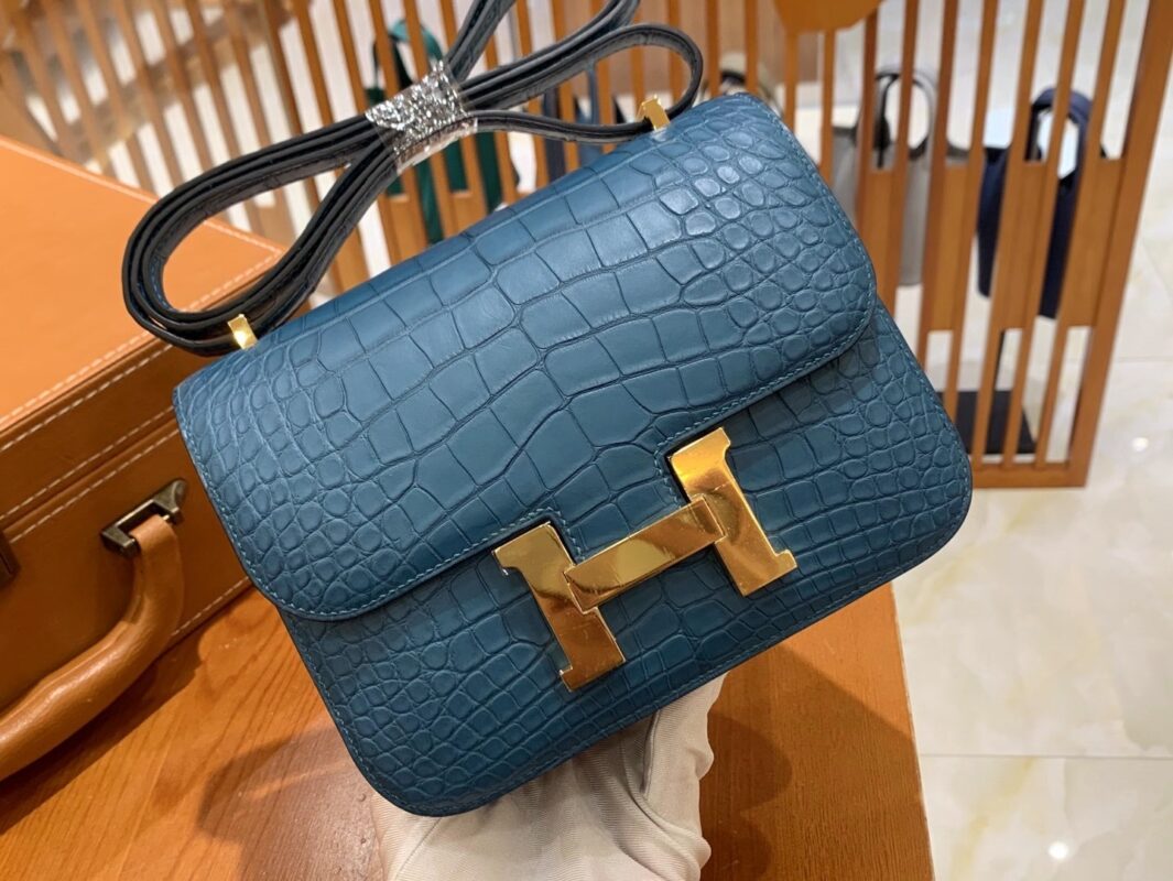 Constance 18cm Duck Blue Imported first-class American crocodile. Fully hand-sewn