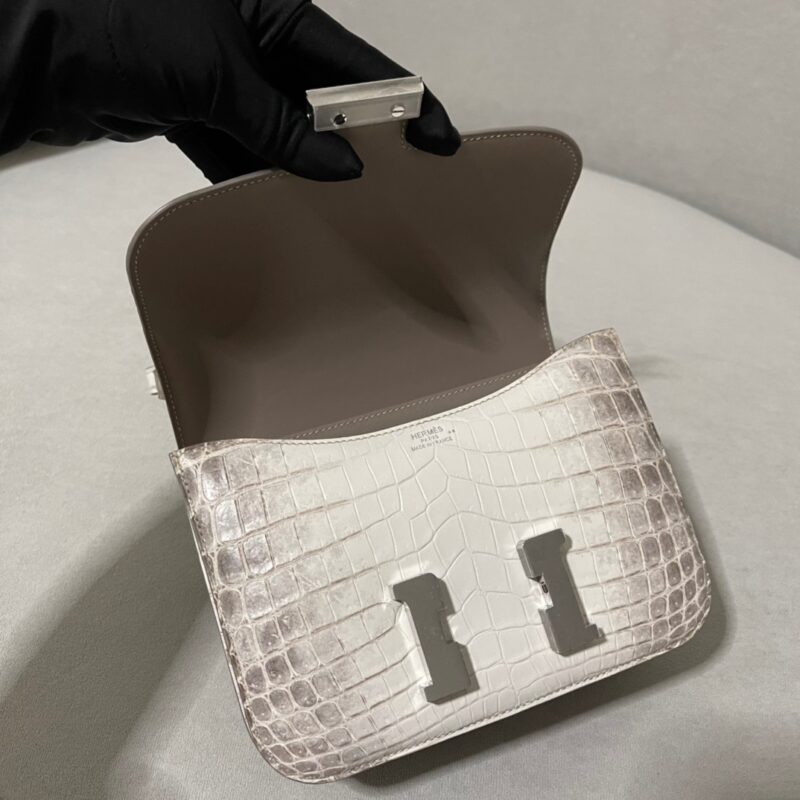 Constance 18 Crocodile Real Nile crocodile leather. Himalaya. Fully hand-sewn