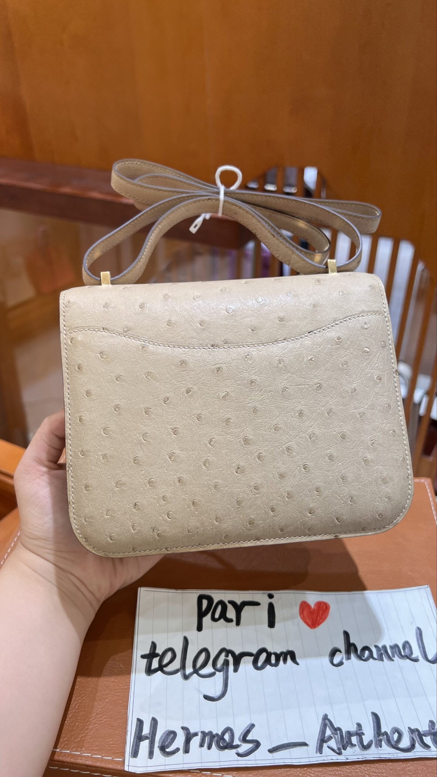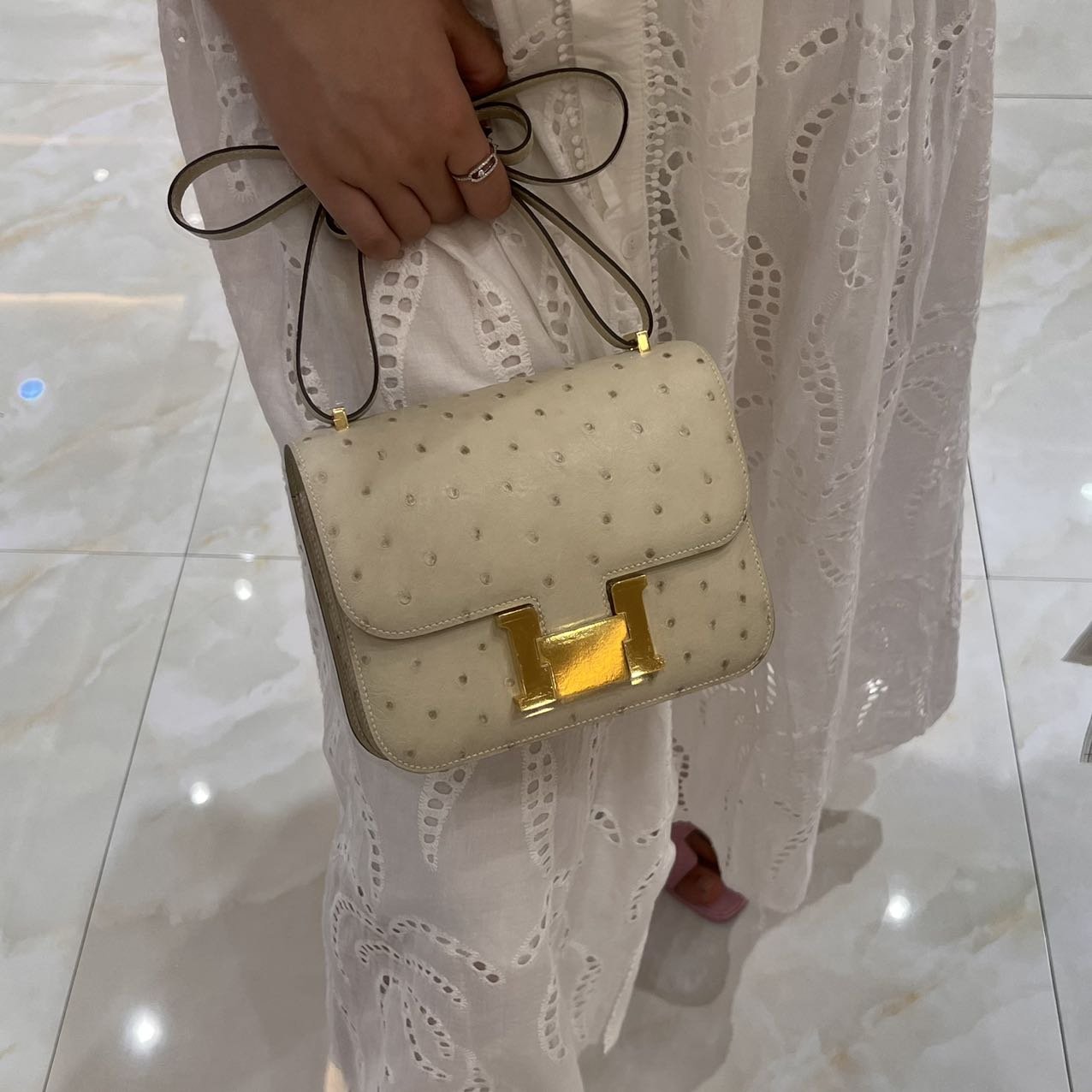 Constance 18 in Craie Ostrich GHW