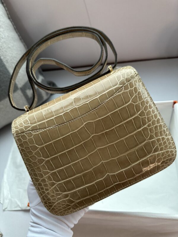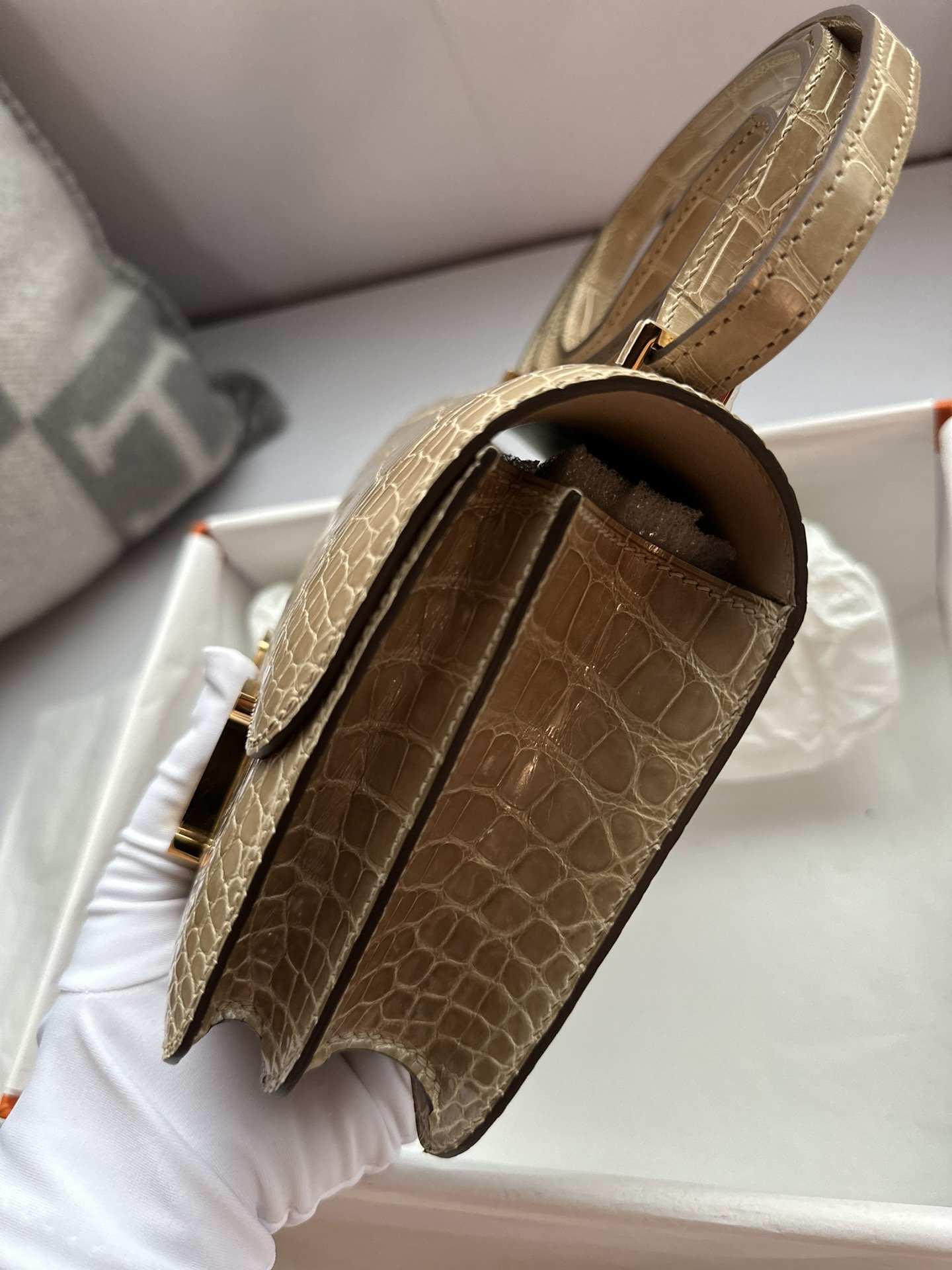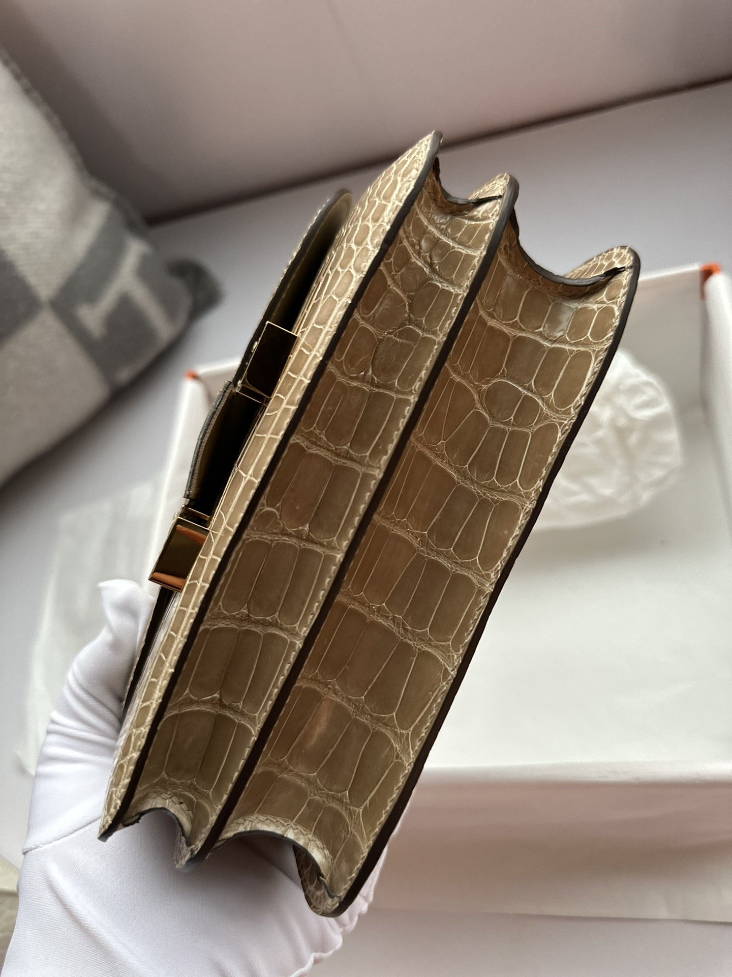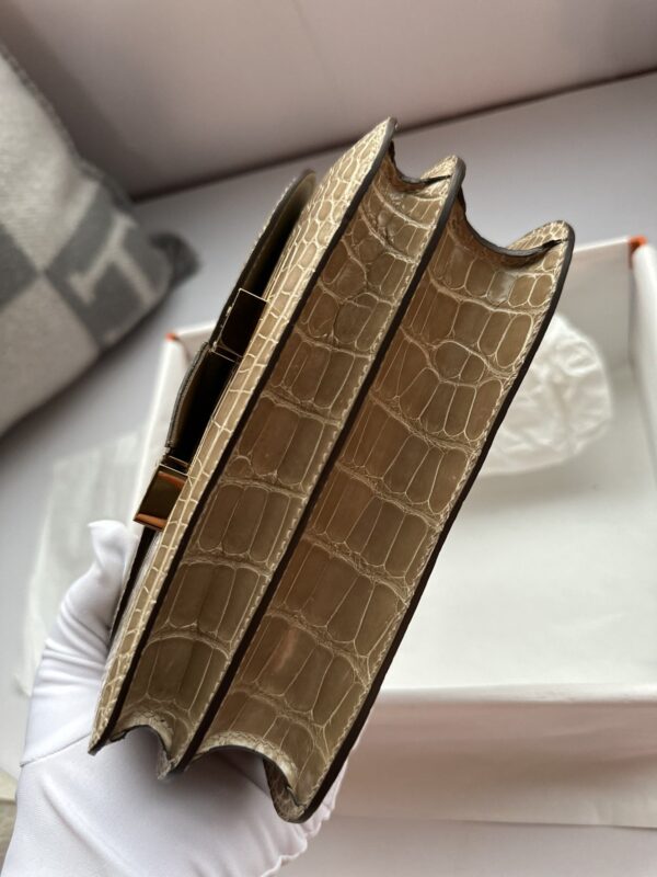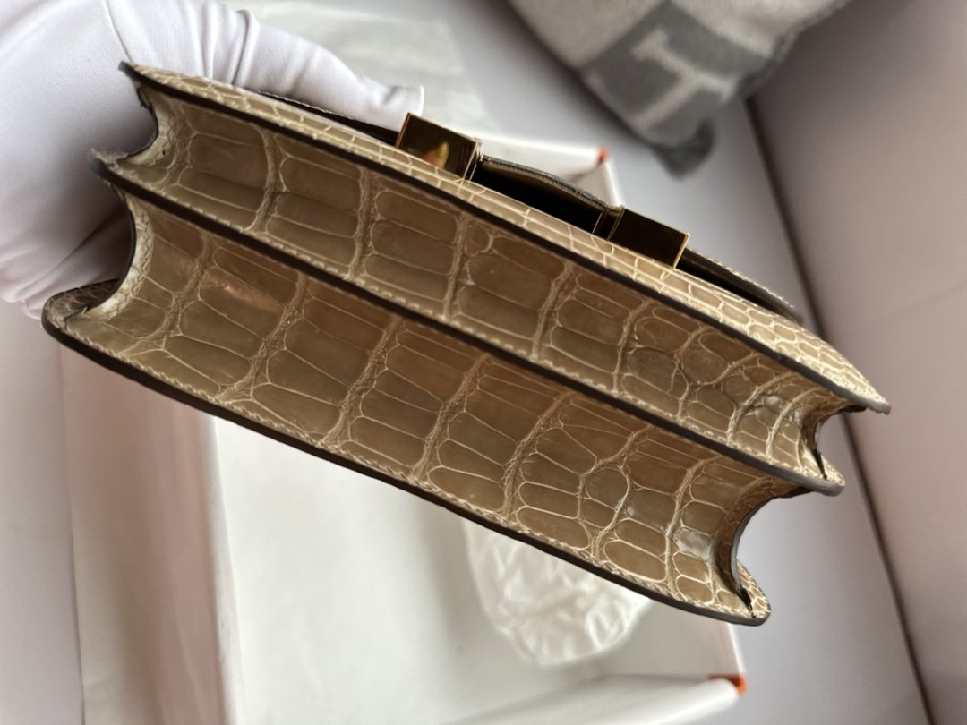 Constance 18 in Gris Tourterelle Shiny Alligator