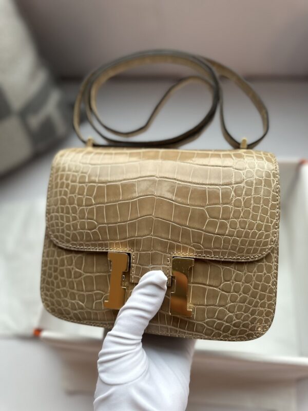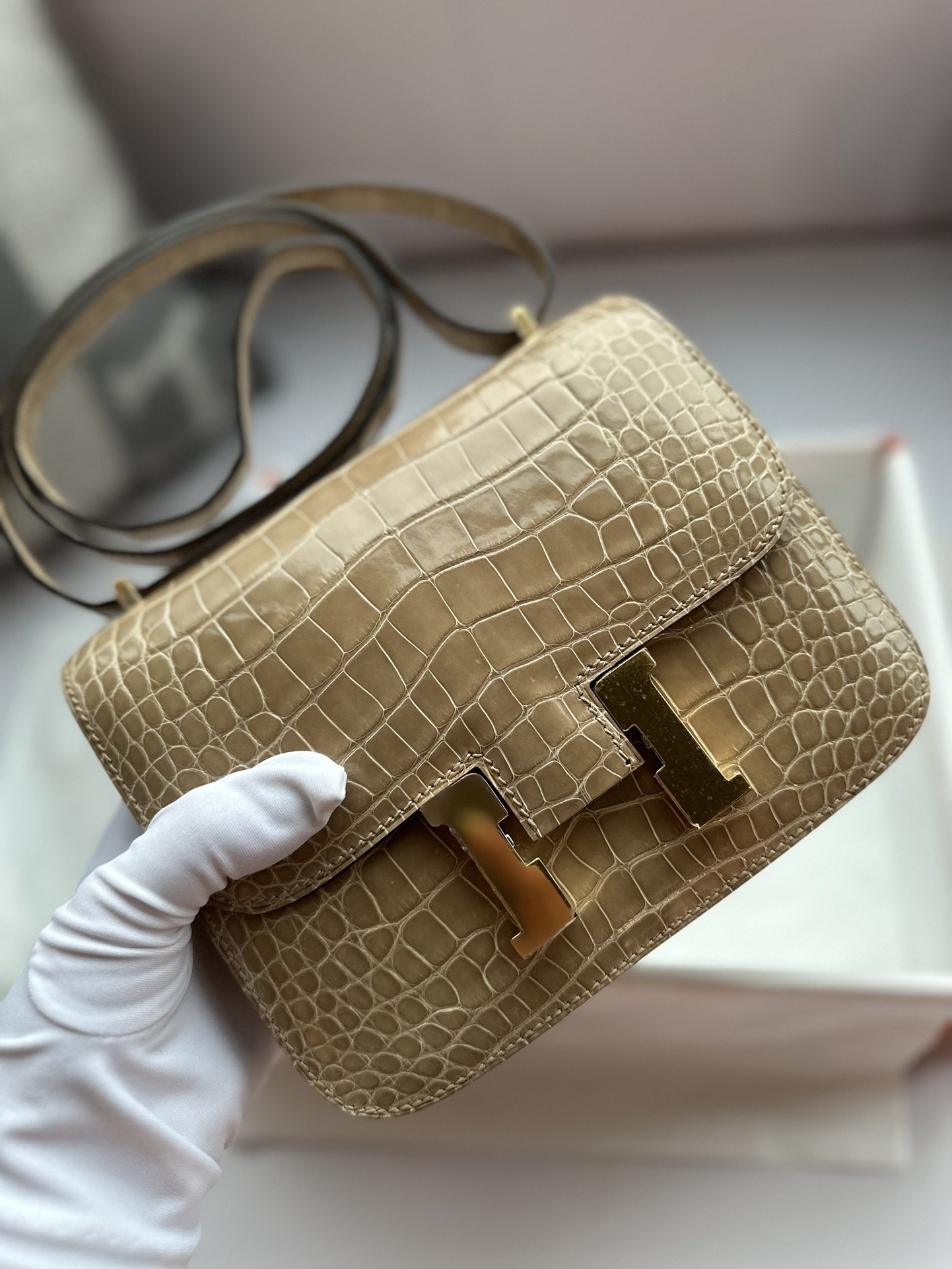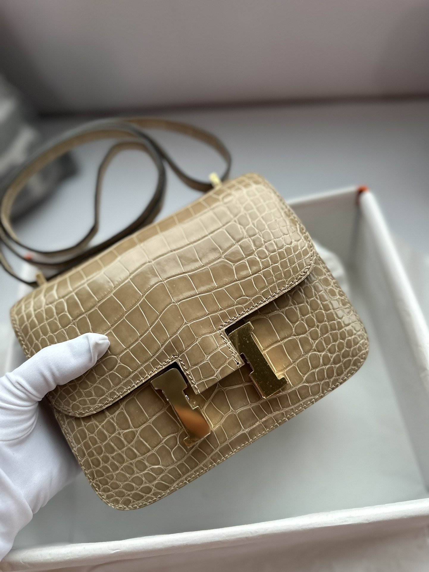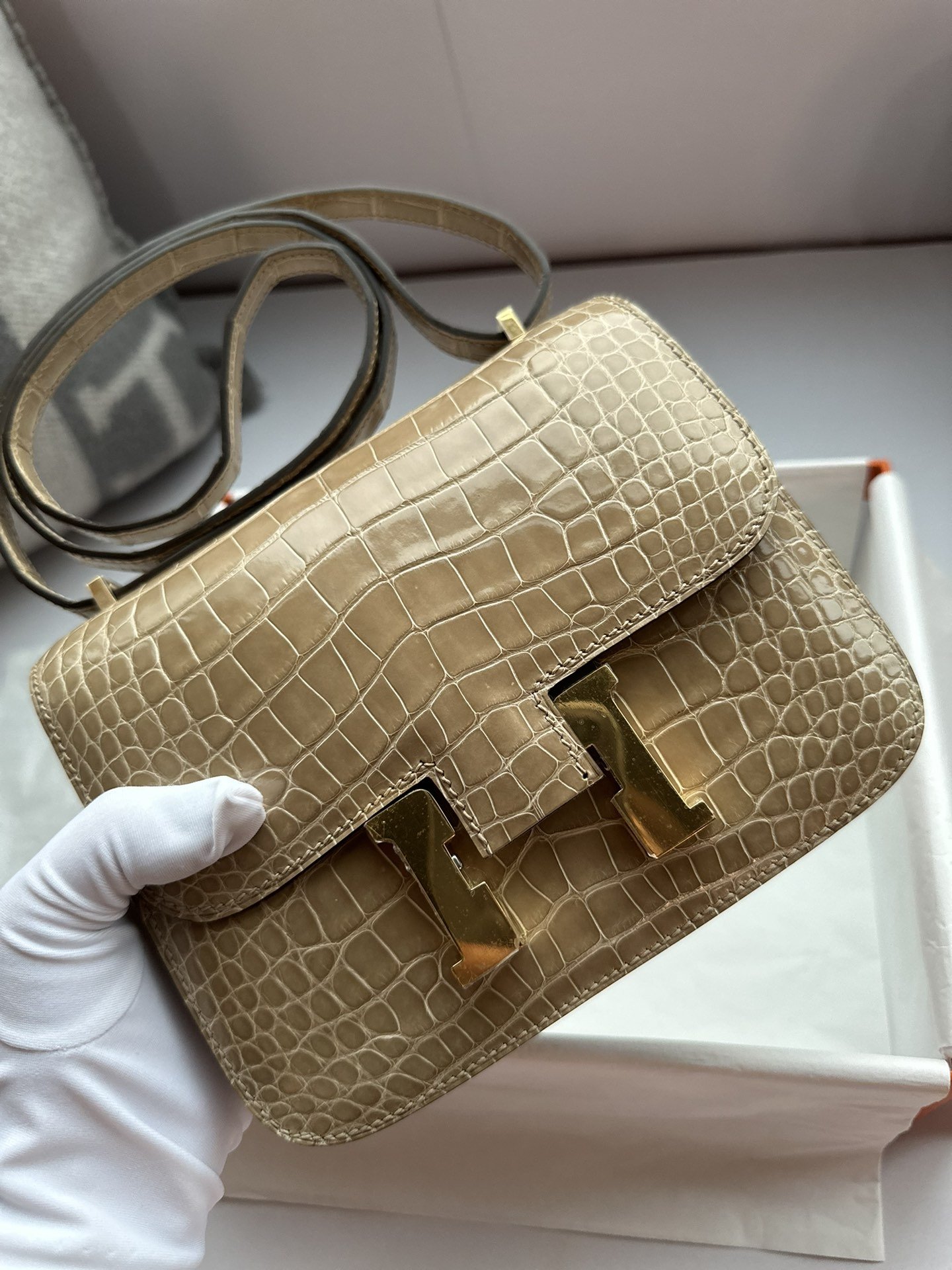 Constance 18 in Gris Tourterelle Shiny Alligator