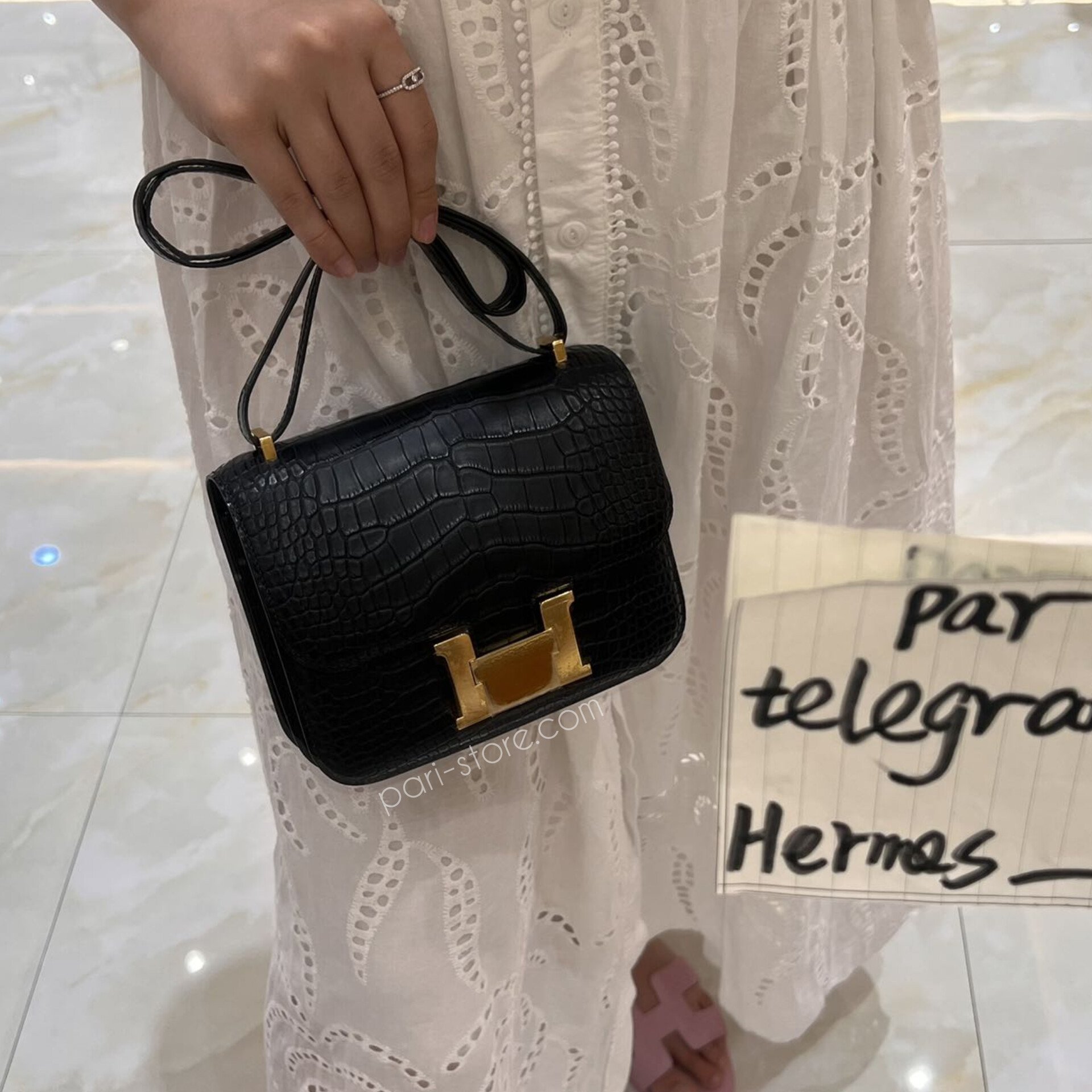 Constance 18 in Noir Matte Crocodile GHW