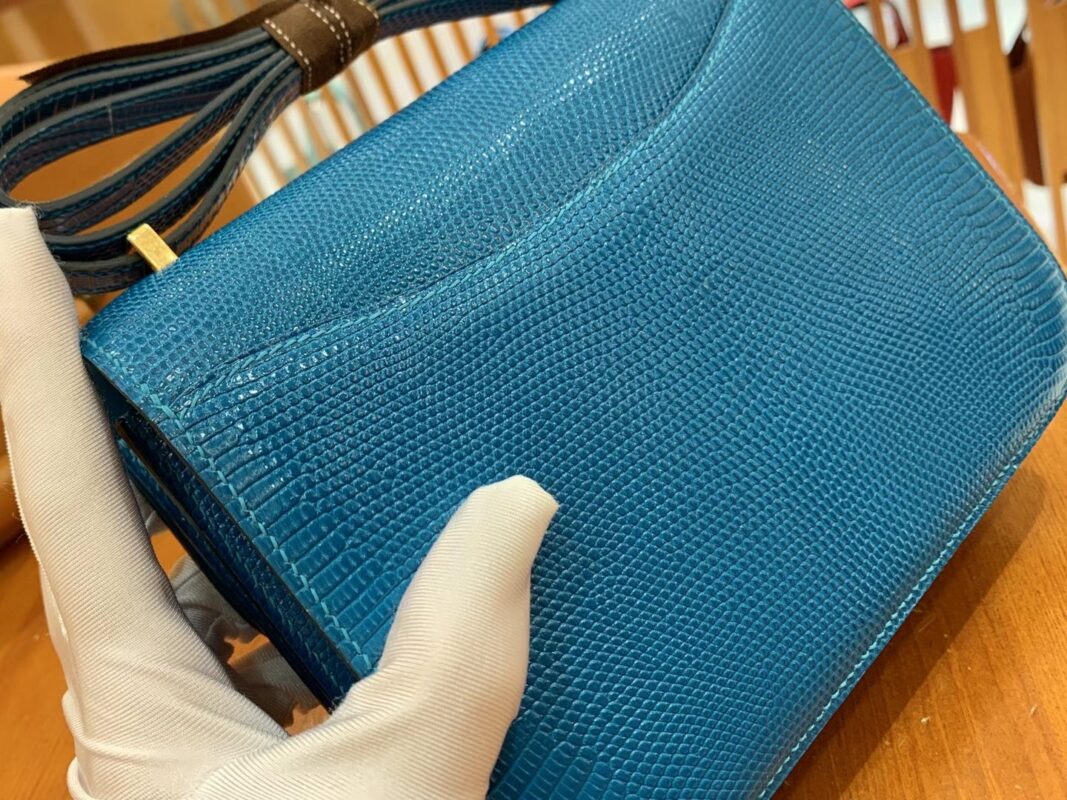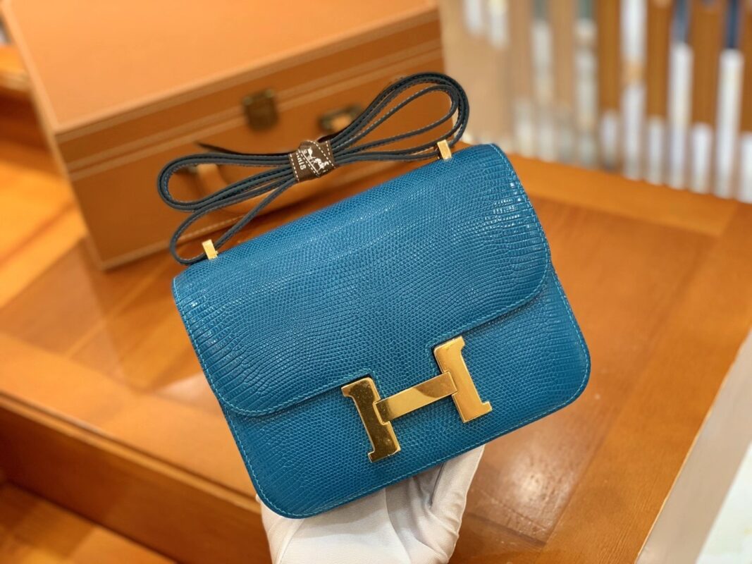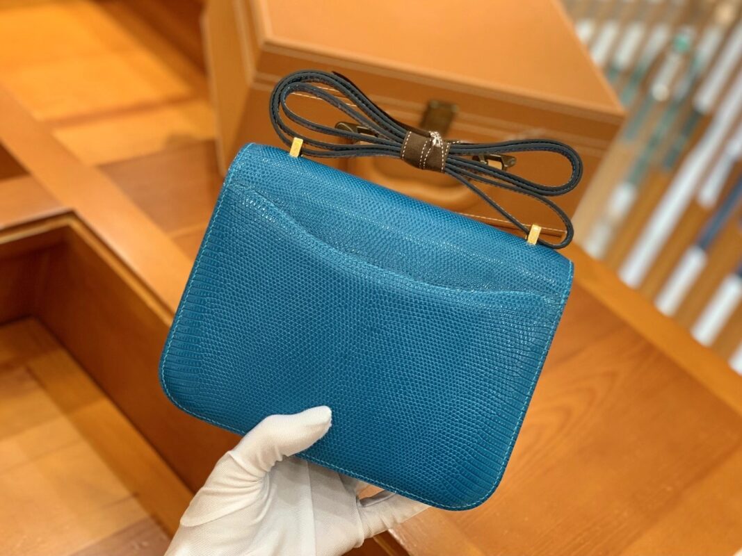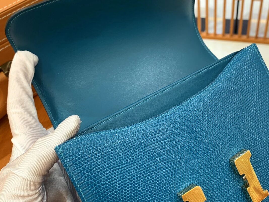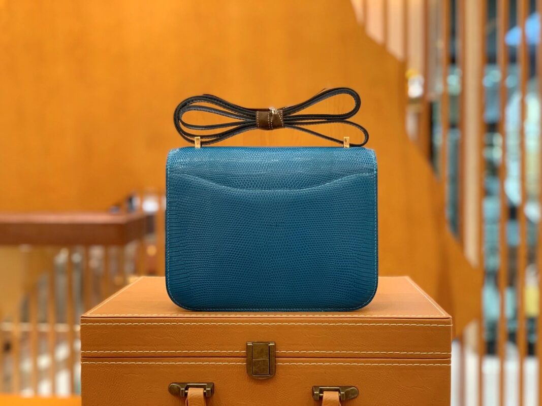 Constance 18cm Izmir Blue Imported wild lizard skin. Hand-sewn