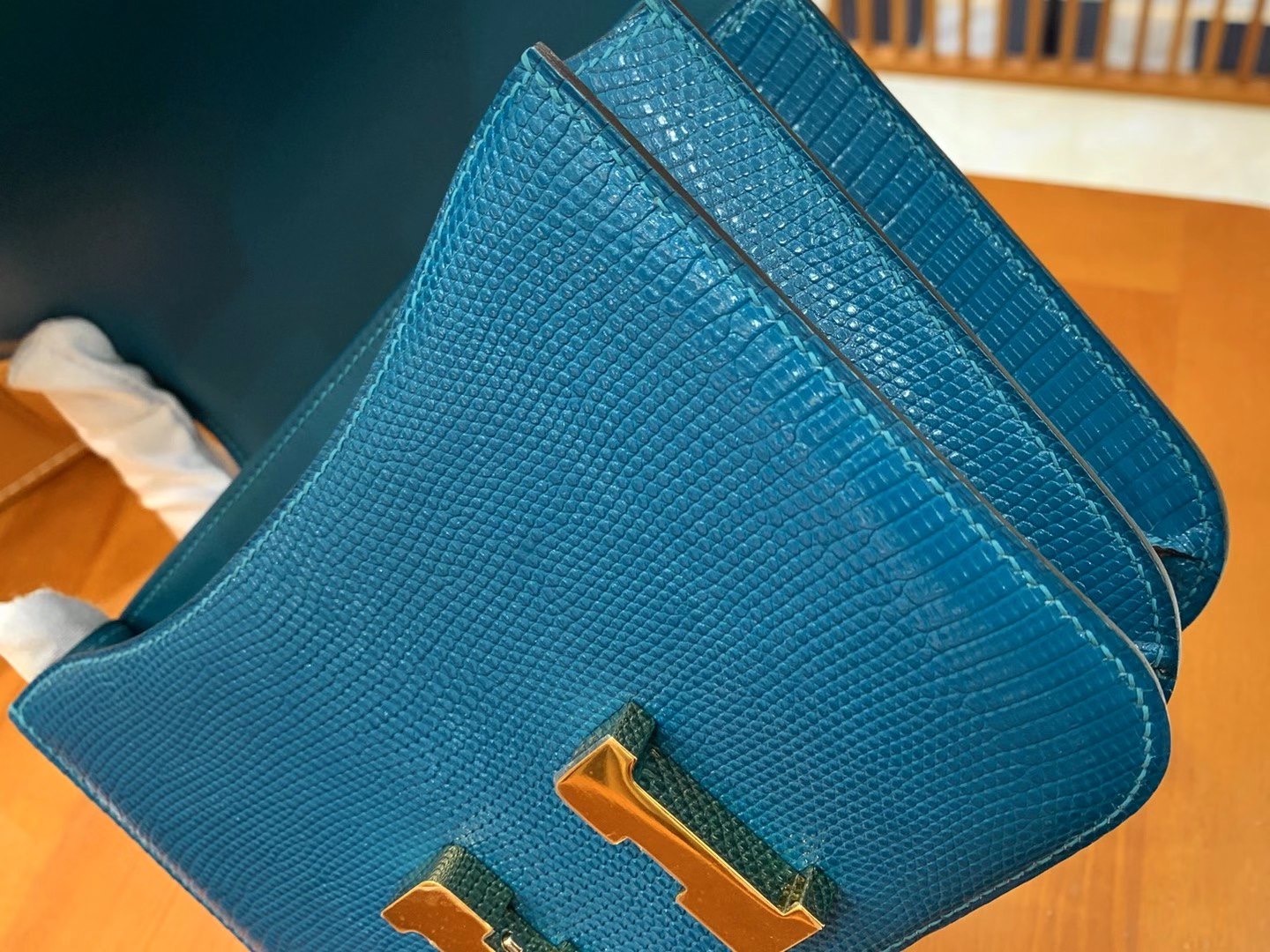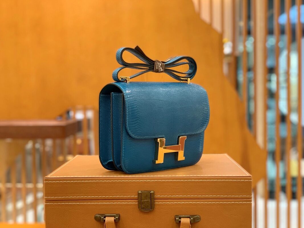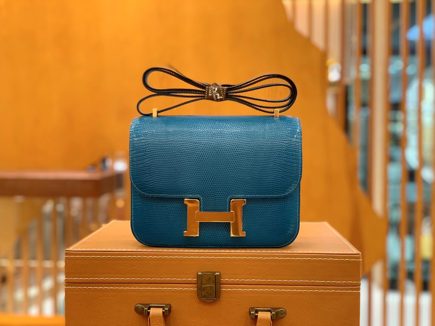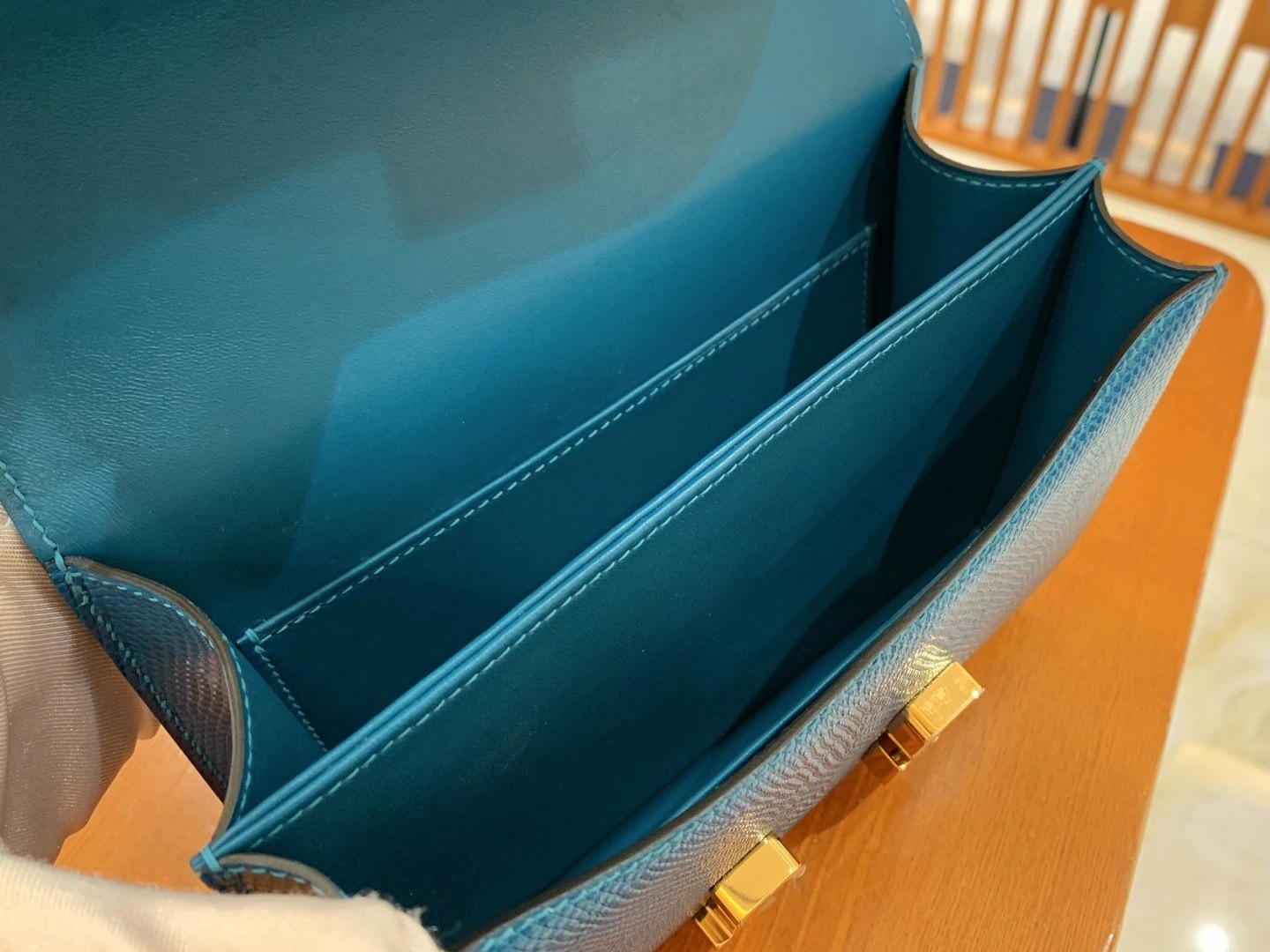 Constance 18cm Izmir Blue Imported wild lizard skin. Hand-sewn