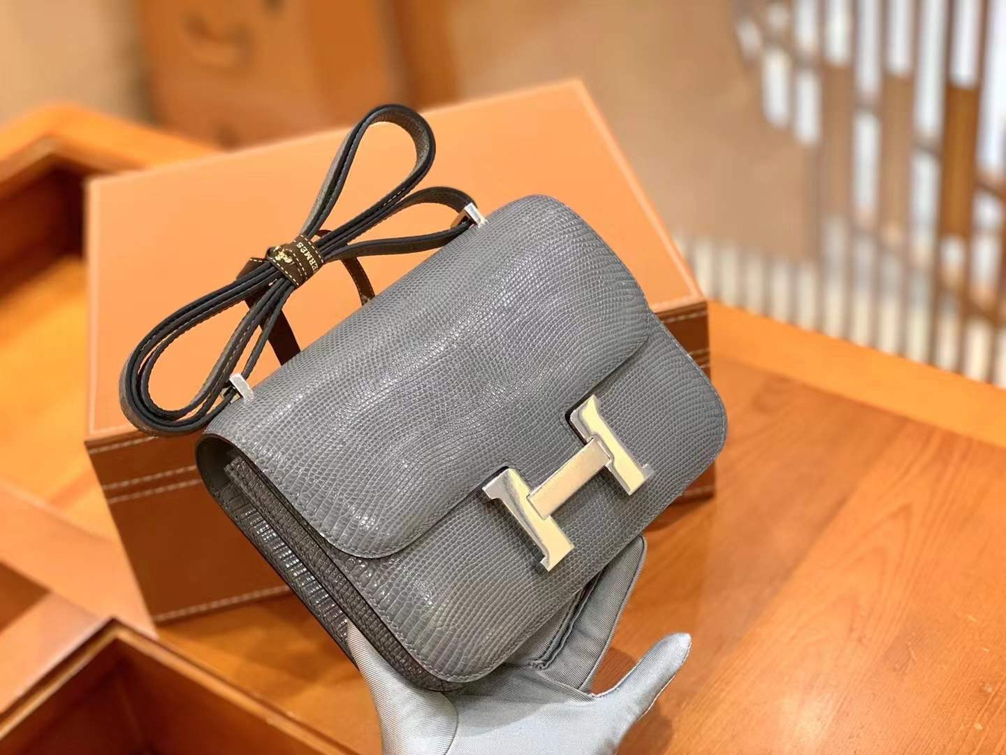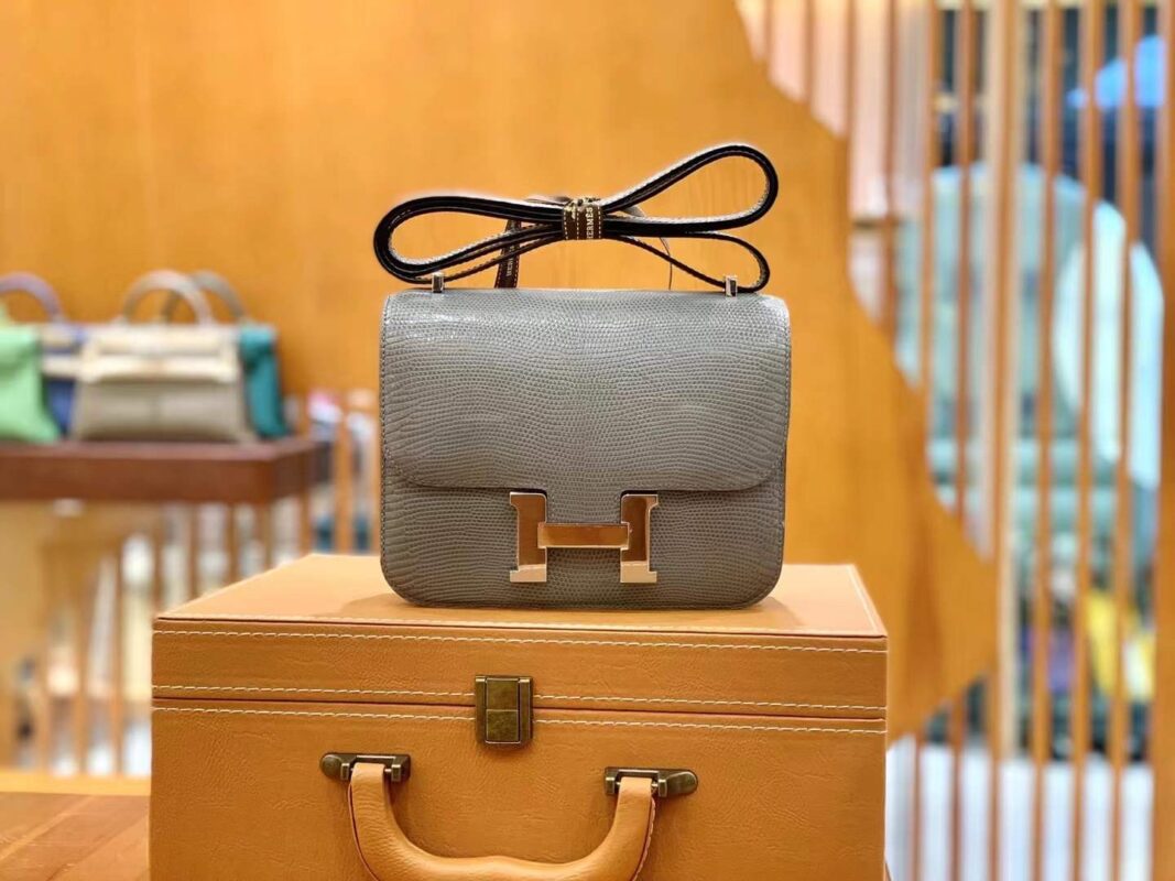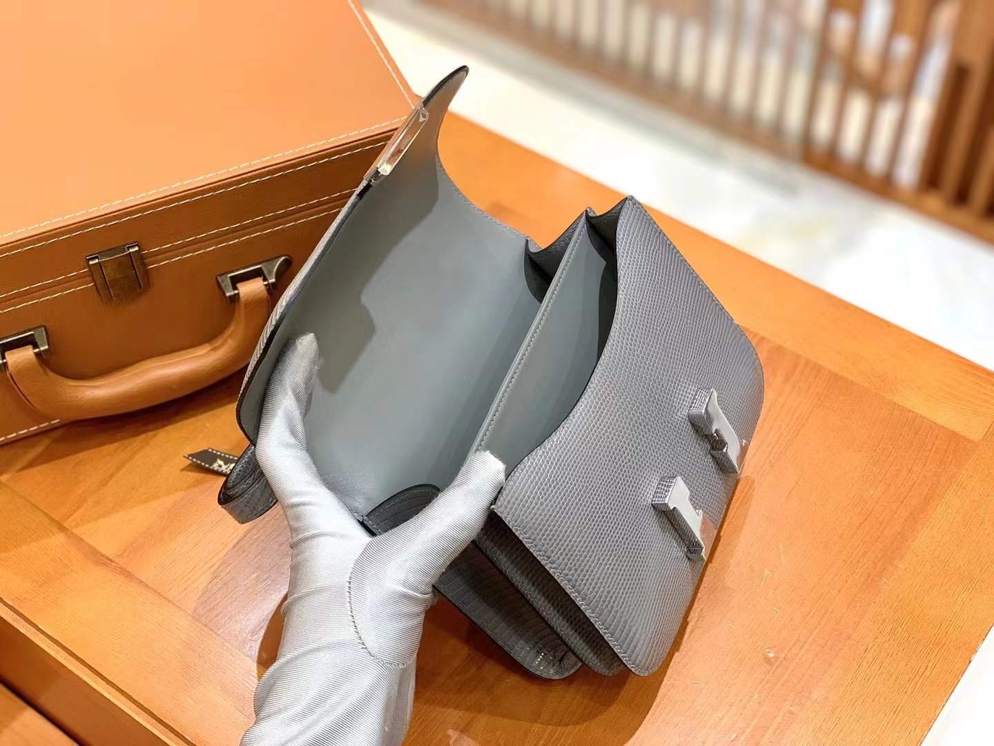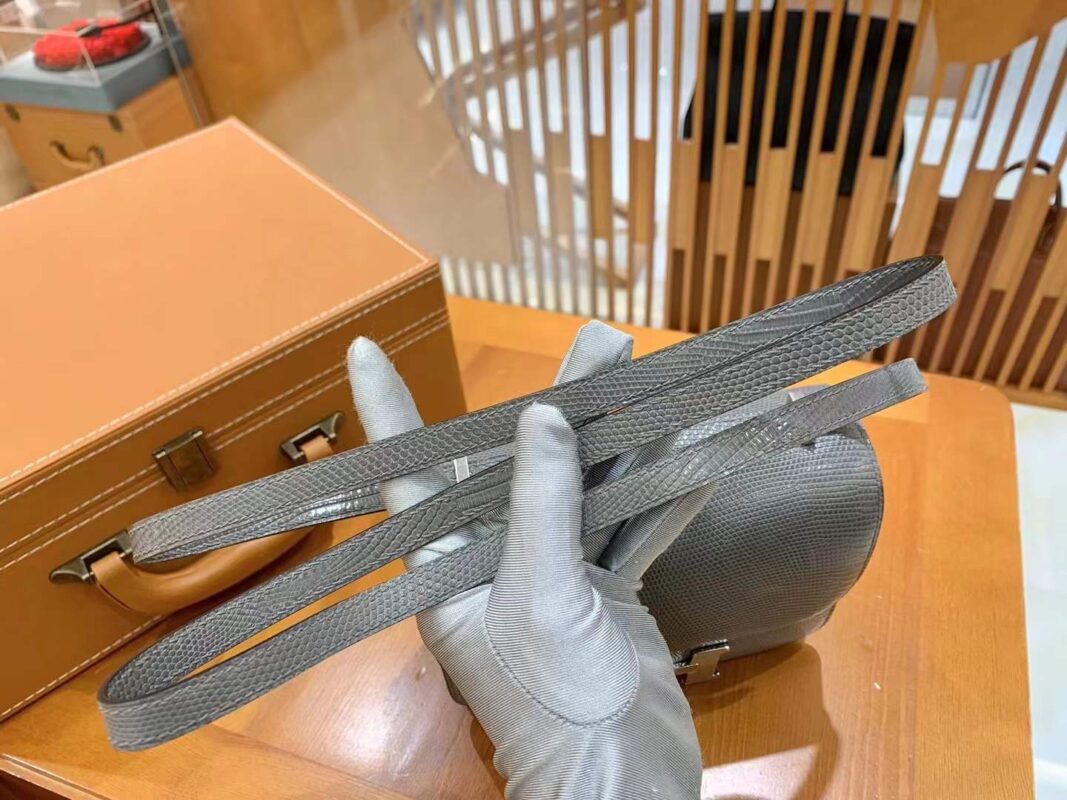 Constance 18cm Paris Grey Imported wild lizard skin. Hand-sewn