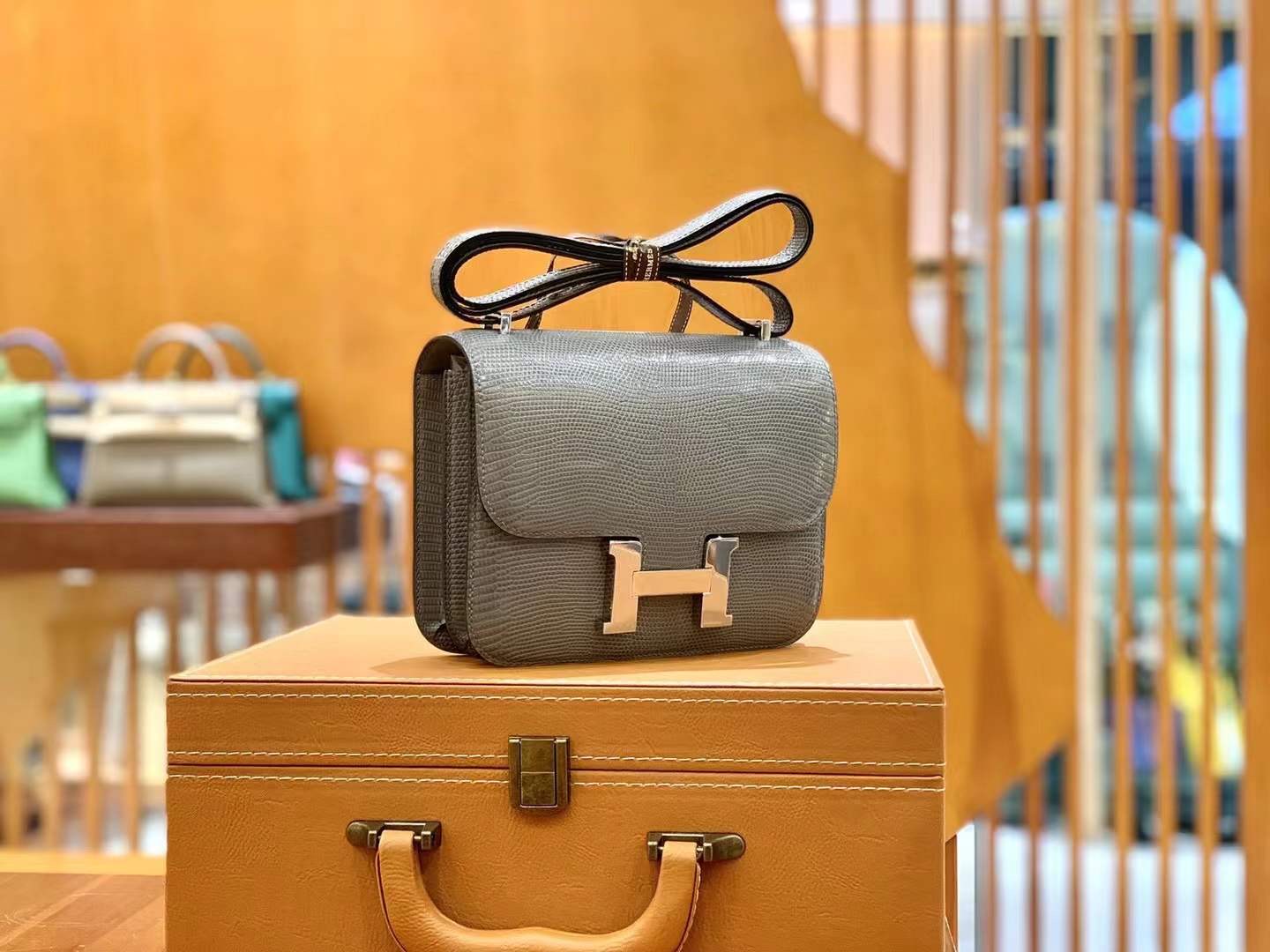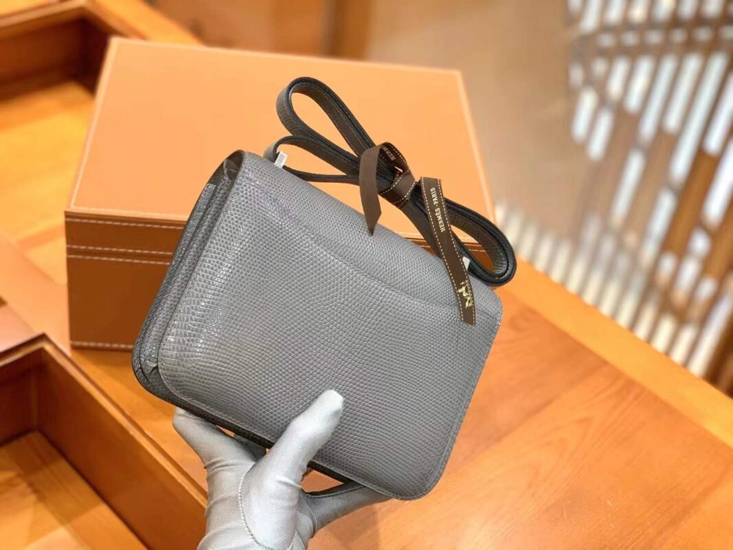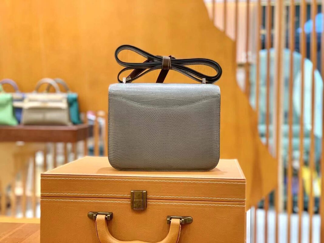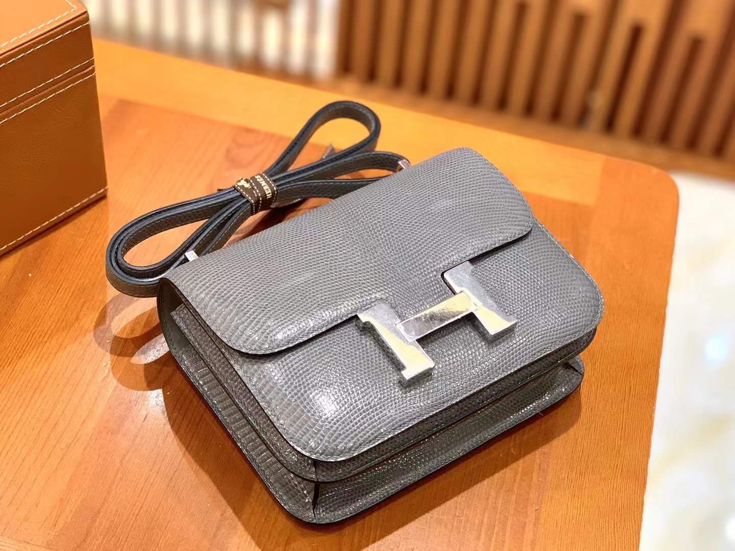 Constance 18cm Paris Grey Imported wild lizard skin. Hand-sewn