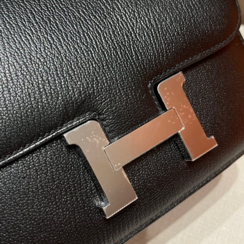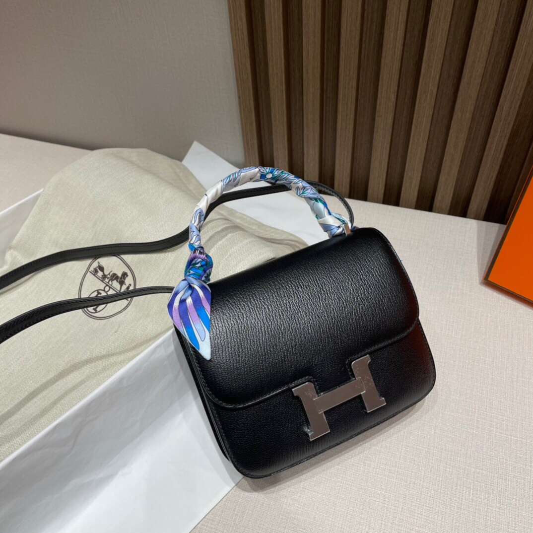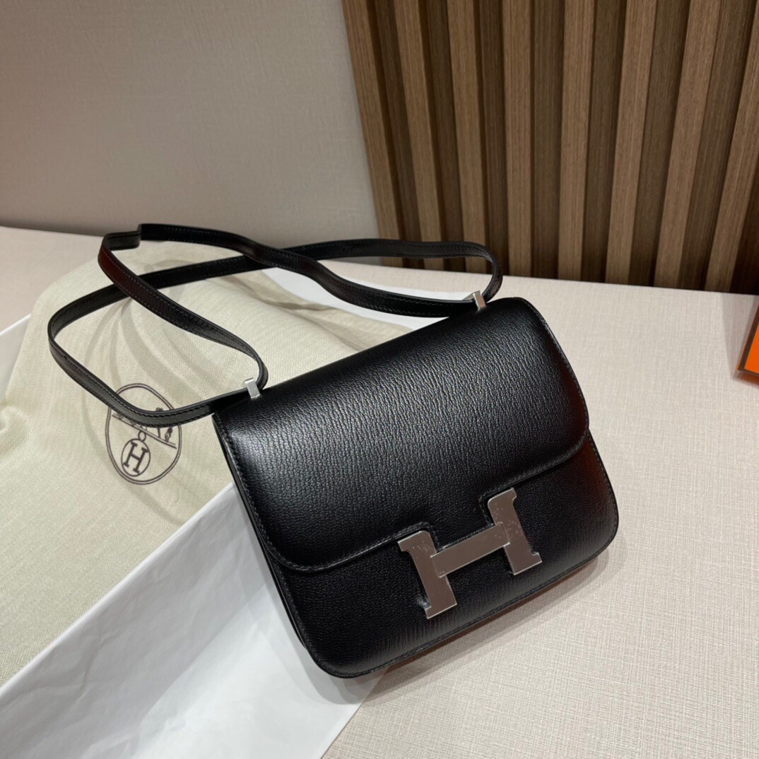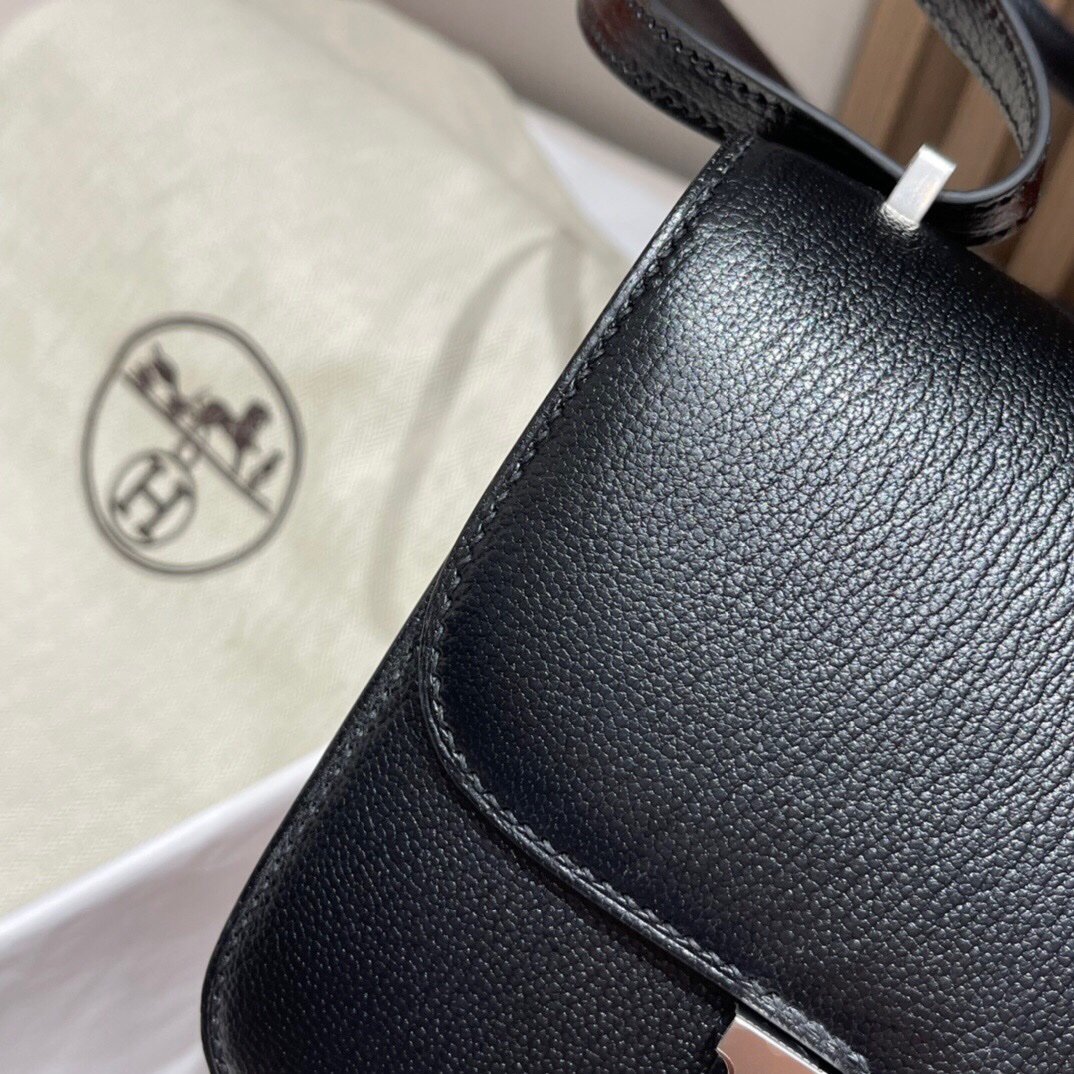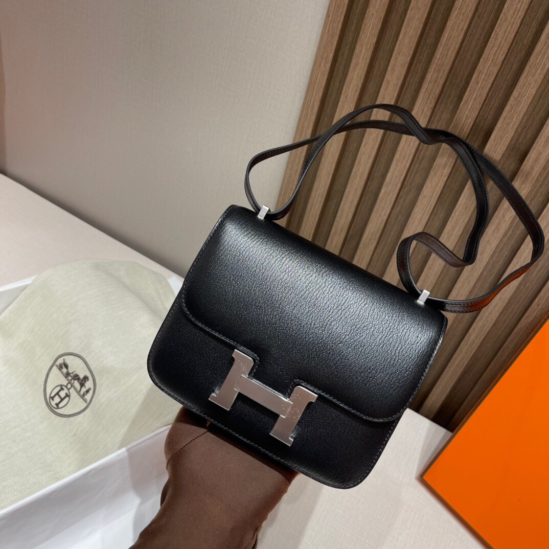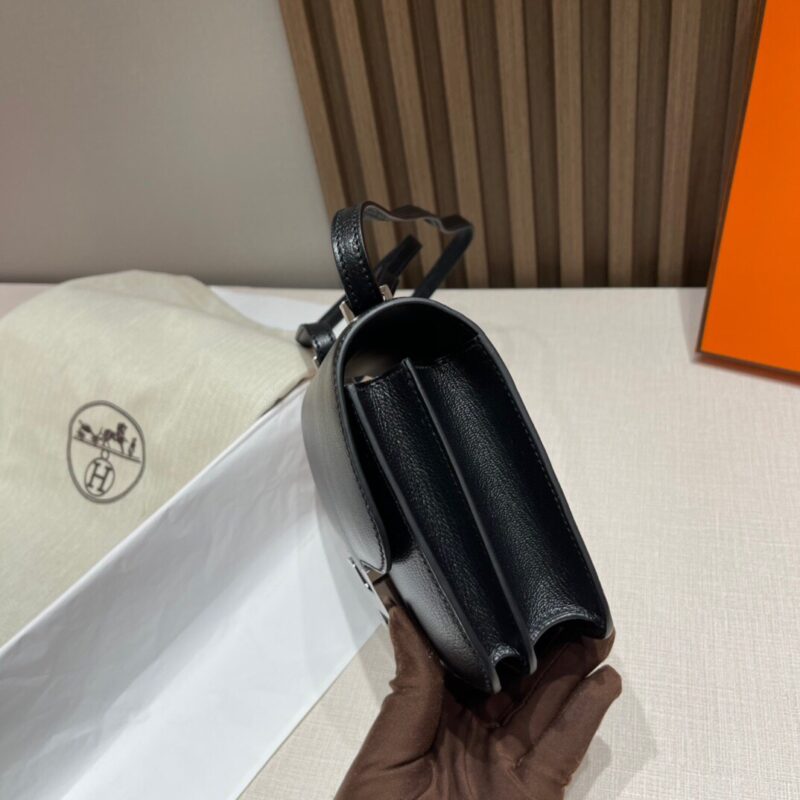 Constance 18cm Goatskin Chevre Mysore. 89 Noir. Silver Buckle Salt and Sweet Constance