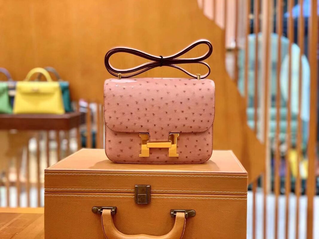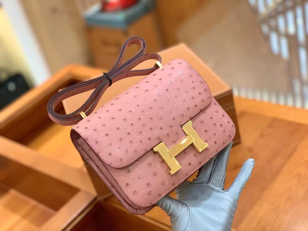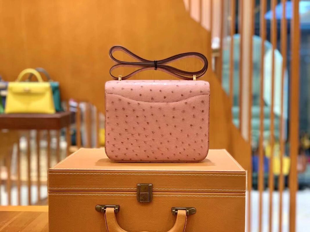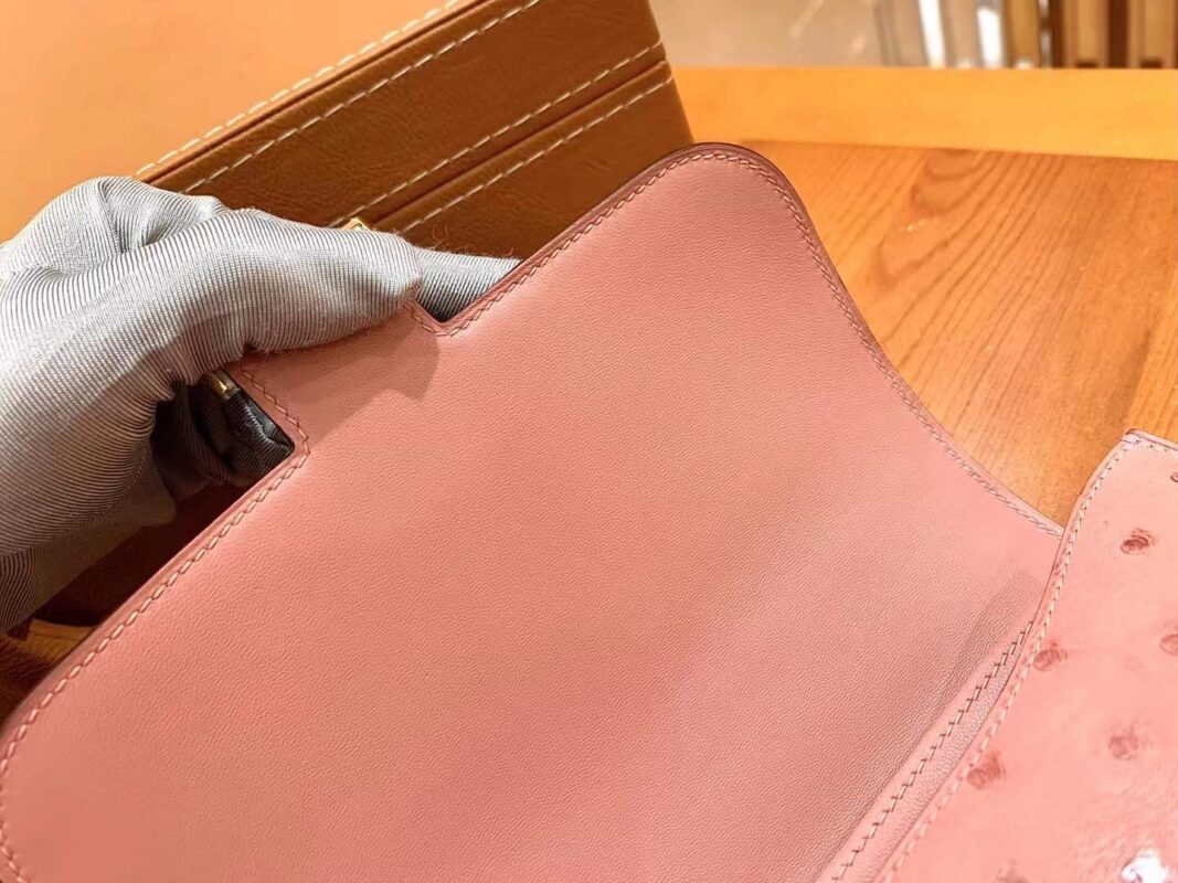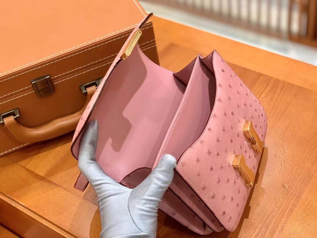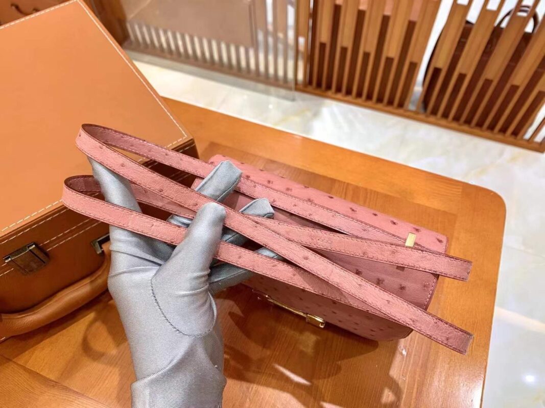 Constance 18cm Ceramic Pink Imported South African KK grade ostrich leather. Hand-sewn