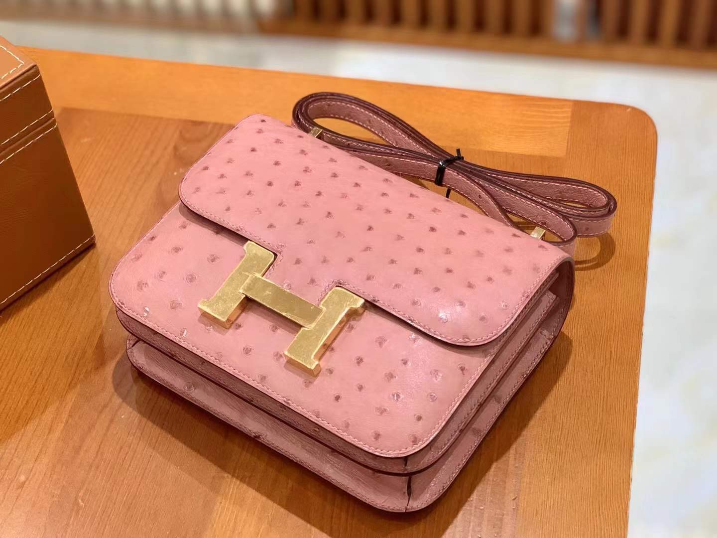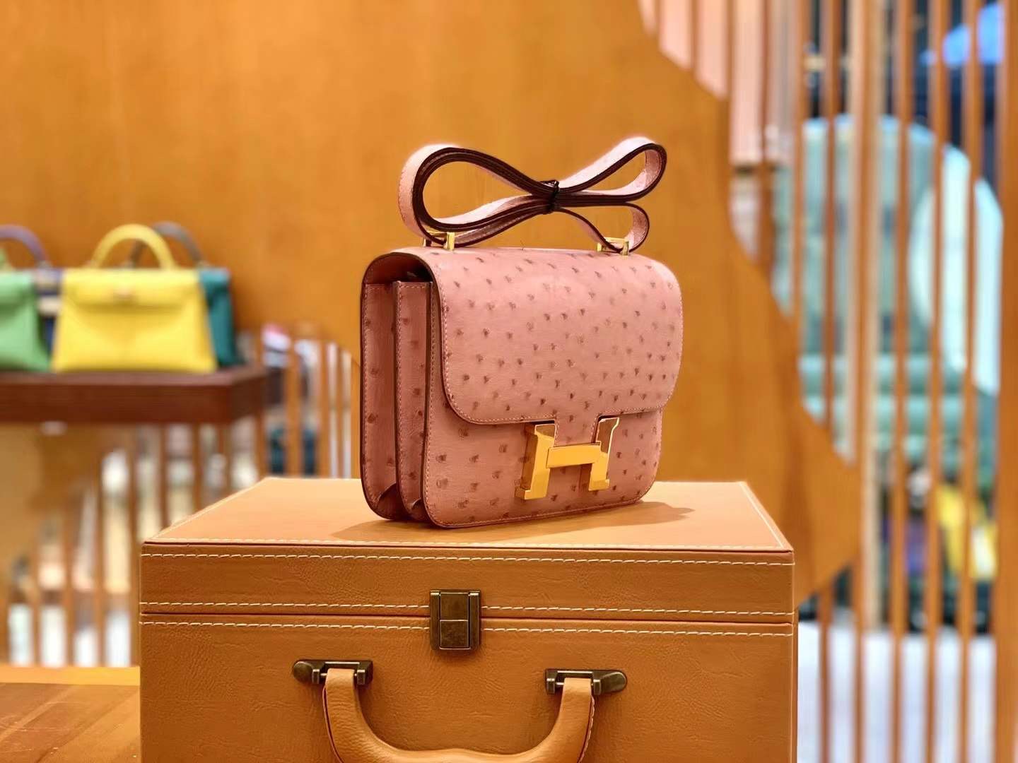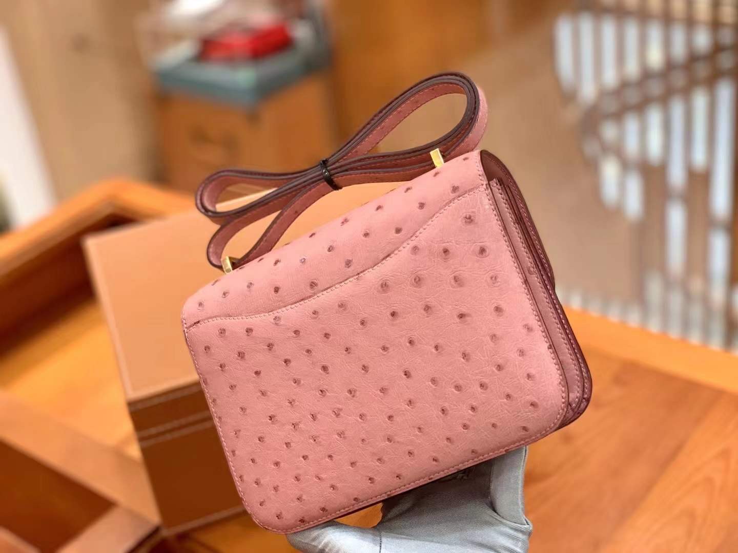 Constance 18cm Ceramic Pink Imported South African KK grade ostrich leather. Hand-sewn