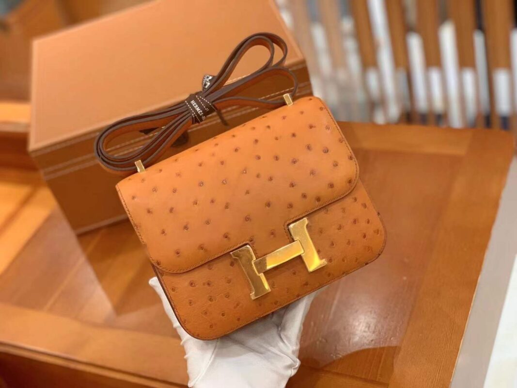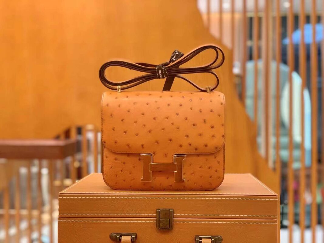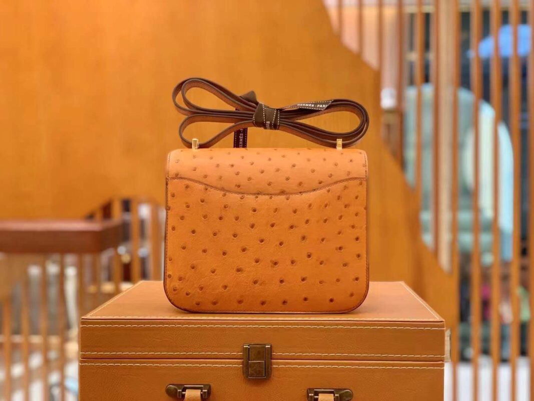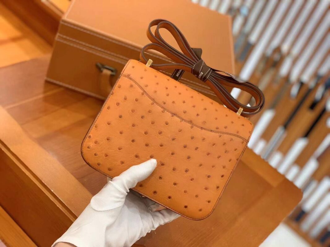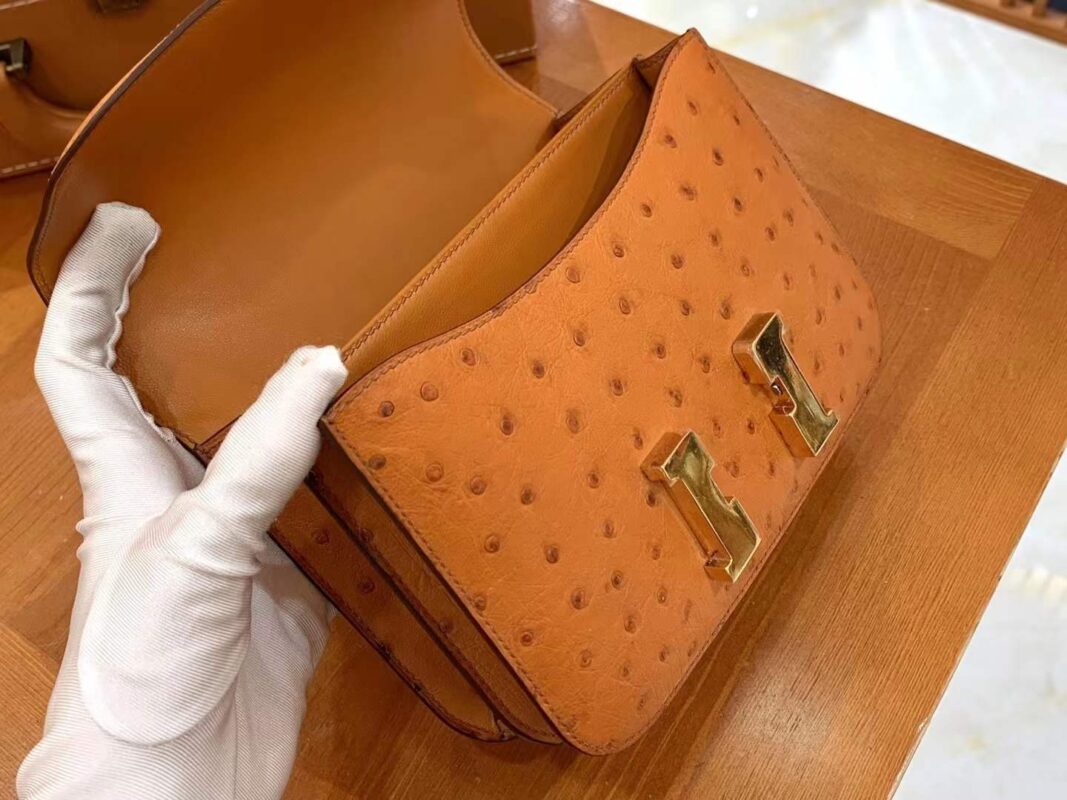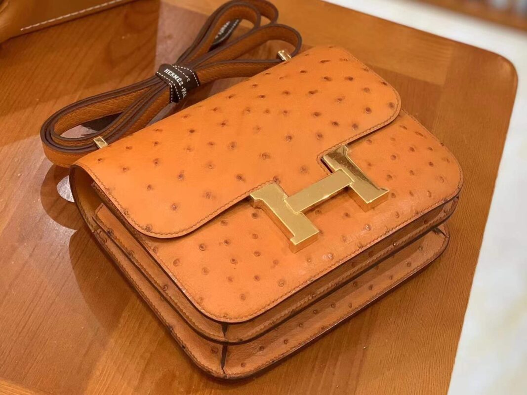 Constance 18cm Citrus Orange Imported South African KK grade ostrich leather. Hand-sewn