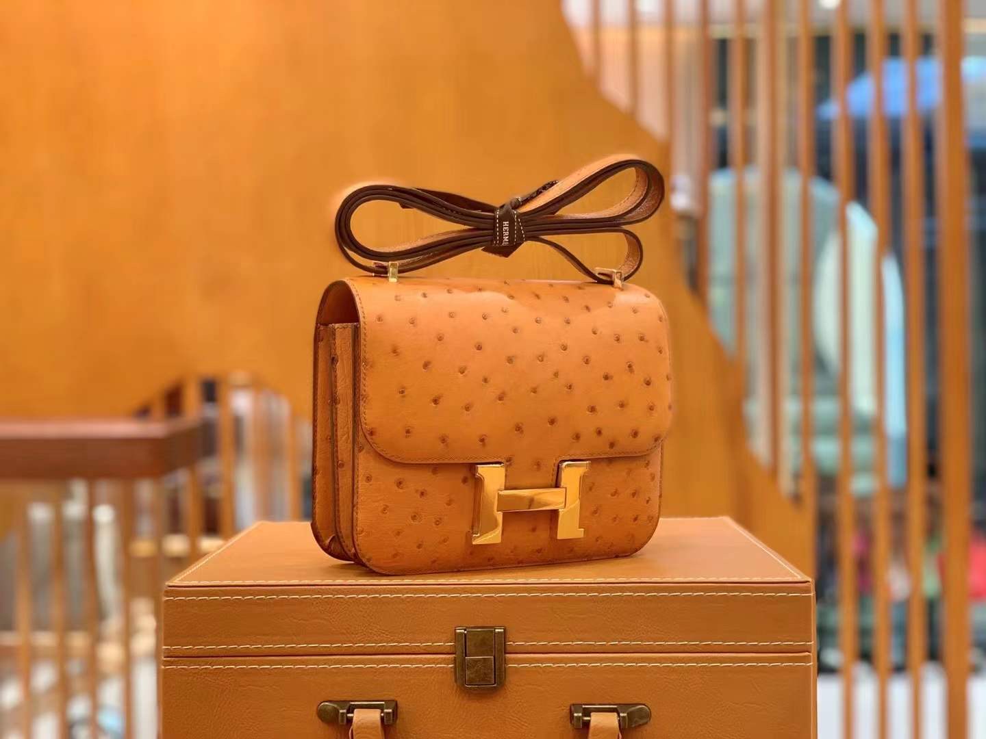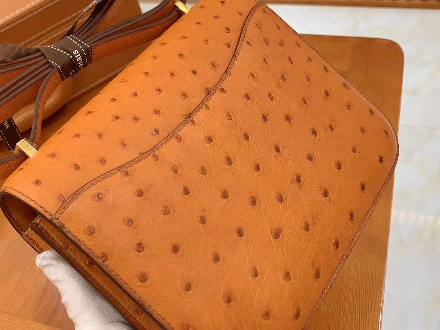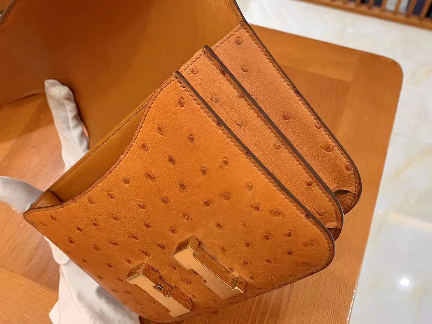 Constance 18cm Citrus Orange Imported South African KK grade ostrich leather. Hand-sewn