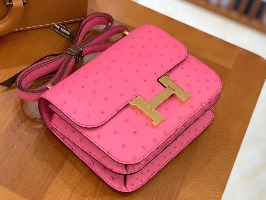 Constance 18cm Lipstick Pink Imported South African KK grade ostrich leather. Hand-sewn