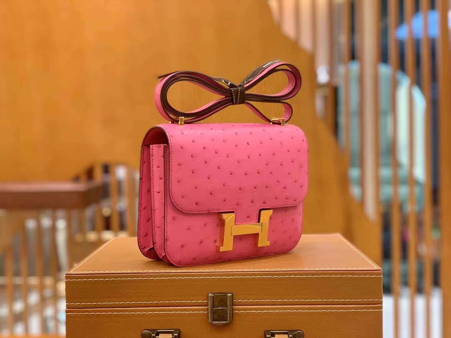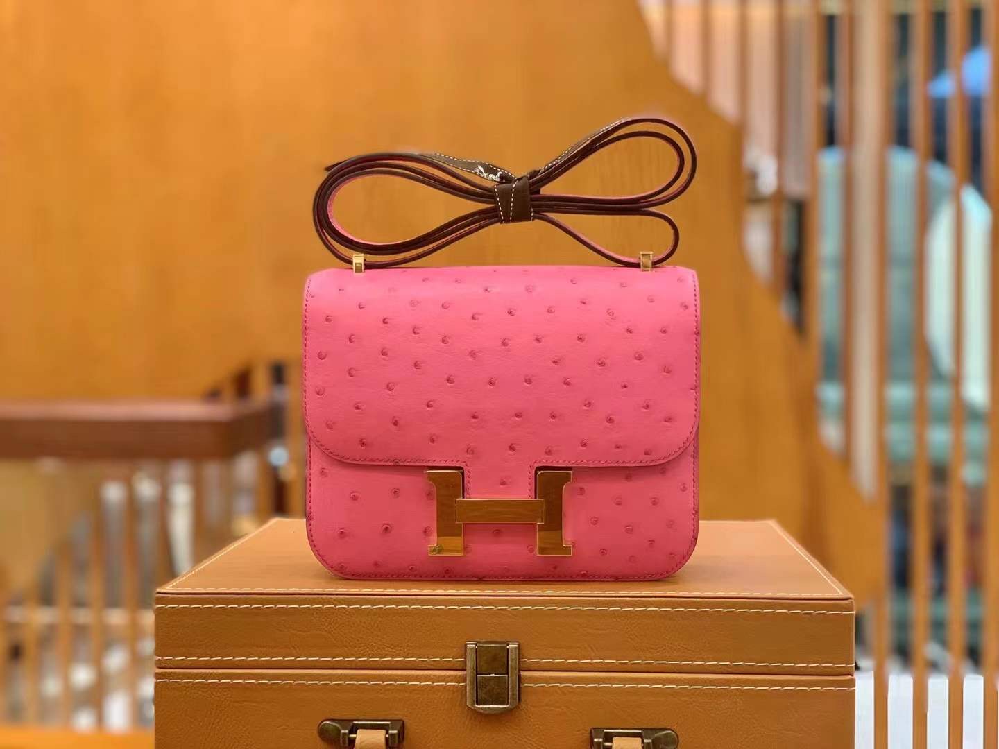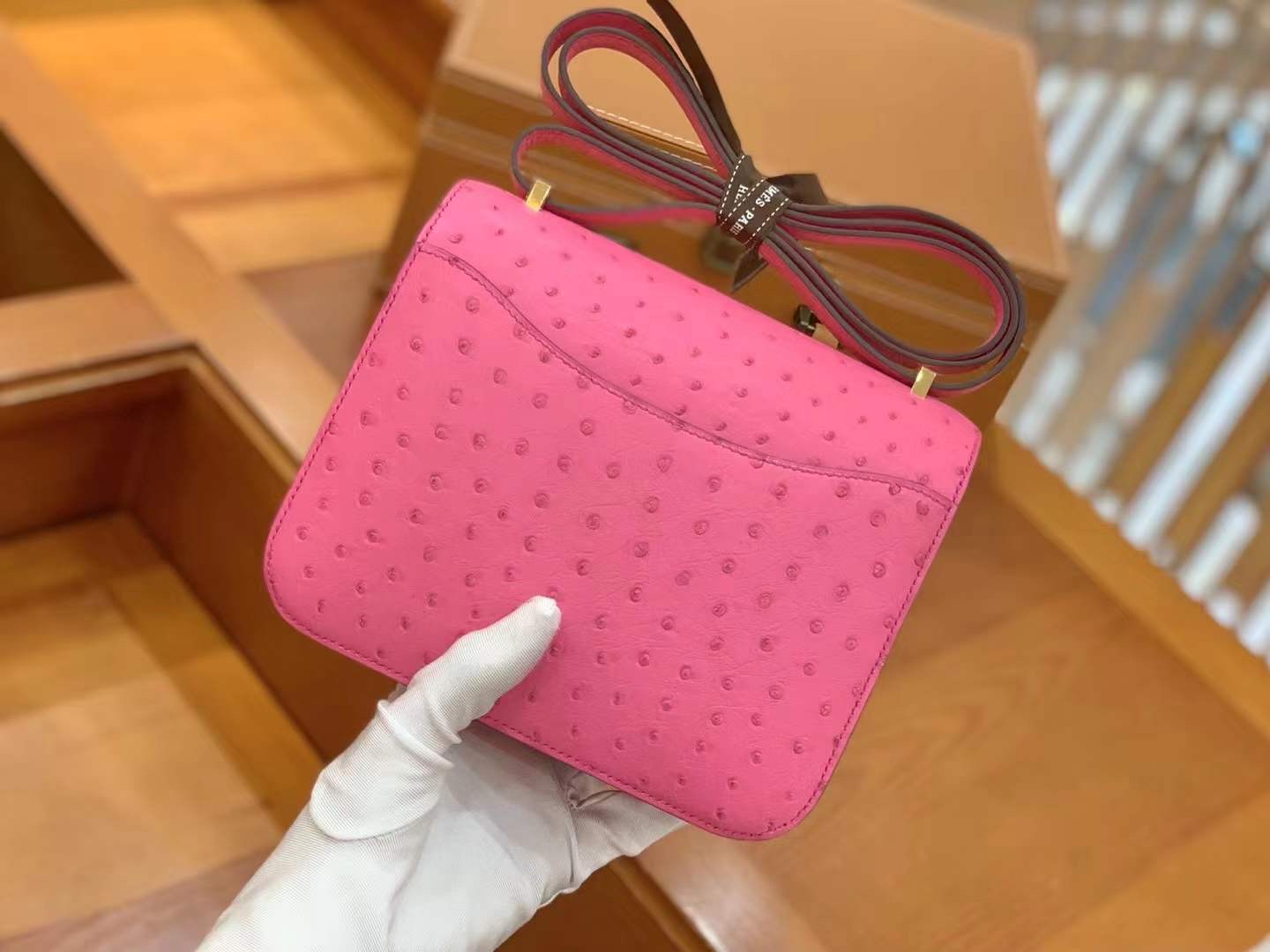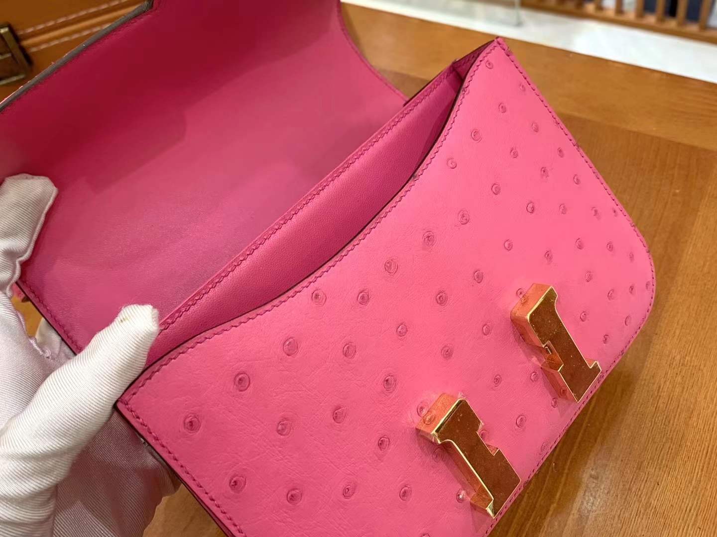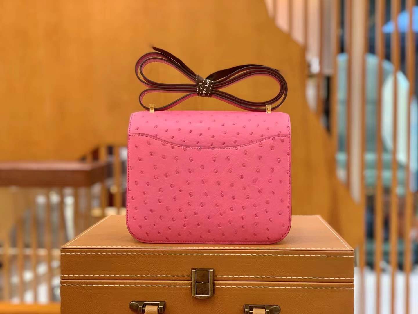 Constance 18cm Lipstick Pink Imported South African KK grade ostrich leather. Hand-sewn