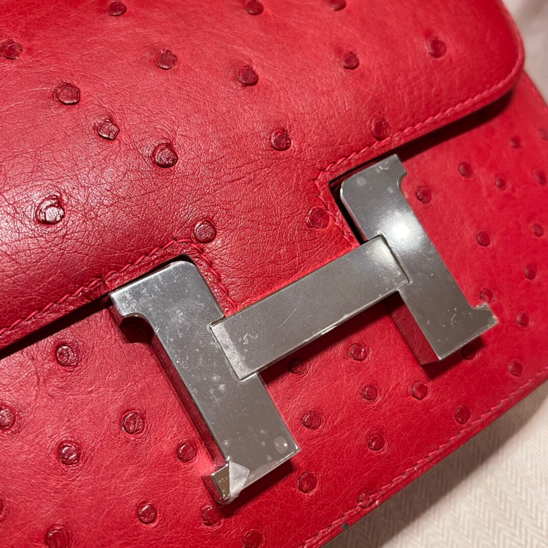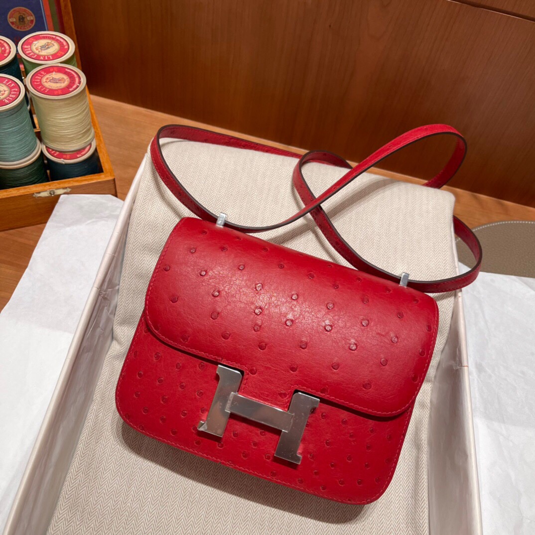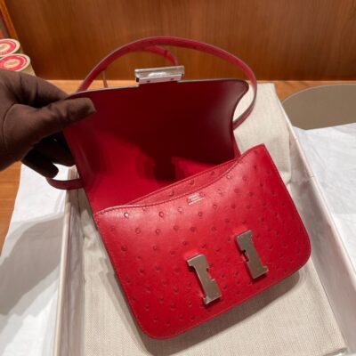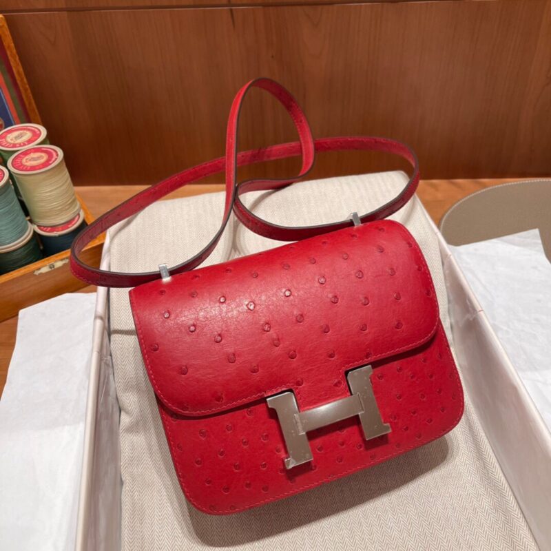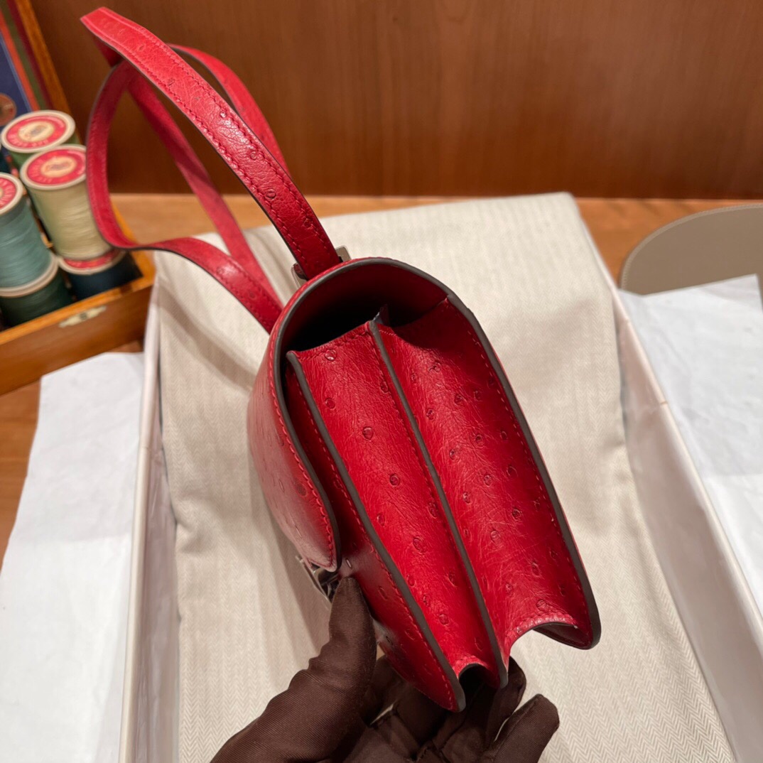Constance 18cm ostrich leather Ostrich 53 is red Rouge vif