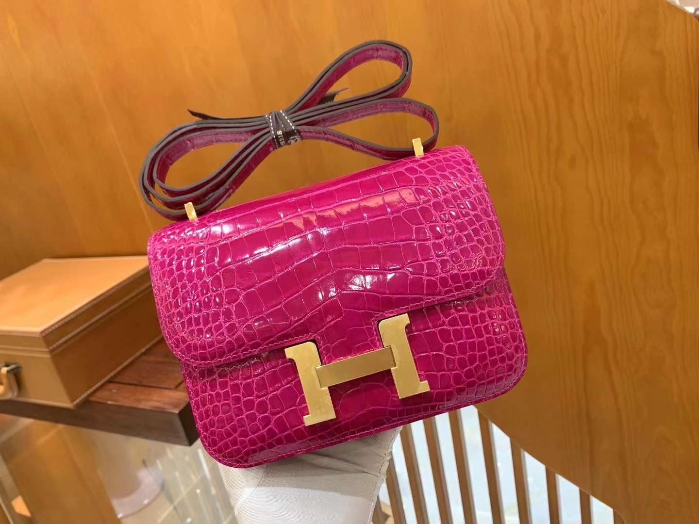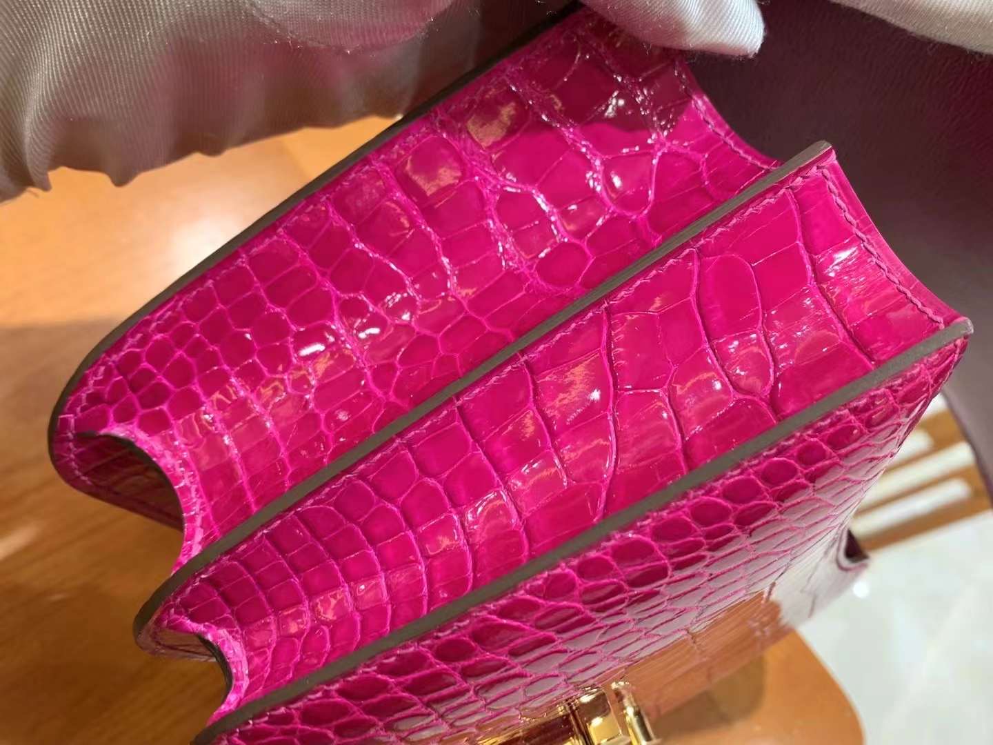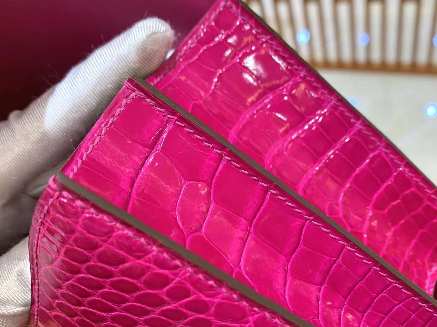 Constance 18 Shiny Alligator Leather in Pink
