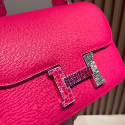 Constance 24cm Epsom Leather 0D Rose Mexico Pink Rose Mexico Three Buckles