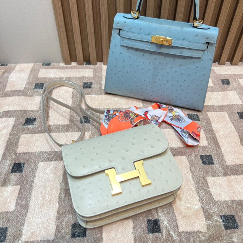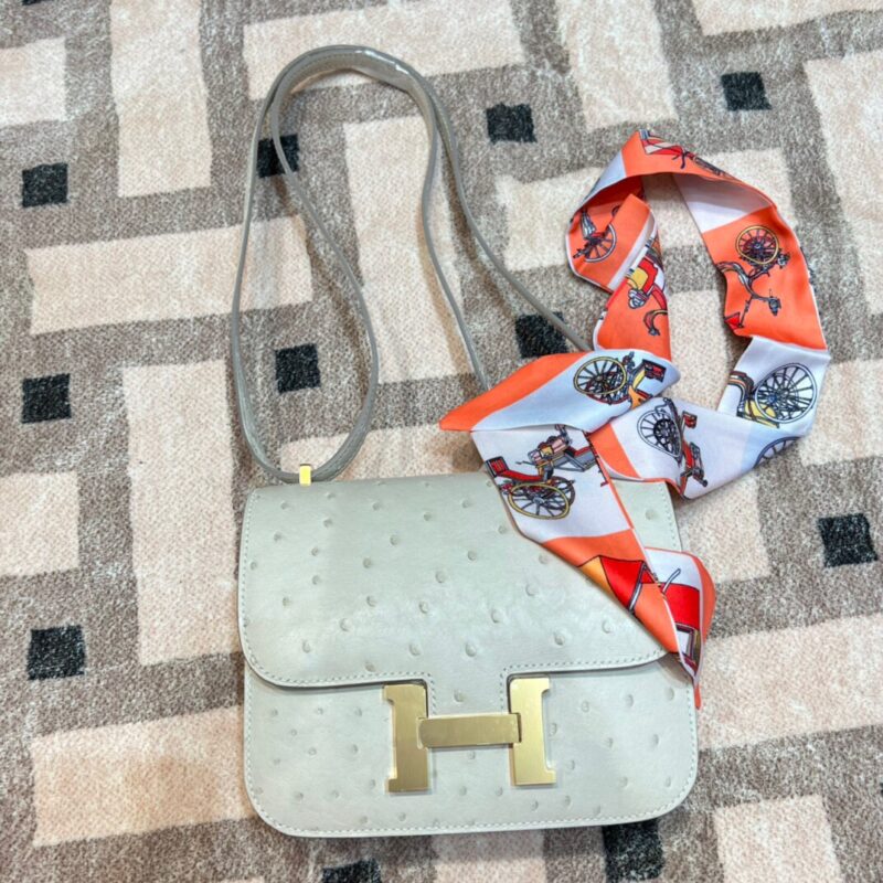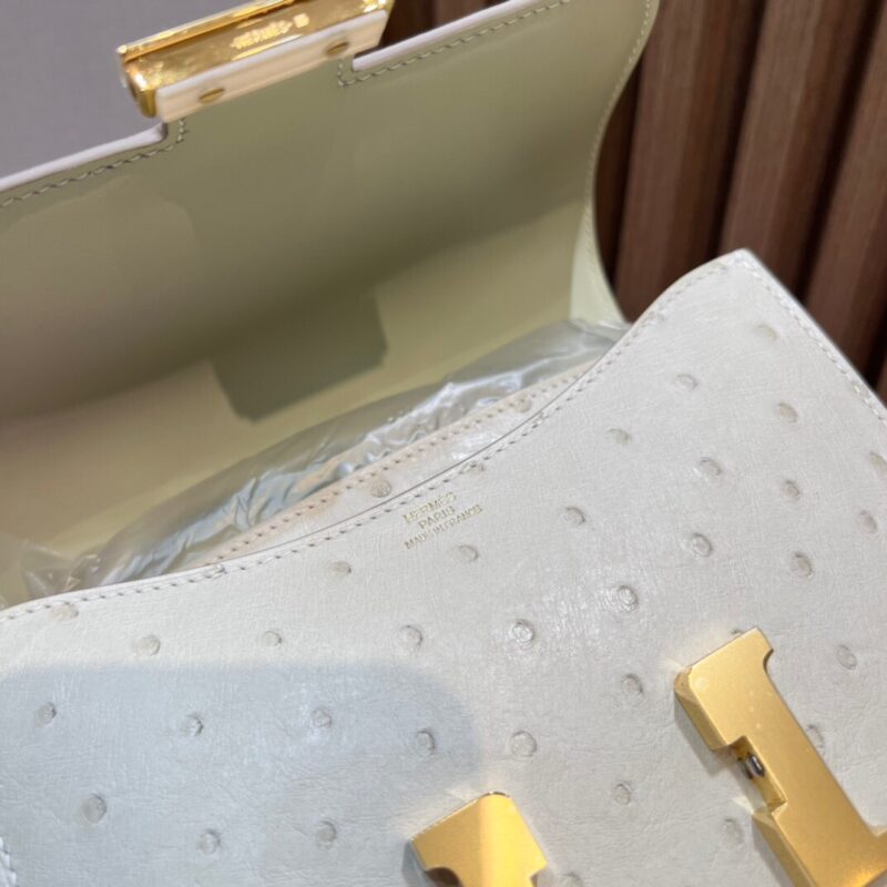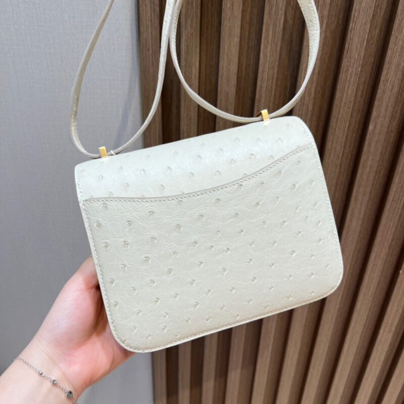 Constance 18cm ostrich leather Ostrich 3C wool white gold buckle beautiful value full marks