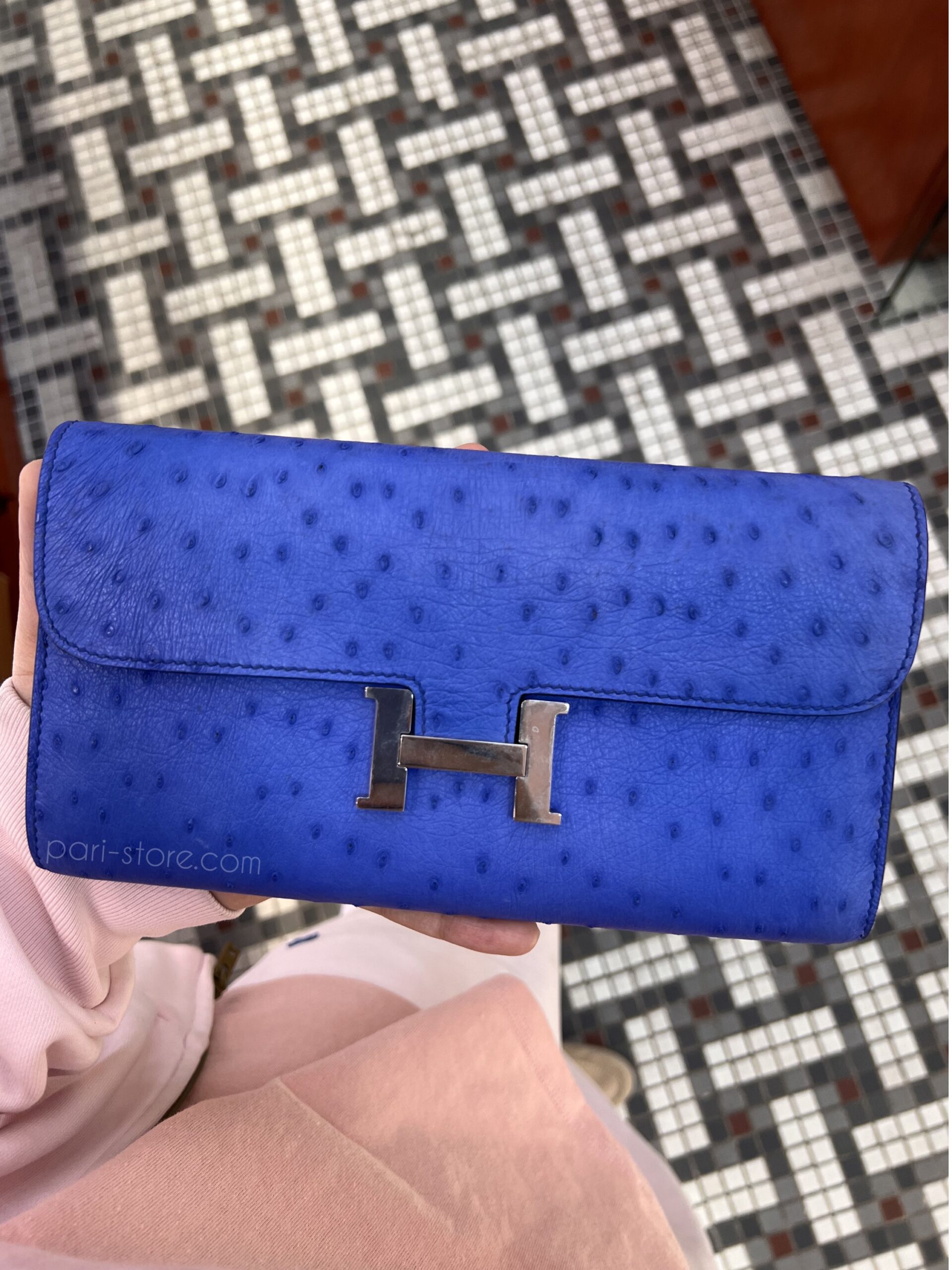 Constance Long To Go Wallet in Blue Ostrich PHW