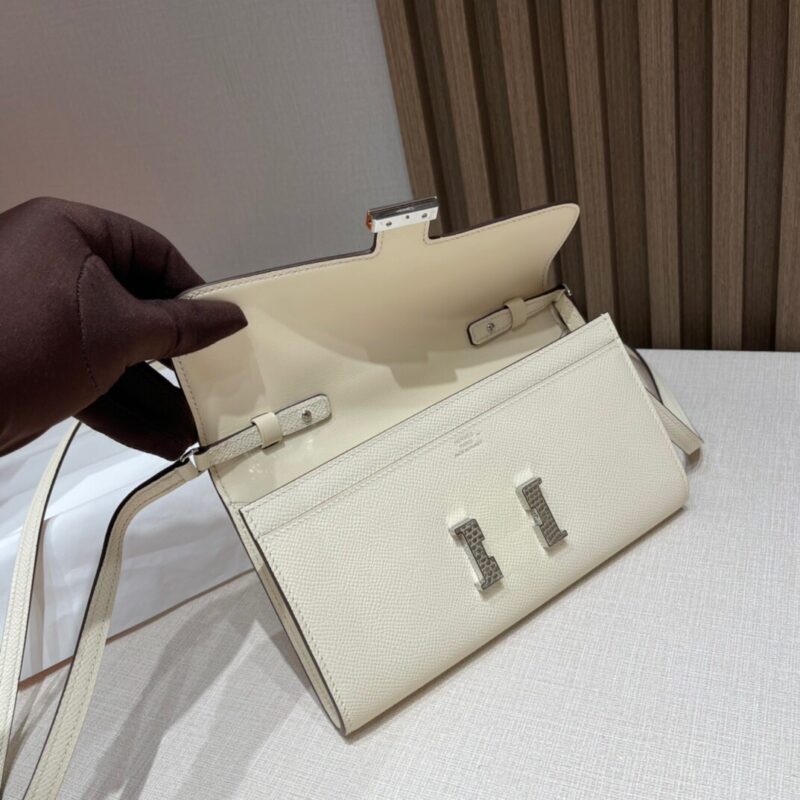Constance to go Epsom leather i2 cream white Nata lizard buckle engraved with a bar
