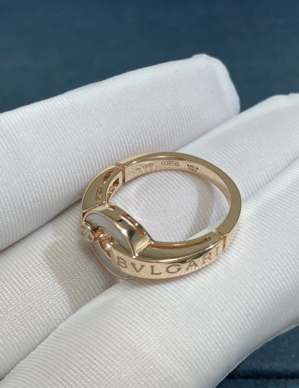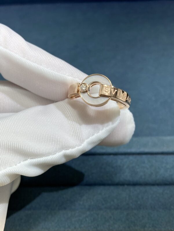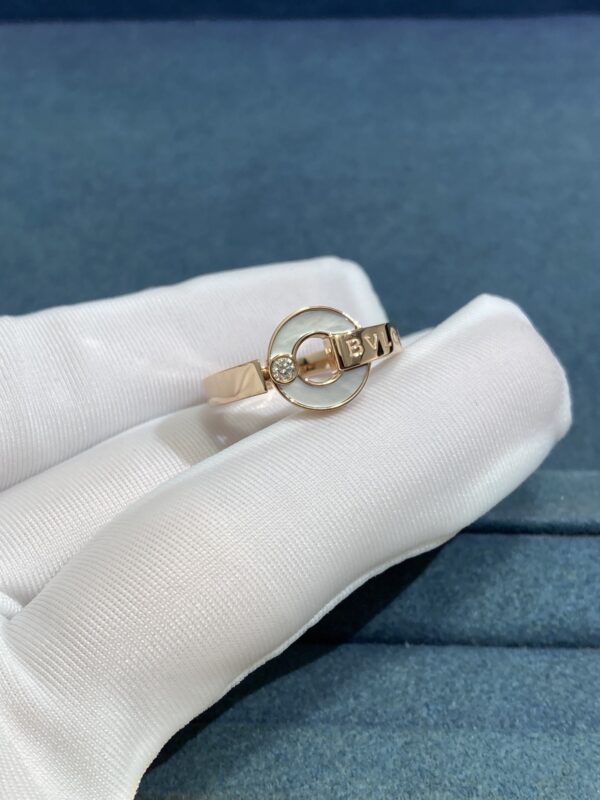 Copper Coin Ring in White Shell, Rose Gold