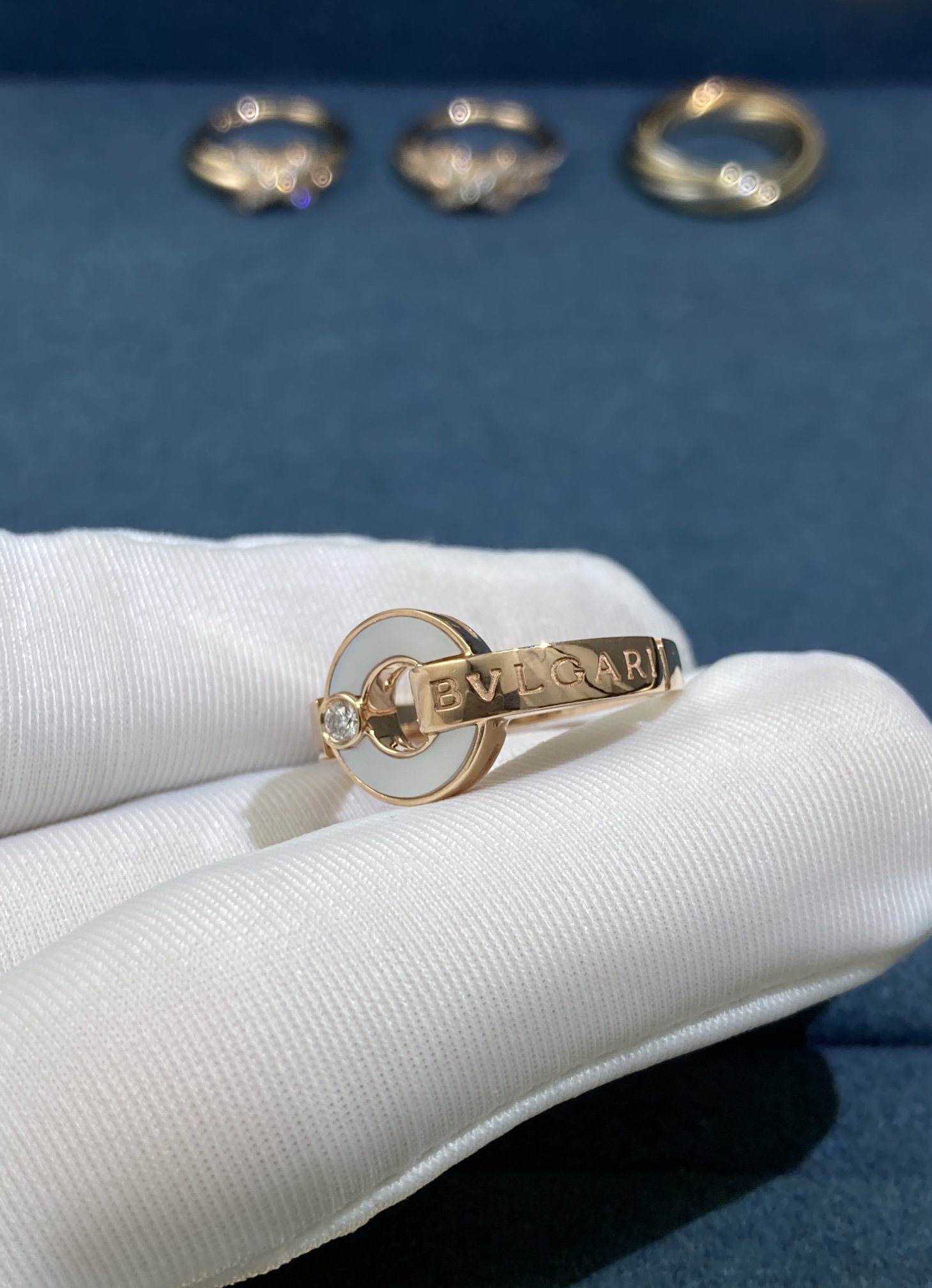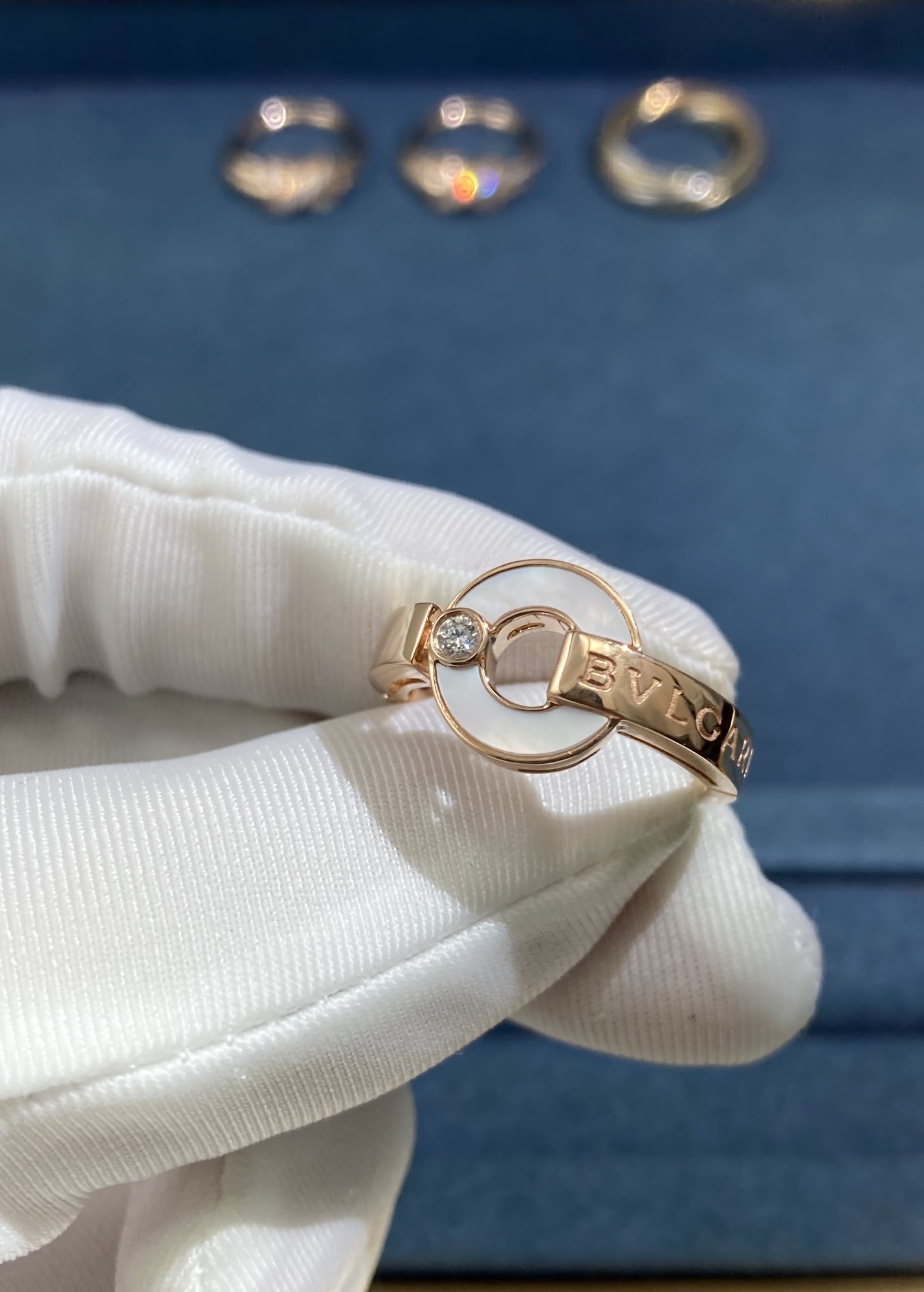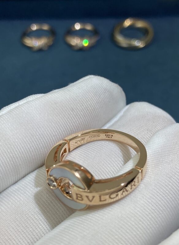 Bvlgary Copper Coin Ring in White Shell, Rose Gold