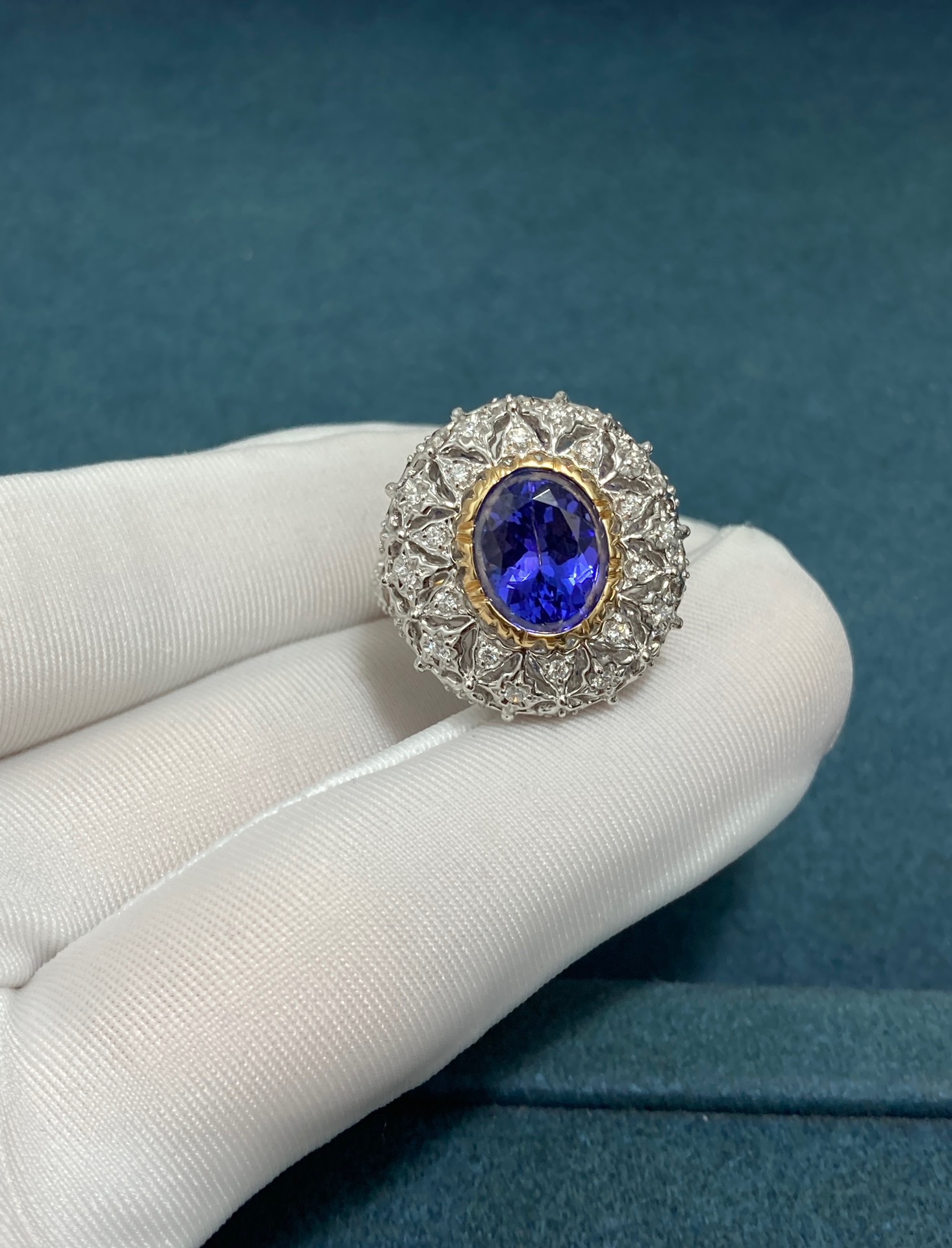 Cornflower Buccellati Ring, Platinum + Yellow Gold