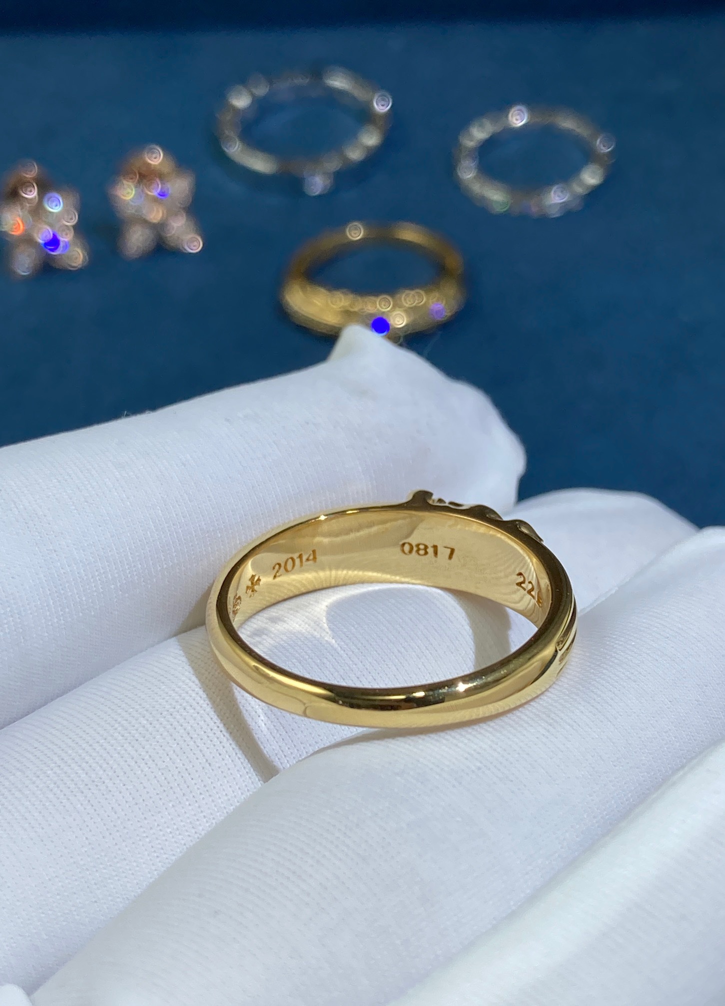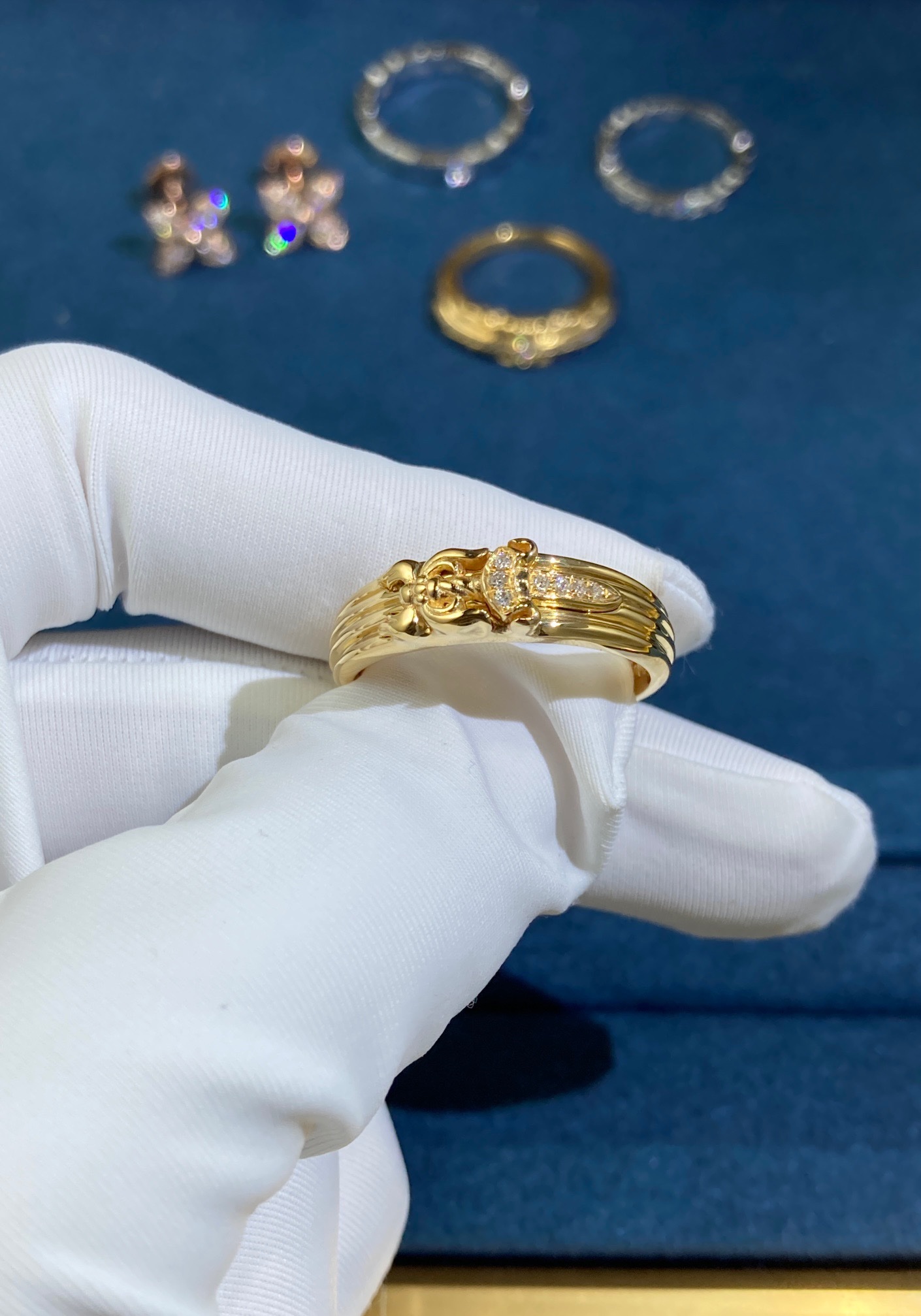 The metal used in pieces of jewelry are often a lustrous yellow or white gold, which is expertly polished to a mirror-like finish. The precious stones are carefully selected by our masters and set in a precise manner, showing off their color, clarity, and brilliance to their full potential.