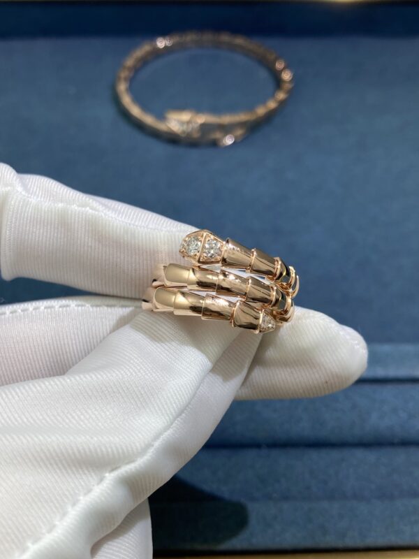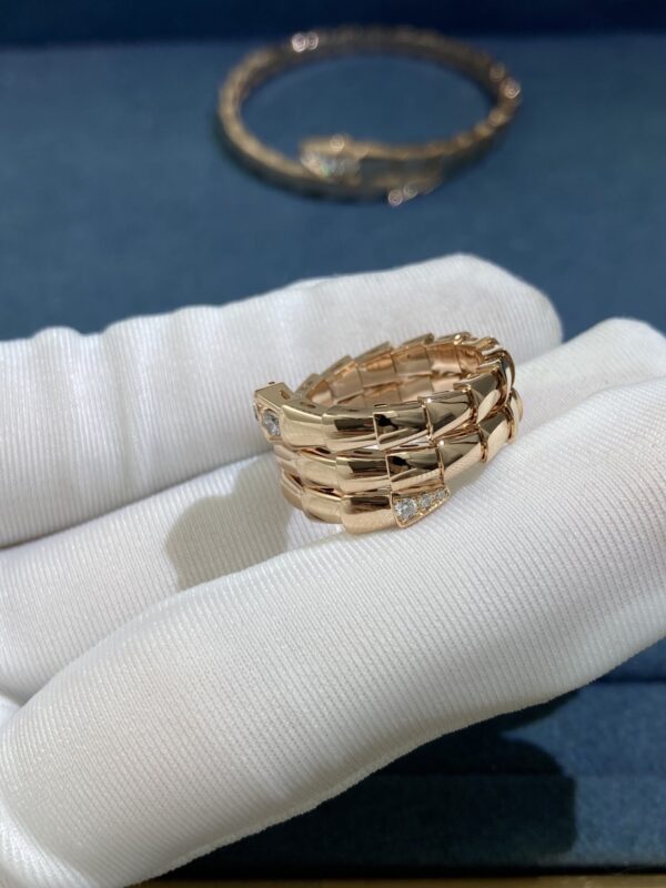 Bvlgary Diamond Head and Tail Snake Ring, Rose Gold