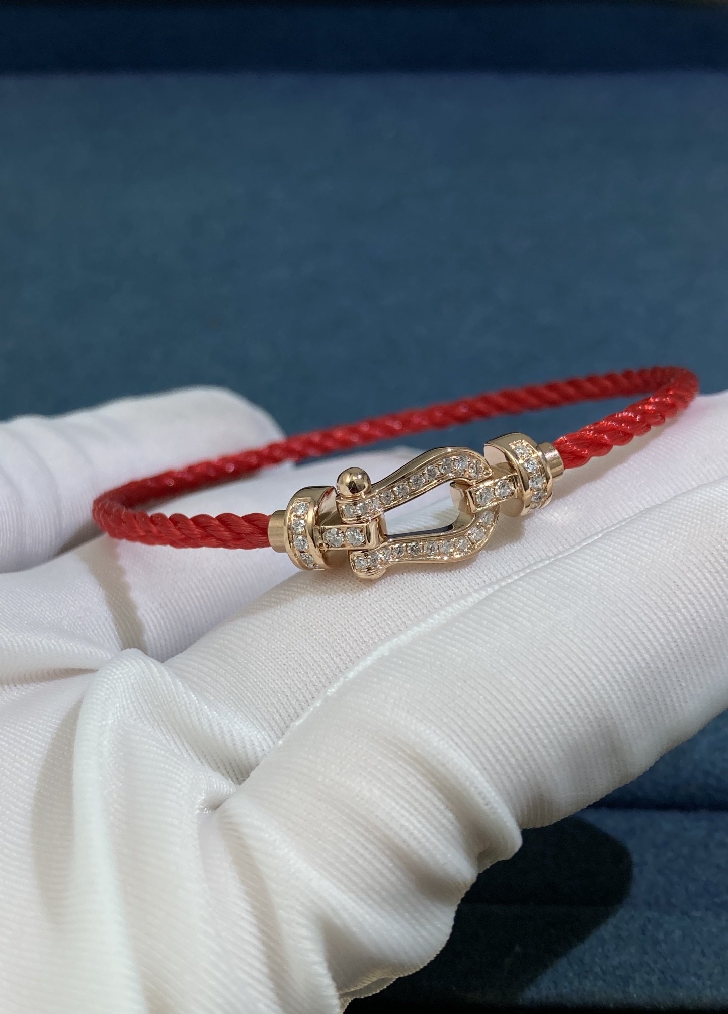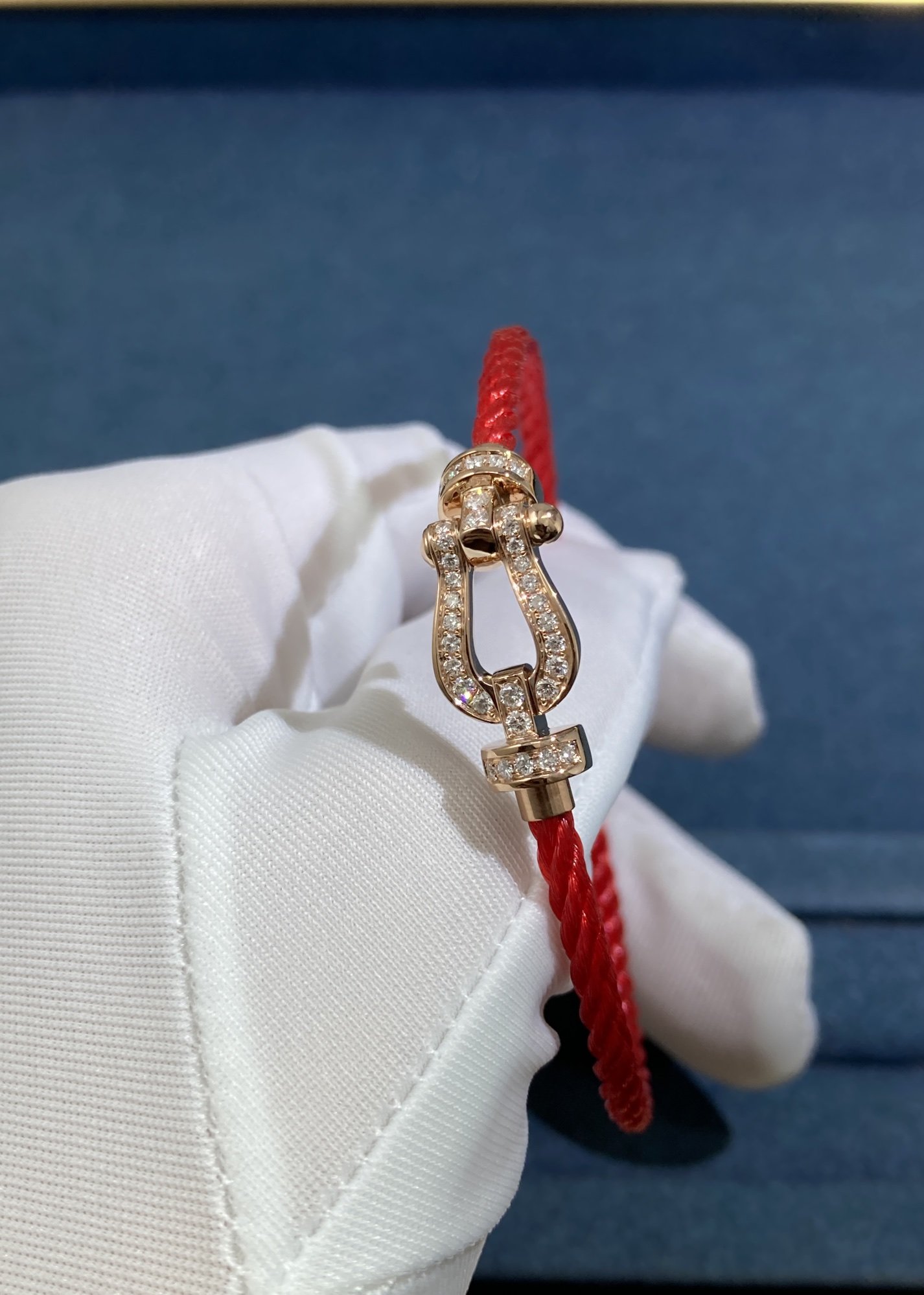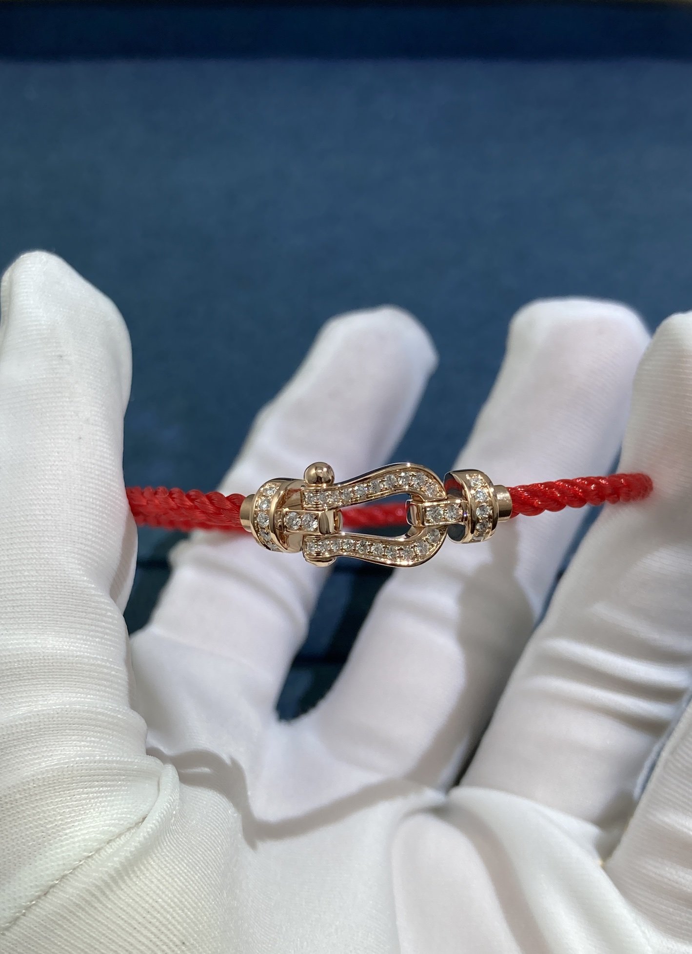 Fred's Diamond Horseshoe Buckle Red String, Rose Gold