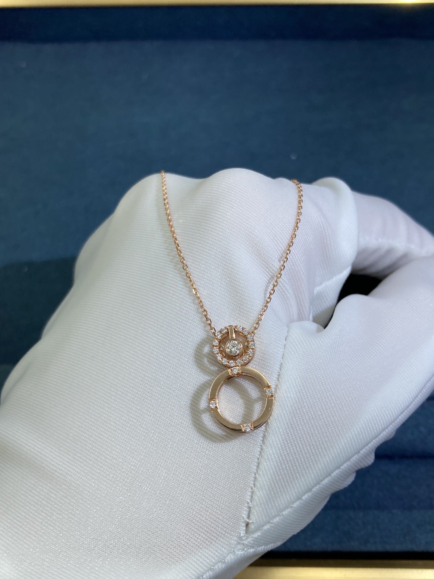 The metal used in pieces of jewelry are often a lustrous yellow or white gold, which is expertly polished to a mirror-like finish. The precious stones are carefully selected by our masters and set in a precise manner, showing off their color, clarity, and brilliance to their full potential.