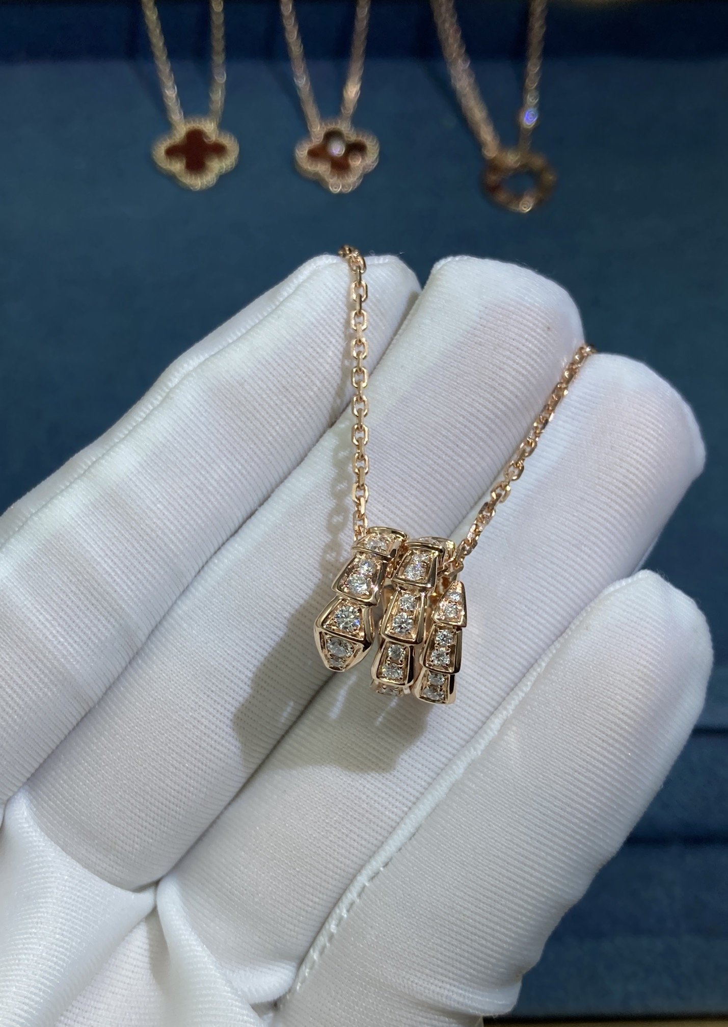 Diamond Snake Necklace, Rose Gold