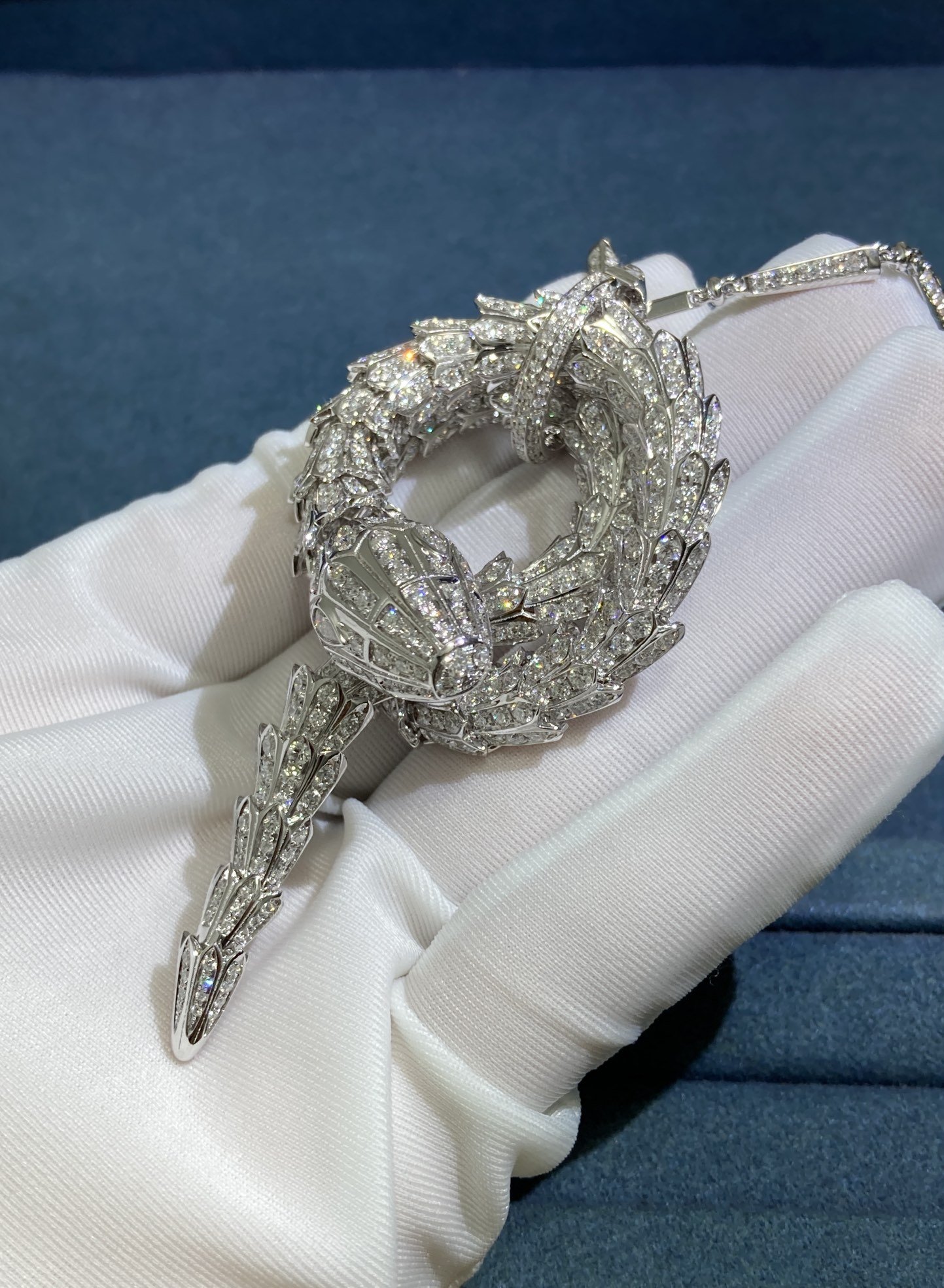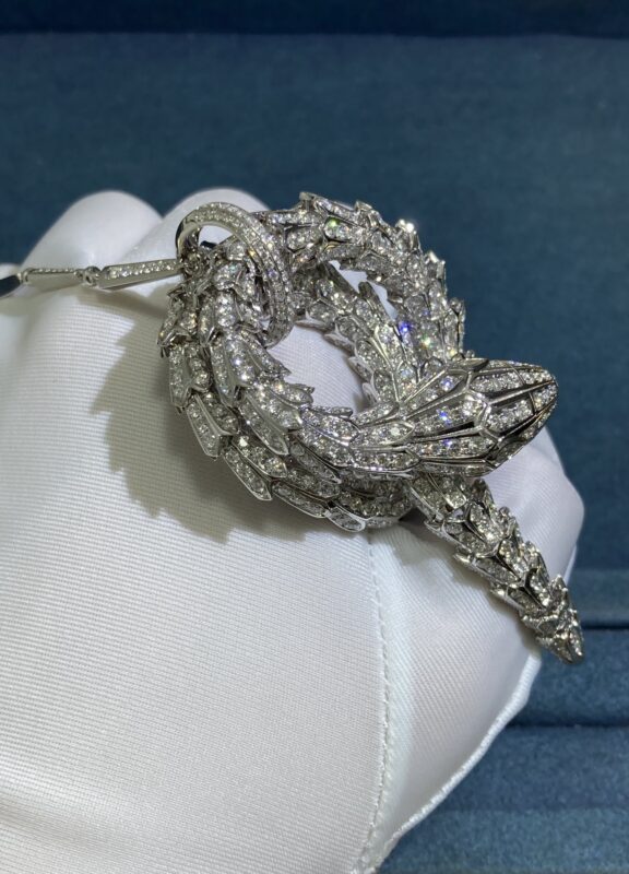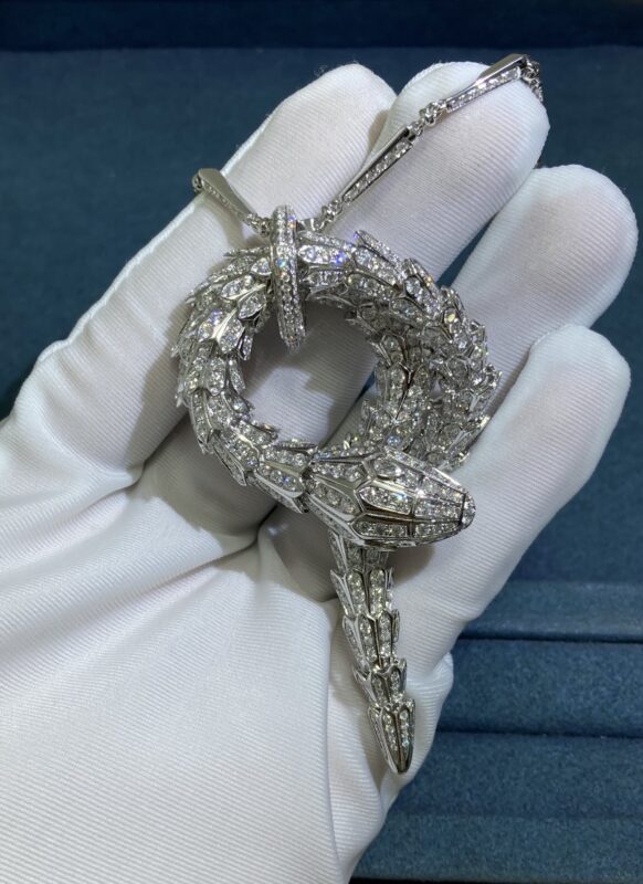 Diamond Snake Necklace, White Gold