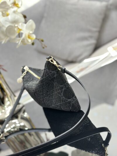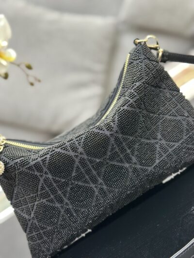 Dior Dream embroidered bead tube black, a new and elegant item for the summer of 2023, highlighting the exquisite craftsmanship of Dior workshops. Crafted from dreamy cotton, it features a classic cannage pattern, hand-embroidered with 2mm glass beads. Finished with an adjustable and detachable leather spaghetti strap for added sophistication, it will elevate the look with elegant evening looks. Size 26×16cm