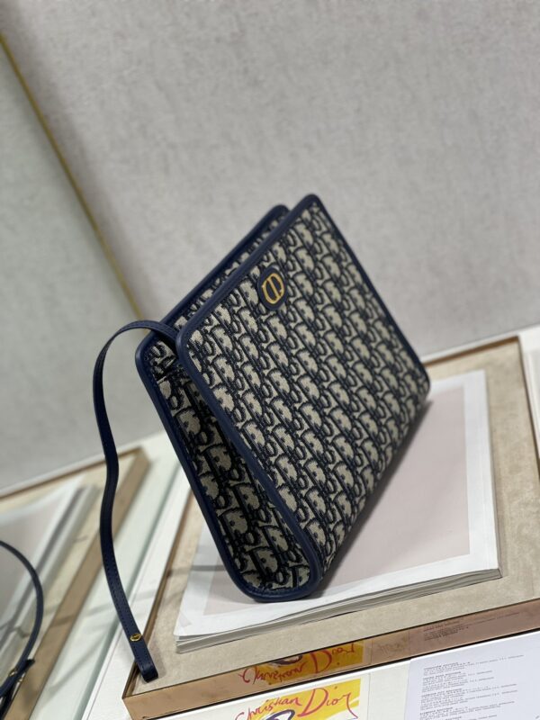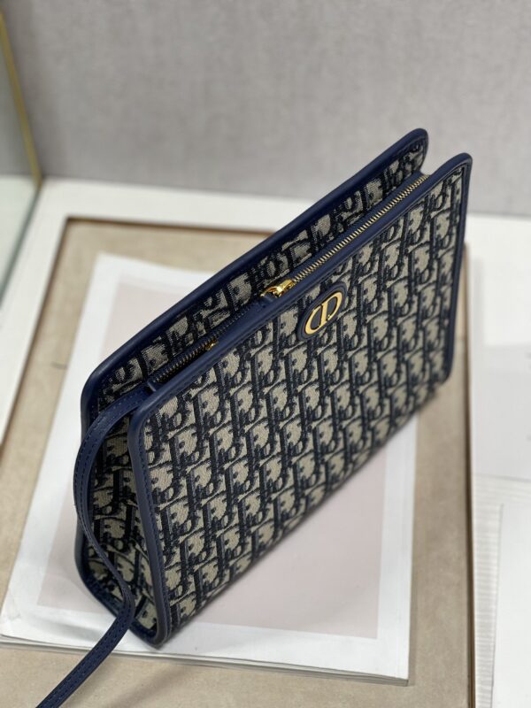 This 30 Montaigne Clutch is a classic and elegant accessory. Elaborately embellished in blue jacquard Oblique print and ‘CD’ logo on the front. The interior compartments are roomy enough to hold a variety of everyday essentials. The structured shape can be worn alone as a clutch or tucked into a Book Tote bag.