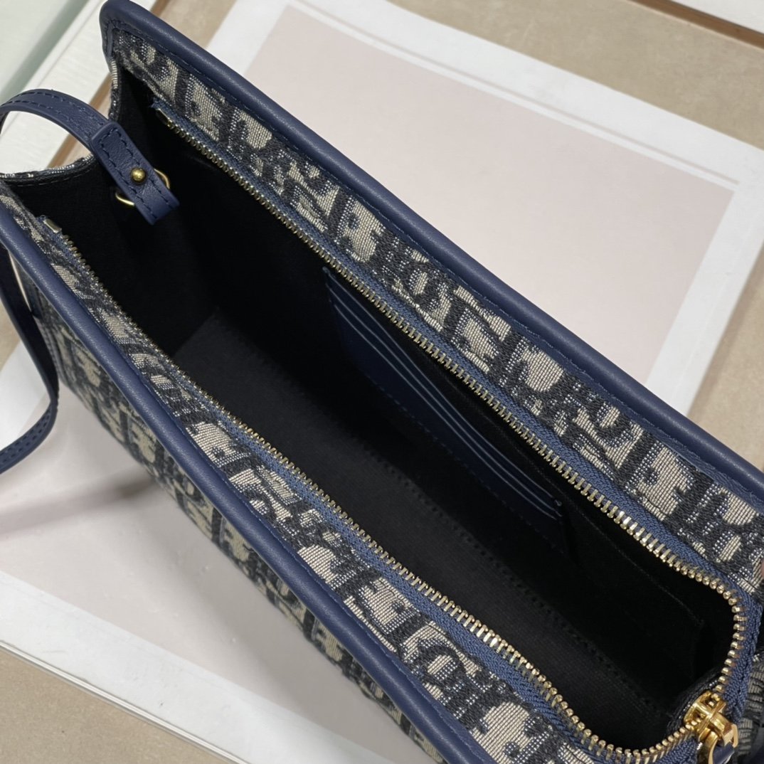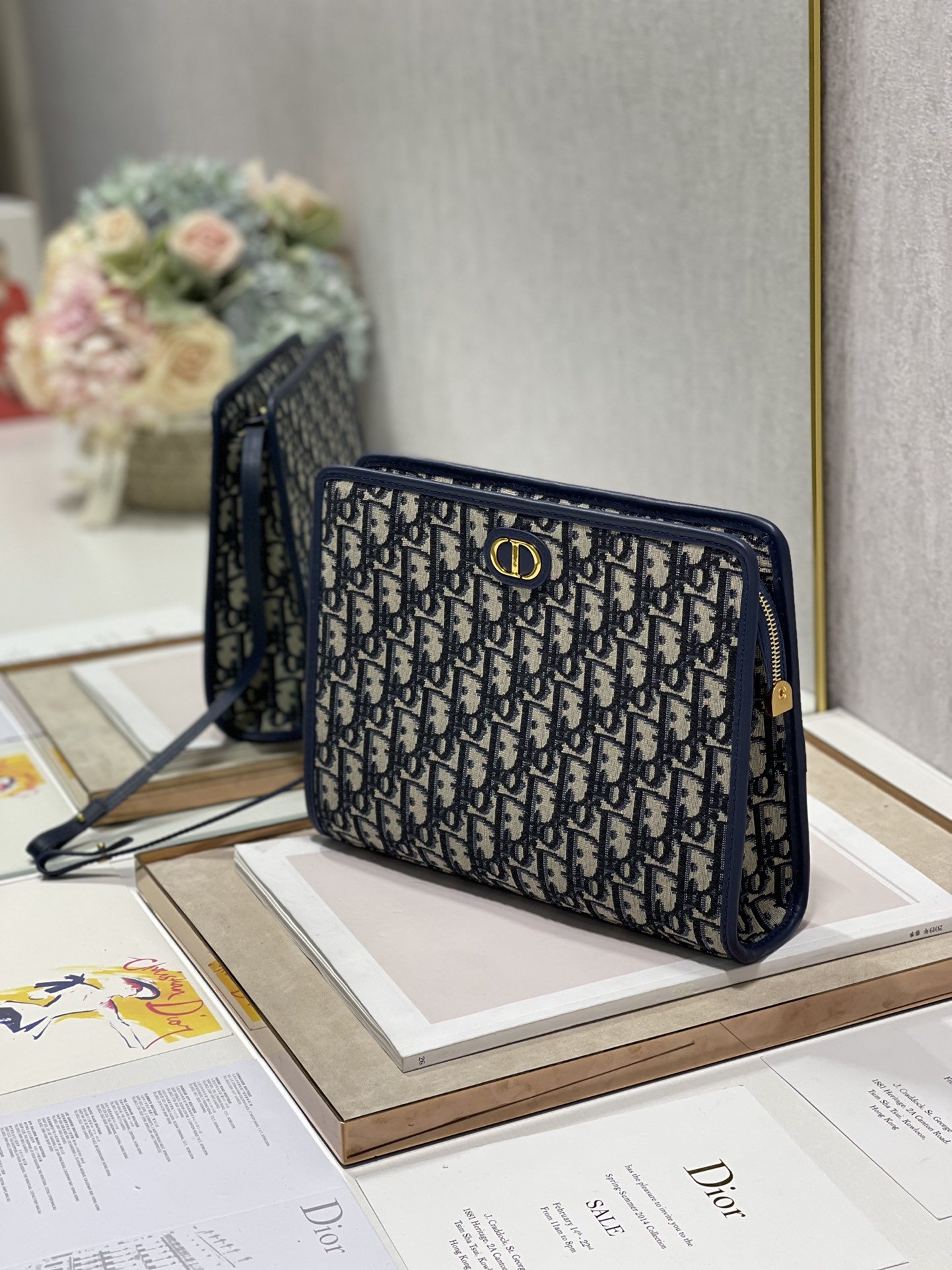 This 30 Montaigne Clutch is a classic and elegant accessory. Elaborately embellished in blue jacquard Oblique print and ‘CD’ logo on the front. The interior compartments are roomy enough to hold a variety of everyday essentials. The structured shape can be worn alone as a clutch or tucked into a Book Tote bag.