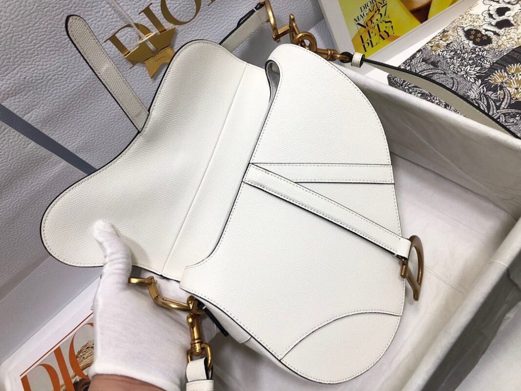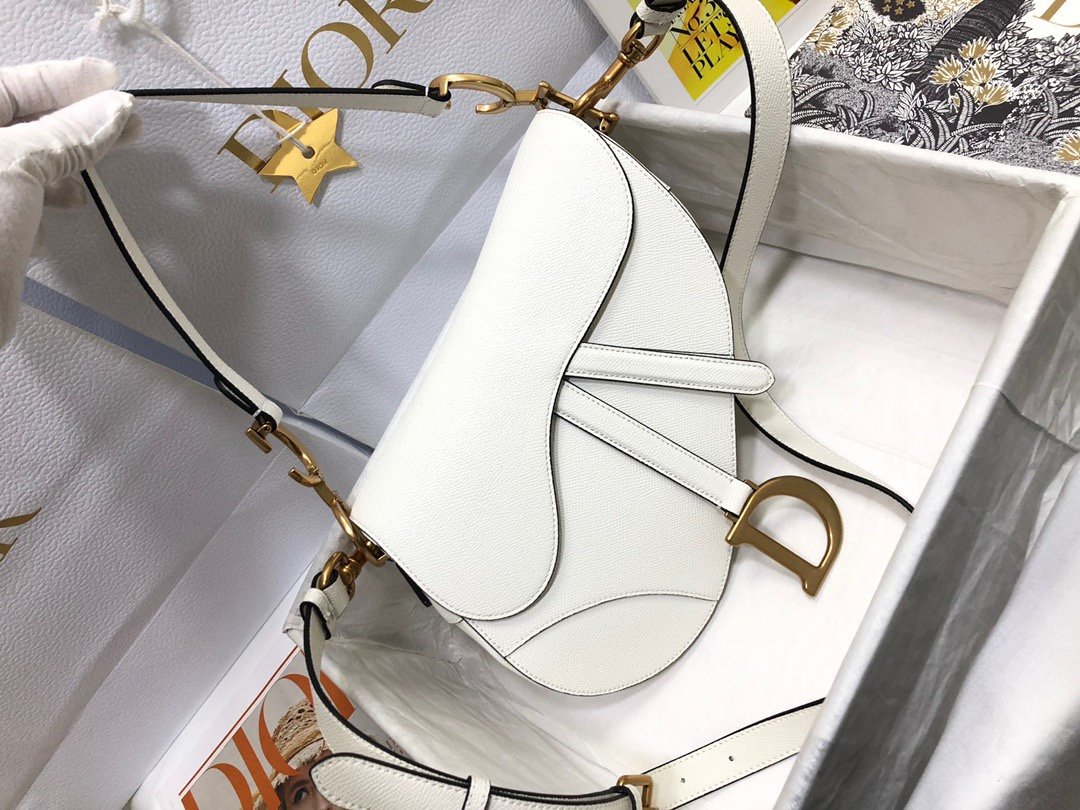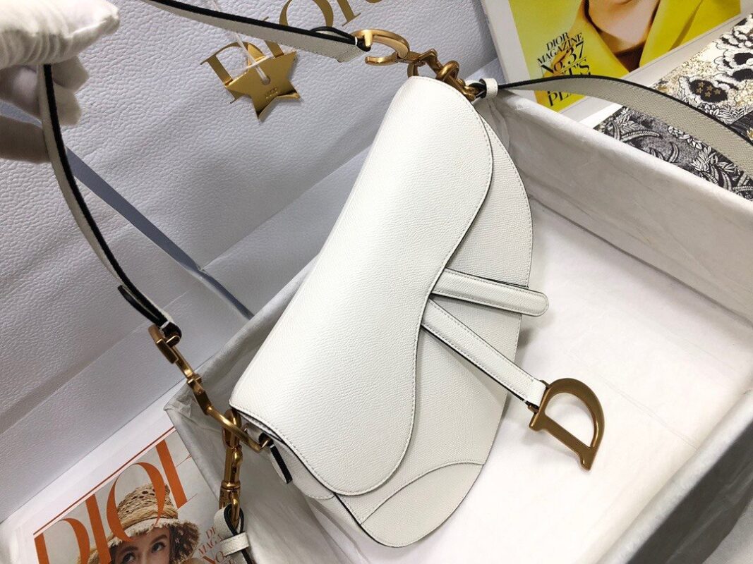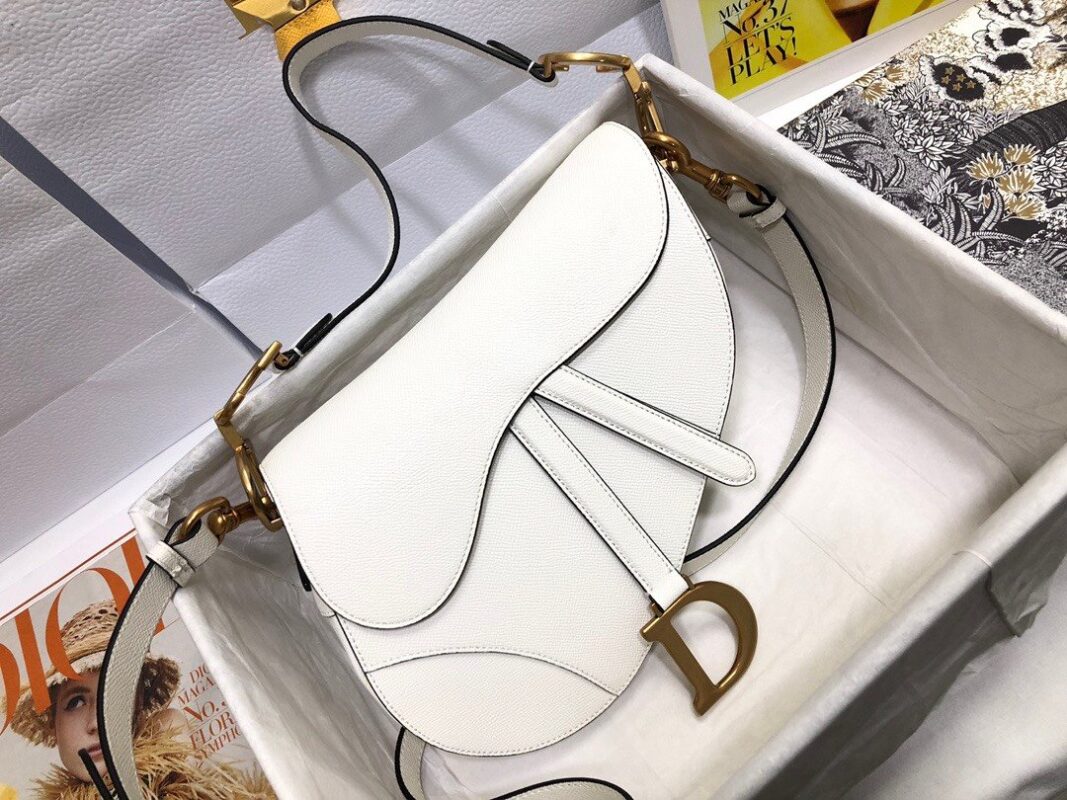 The saddle bag with large palm print and shoulder strap is a complete set, which is more fashionable and eye-catching. Following the traditional style, the stirrup “D” shaped magnetic buckle and the saddle flap reflect the brand’s classic design, and the “CD” logo on the side of the handle shows a sense of fashion. Crafted from grained calfskin, the bag is accented with antiqued gold-tone hardware and can be customized with alternate straps. “D” stirrup-shaped magnet closure, “CD” logo on the handle, back pocket, interior pocket, can be worn as a cross-body hand or on the shoulder, can be matched with other embroidered shoulder straps, dimensions: 25.5cm x 20cm x 6.5cm