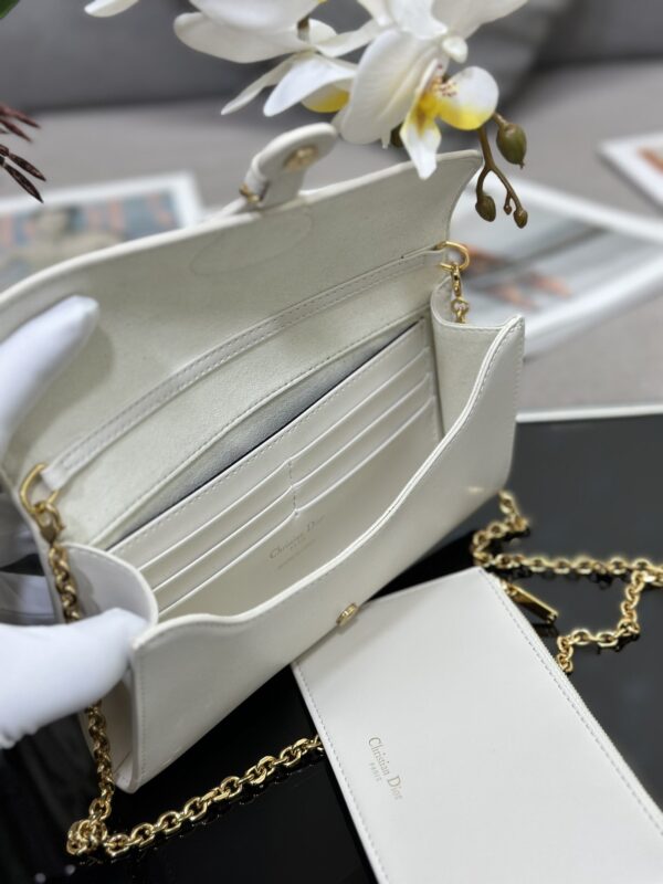 The Dior Bobby East-West chain handbag is a new summer 2023 product, crafted from smooth calfskin, stylish and elegant. A decorative CD clasp enhances the flap, and a practical compartment contains a small, detachable zip pouch. With a detachable chain, it can be carried on the shoulder, cross-body or by hand. Dimensions: 21.5 x 12 x 4 cm