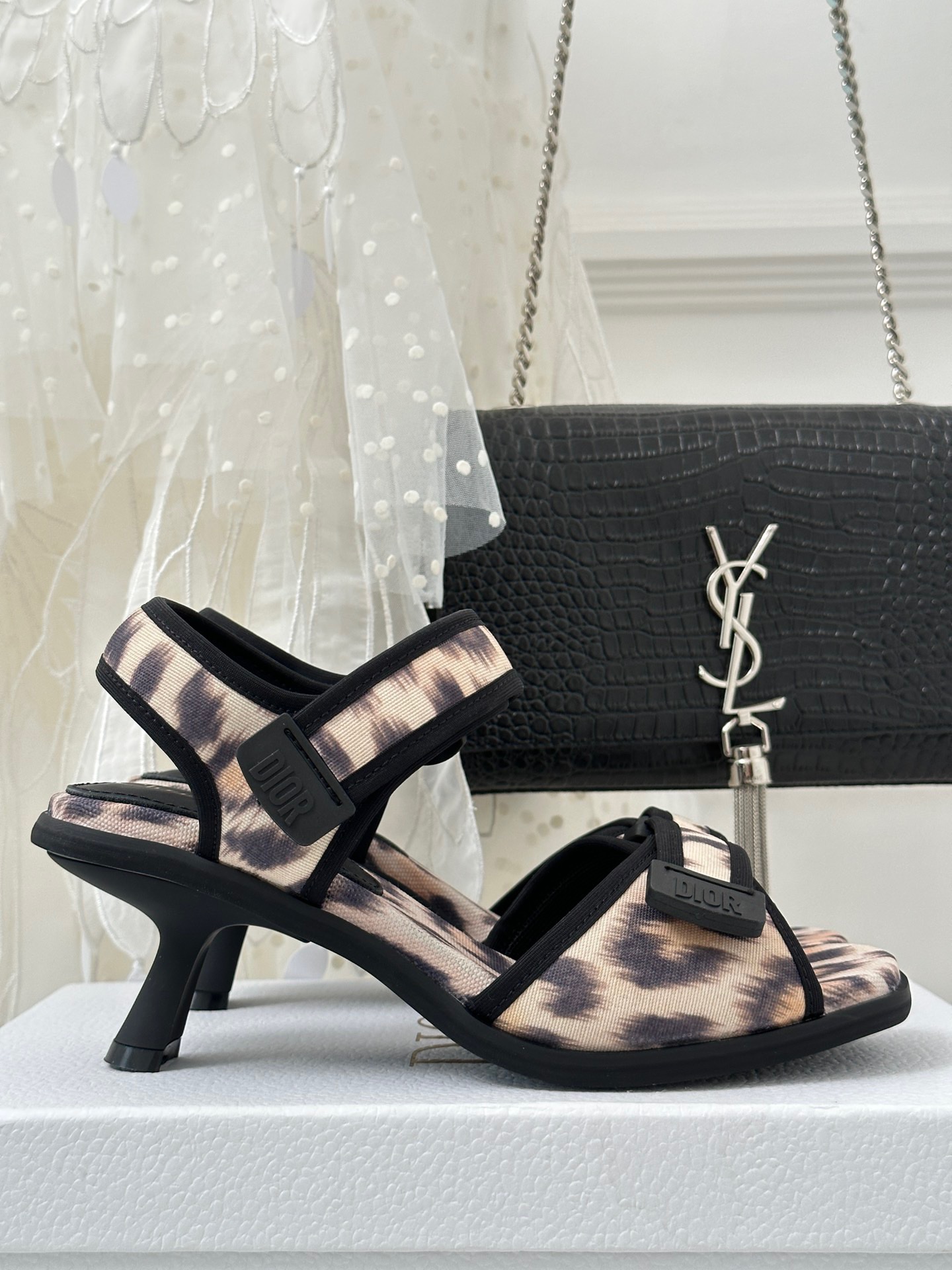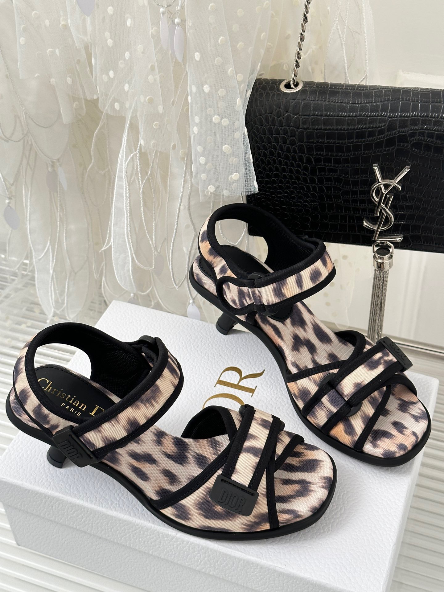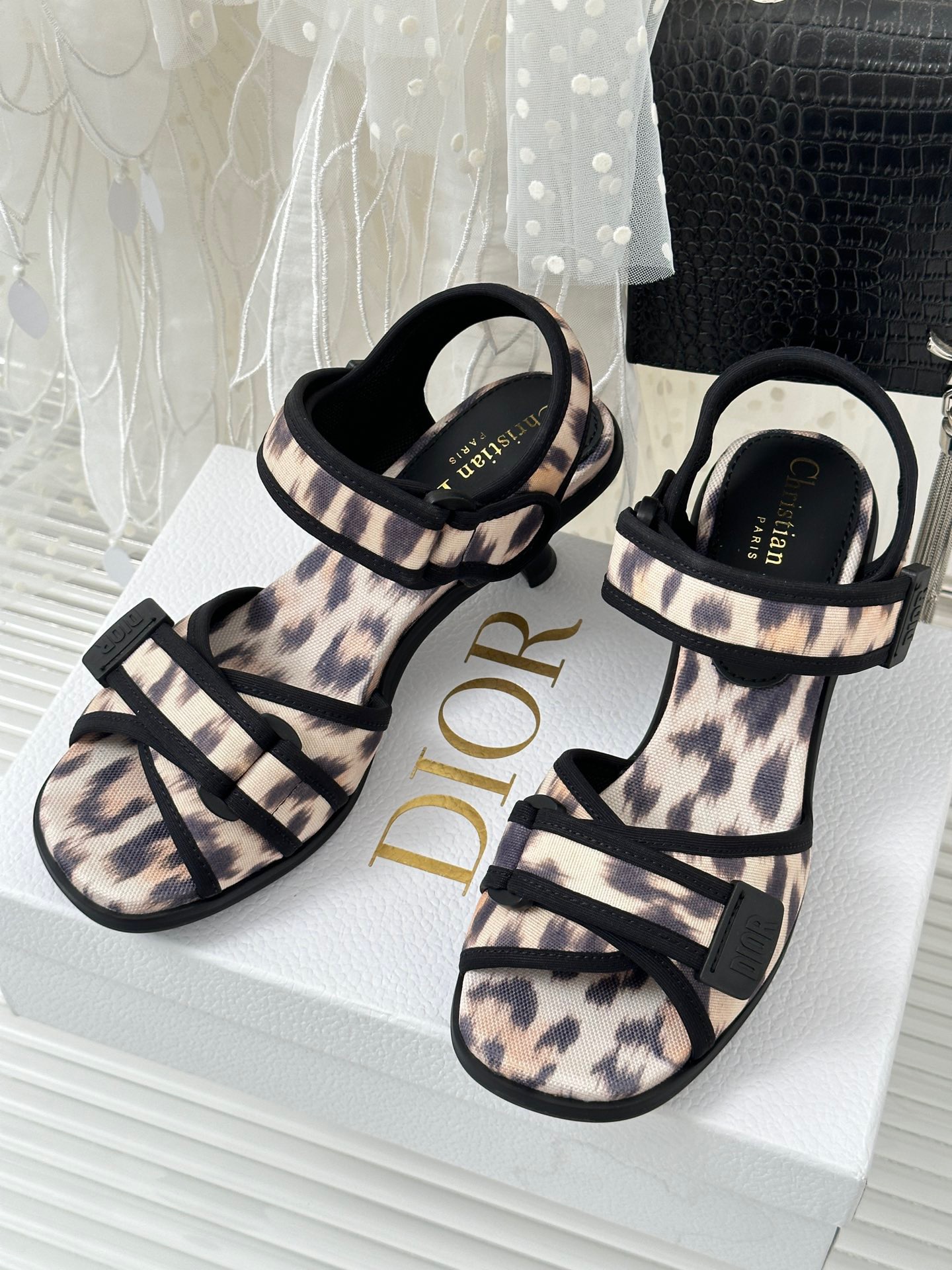 Dior 2023 New Leopard Printed Velcro Heel Sandals