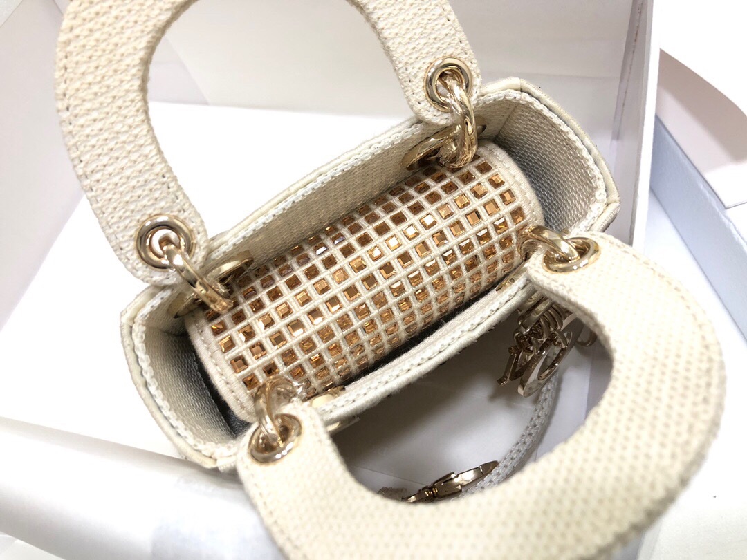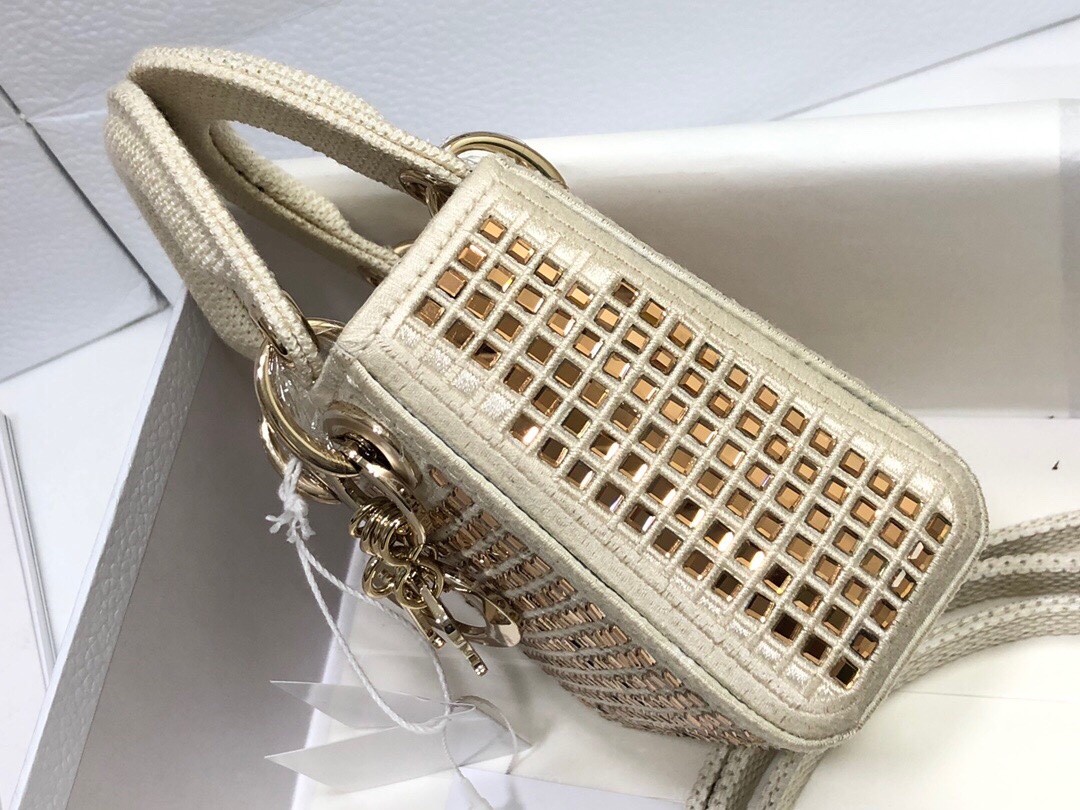 ❤️❤️Lady Dior mini super mini handmade diamonds, white gold diamond sparkling handbag embodies Dior’s deep insight into elegance and beauty. Meticulously crafted from white fabric, it’s embroidered with glass gold diamonds to create the signature sparkle pattern and enhanced with the ‘D.I.O.R.’ charm. The ultra-miniature style can accommodate various small daily necessities, with a handle and adjustable and detachable shoulder strap, which can be carried by hand, shoulder or crossbody. Dimensions: 12 x 10.2 x 5 cm, Model: S0856, 📸Exclusive physical shooting 🎬Delivery pictures Full set of original packaging White gift box 🎁 (National unified 💱60)