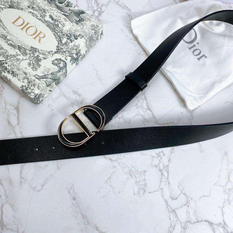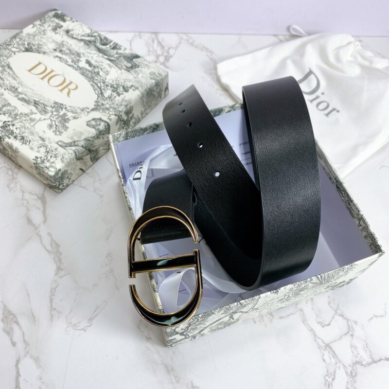 Dior 30 Montaigne Belt. Width: 40mm. Black Smooth Calf Leather. 2608008