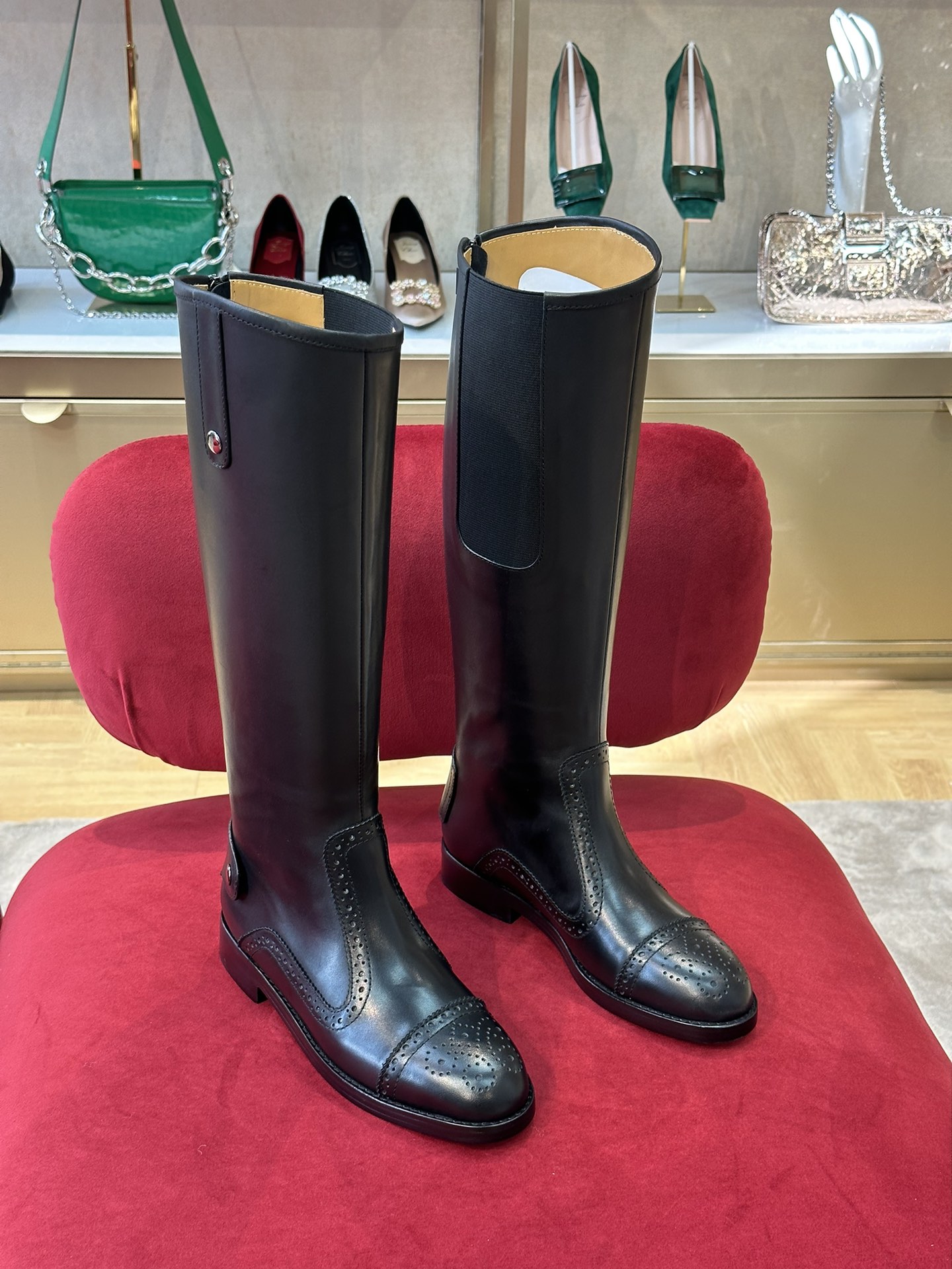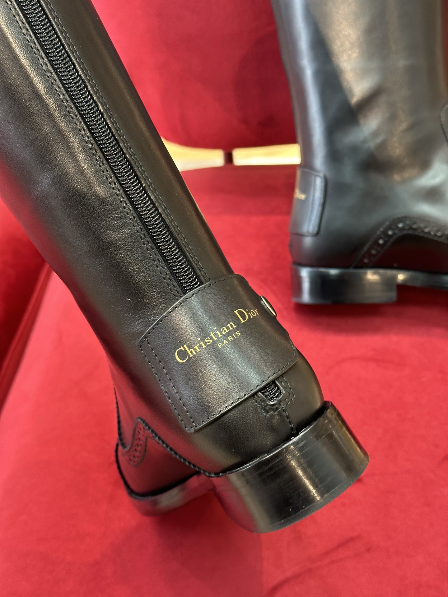dio…r ss23 new arrival~ CD House 2023 spring and summer new riding boots 🆕 The basic style of riding boots, fine-tuned some small details, overall exquisite and handsome, with a strong aura! Depict the straightforward and neat straight lines from the femininity of women! Selected imported calfskin material, water dyed cowhide inside, and imported Italian cowhide soles! Top quality 35-40