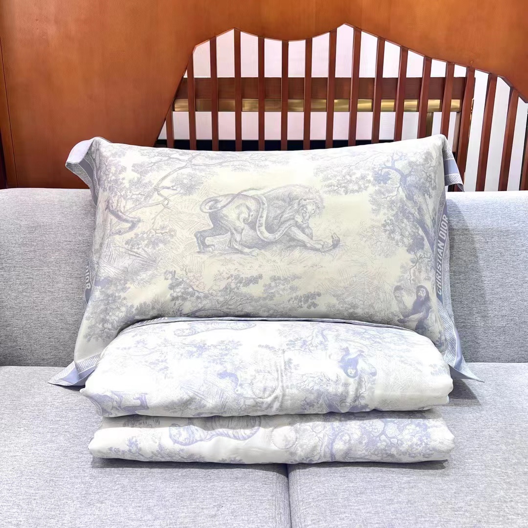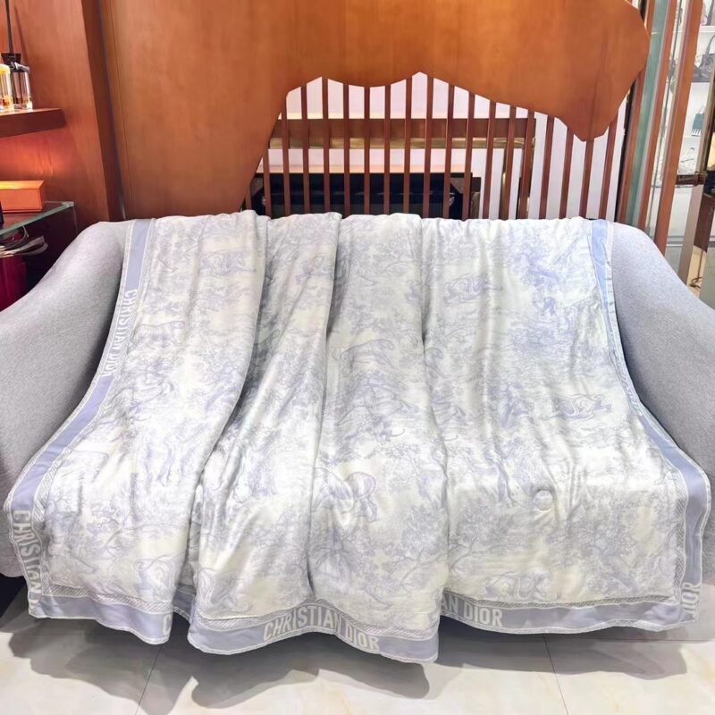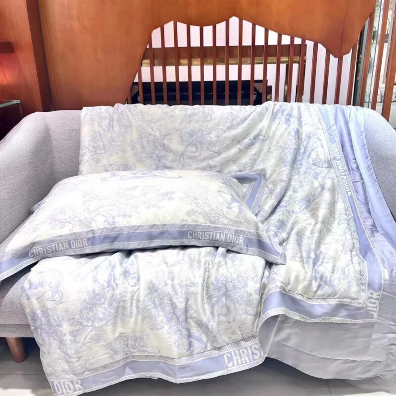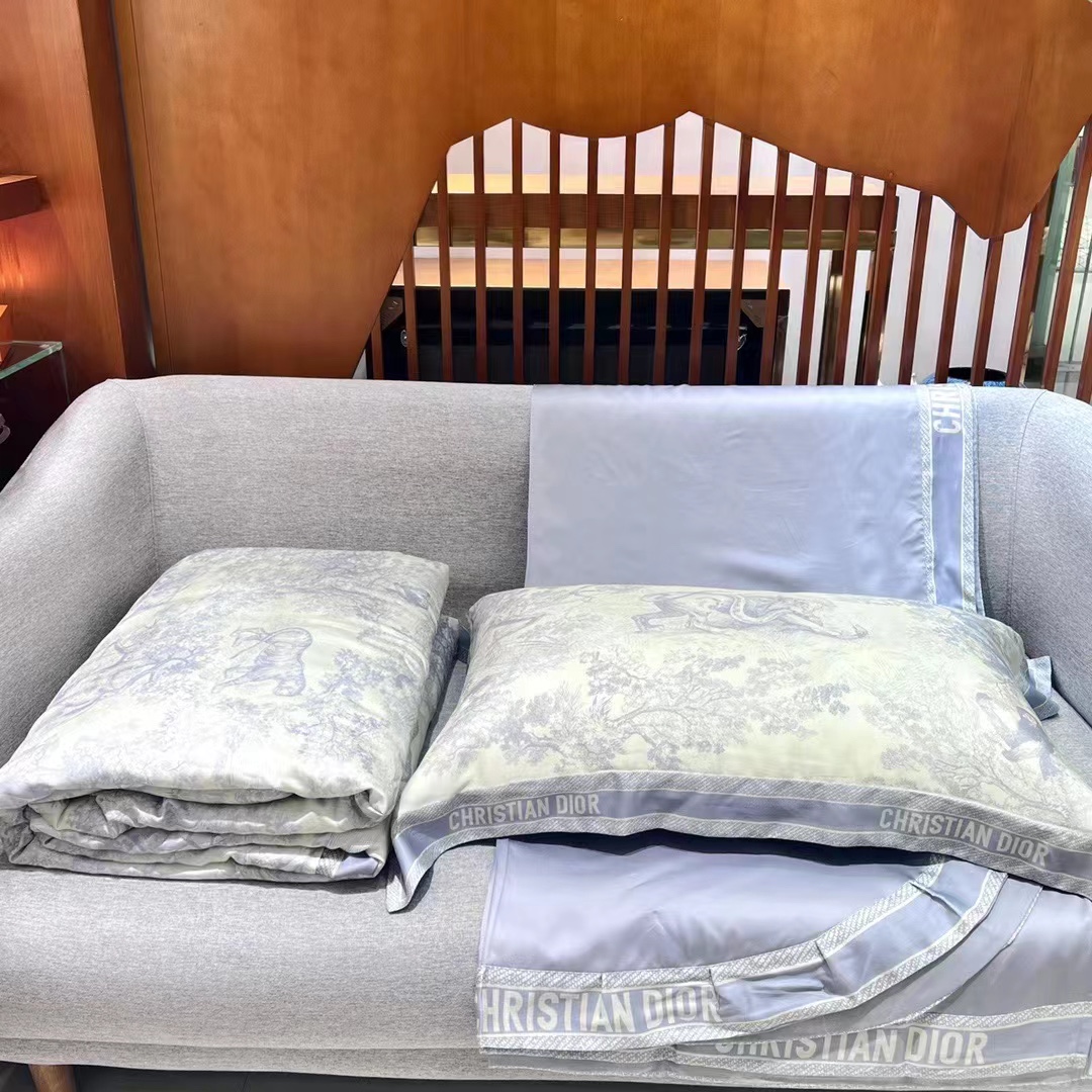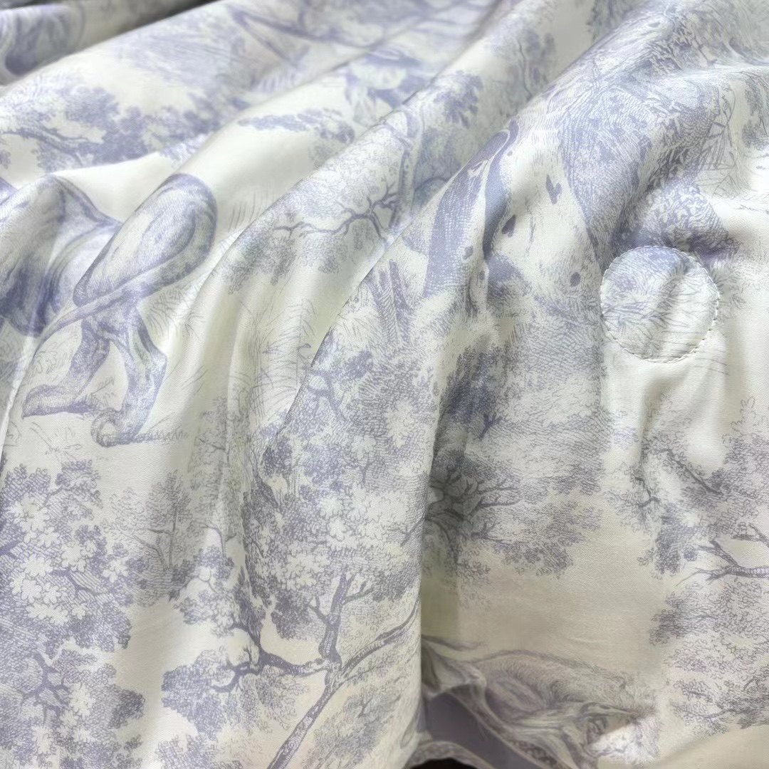 Light Gray | Dior Classic Series Lyocell Tencel Air Conditioning Quilt -Material: 100% Lyocell Tencel. Softer than silk, better moisture absorption than cotton, machine washable. -Filling: 80% feather velvet + 20% mulberry silk, the silk is long and delicate, and the touch is moist. Weight: filling 500g total weight 1800g. Craftsmanship: Italian 3D digital inkjet printing, bed sheet digital inkjet welting process. Washing: machine wash, not drying, not. exposure. Size: Large 220*240cm Standard 200*230cm Matching four-piece suit