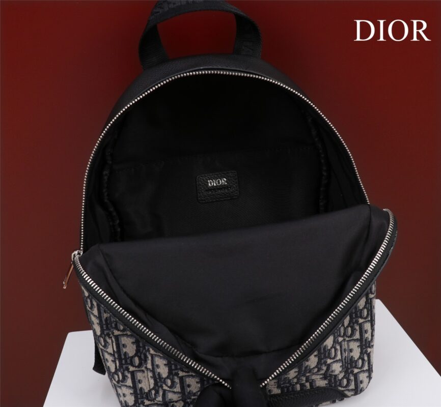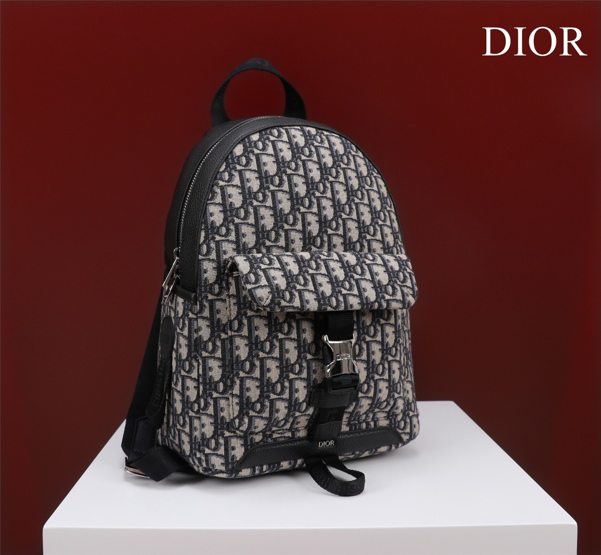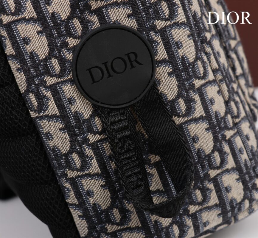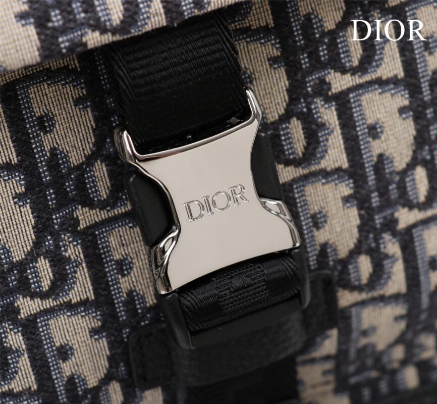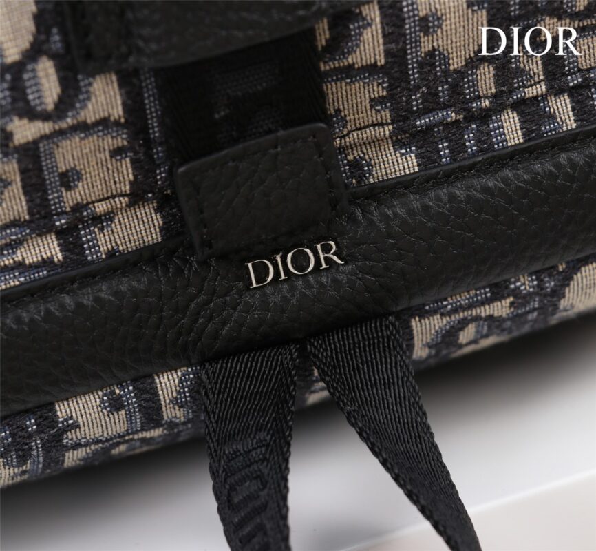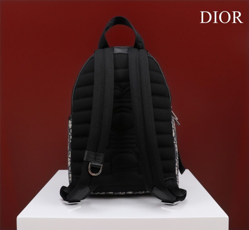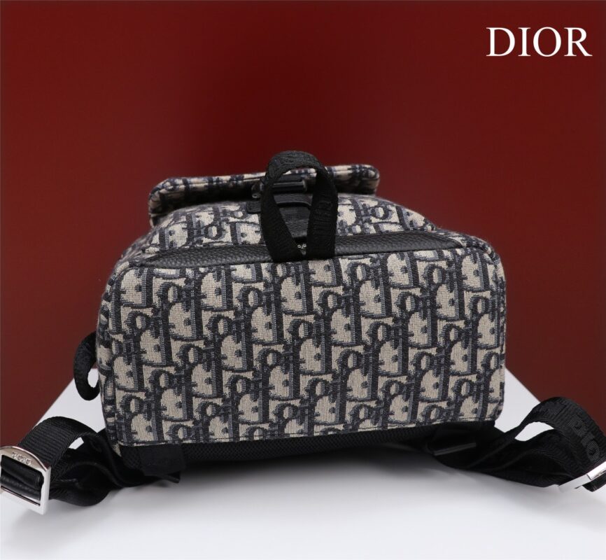 New this season, this backpack brings couture spirit to a functional piece that complements the Dior Explorer collection. Crafted in beige and black jacquard with Oblique print and black grained calfskin, it features a distinctive ‘DIOR’ leather patch on the side. The large main compartment is complemented by a padded front flap pocket with an aluminium buckle and two side pockets for a refined look. Complete with padded shoulder straps and metal loops for easy hanging of keys or a D-Touch clutch, it can be paired with a variety of casual pieces for the finishing touch. Beige and black Oblique print Metal overlay on the front Brass ‘DIOR’ logo ‘DIOR’ patch on the side ‘DIOR’ embossed logo on the interior Nylon ‘CHRISTIAN DIOR’ logo Jacquard handle Aluminum buckle Two-way zip closure Padded mesh fabric. Adjustable shoulder straps with metal loops Back reinforcement in padded mesh fabric with ‘DIOR’ logo on top ‘CHRISTIAN DIOR’ logo on top Nylon jacquard handles